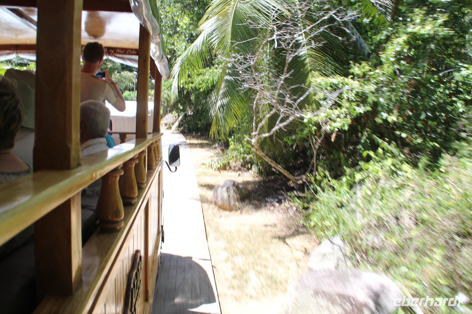 Also charterten wir eines der Hotelboote und unser schon gut bekannter Skipper brachte uns in wenigen Minuten hinüber zum Jetty La Digue. Dort liehen wir uns ein paar Fahrräder und erkundeten erst den Norden und dann den Süden der Insel.