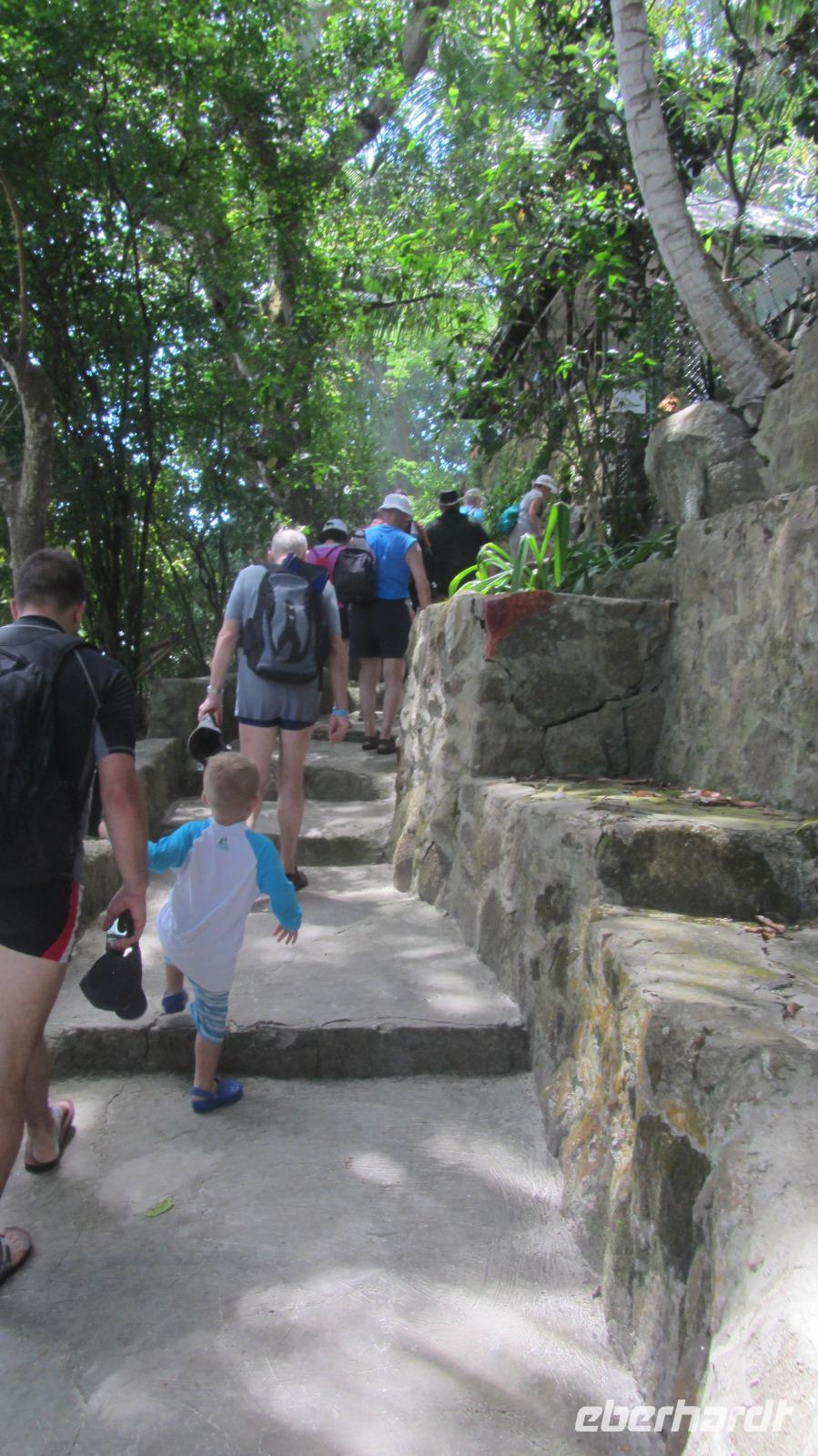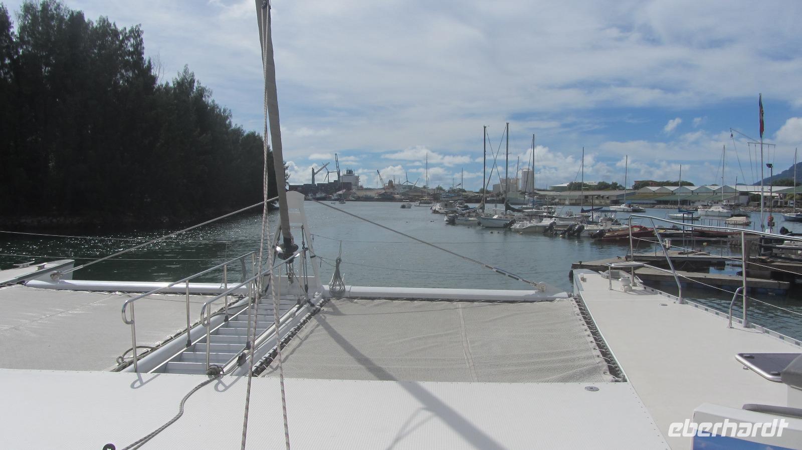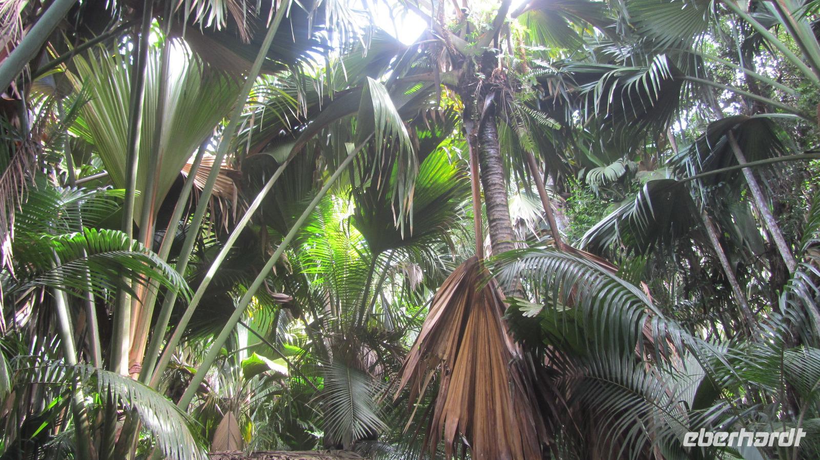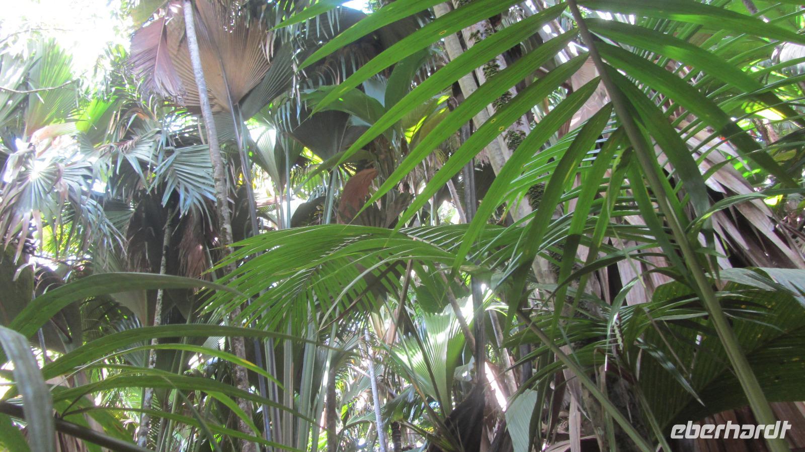 Heute wollen wir die Insel Praslin erkunden. Wir fahren gemeinsam mit unserem örtlichen Reiseleiter Cyrill zuerst in den bekannten Park Vallé de Mai. Wir unternehmen einen Rundgang und sind beeindruckt von der üppigen Vegetation. Cyrill erklärt uns alles über die berühmte Coco de Mer, die größte Kokosnuss der Welt, die wir hier mehrfach sehen. Aber auch einige Geckos und Vögel bewundern wir und genießen den Rundgang in dem satten Grün. Alles wird hier so belassen, wie es die Natur zurück lässt und so entsteht hier eine herrliche Vegetation. Nach einem ausführlichen Rundgang, der uns aufgrund der hohen Luftfeuchtigkeit mal wieder zum Schwitzen gebracht hat, aber vielen Eindrücken verlassen wir das Gelände. Anschließend fahren wir zur Fabrik der schwarzen Seychellen-Perle, wo wir erfahren, wie diese entsteht und danach auch Schmückstücke einkaufen können. Nach diesen Erkundungen haben wir uns ein reichhaltiges und schmackhaftes Mittagessen verdient. Im Hotel Britannia erwartet man uns mit einem schmackhaften Buffet mit creolischen Spezialitäten - extra nur für uns. Nun haben wir schon viel von der Insel gesehen und wollen endlich den berühmten und einen der schönsten Strände bewundern. Wir fahren ganz in den Norden der Insel zum Anse Lazio. Der Strand ist breit und von Felsen umrahmt. Wir stürzen uns in die Fluten - eine richtige Erfrischung ist das nicht, da das Wasser sehr warm ist, aber es ist faszinierend. Wir verweilen sehr lange hier im glasklaren Meer. Es ist wirklich ein schöner Strand und wir genießen den schönen Nachmittag. Danach halten wir noch im Supermarkt, um uns für die nächsten Tage mit Wasser und natürlich auch etwas einheimischen Rum namens Takamaka zu versorgen. Cyrill verabschieden wir an der Fähre, da er zurück nach Mahé fährt und wir entspannen im Hotel und genießen das schmackhafte Buffet.