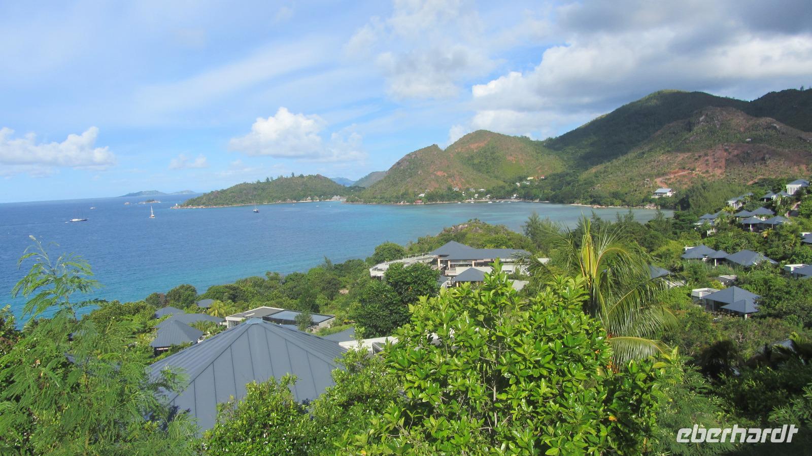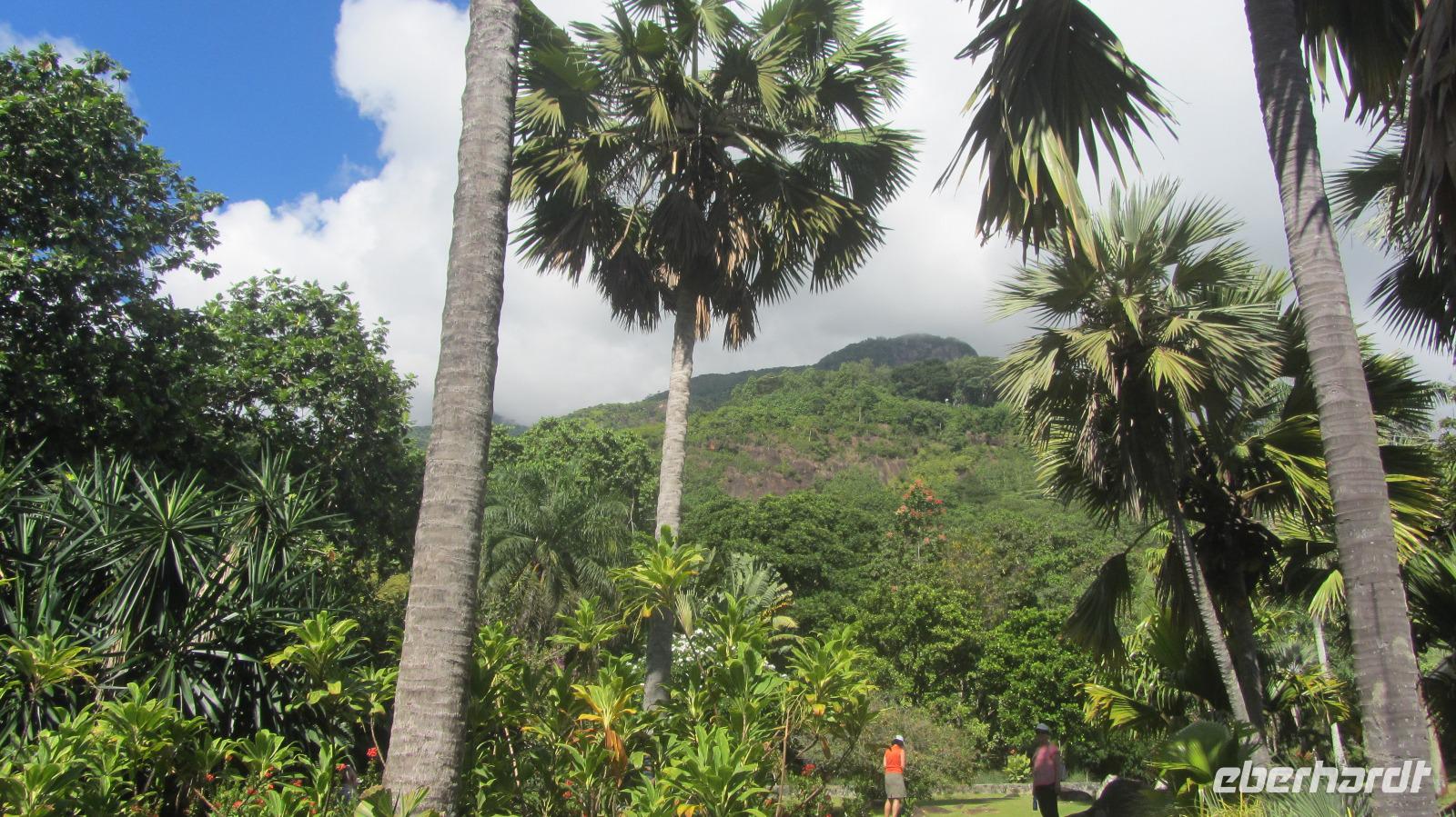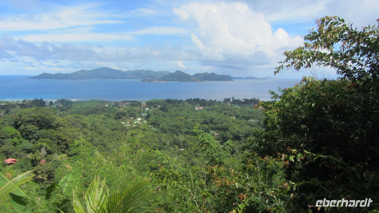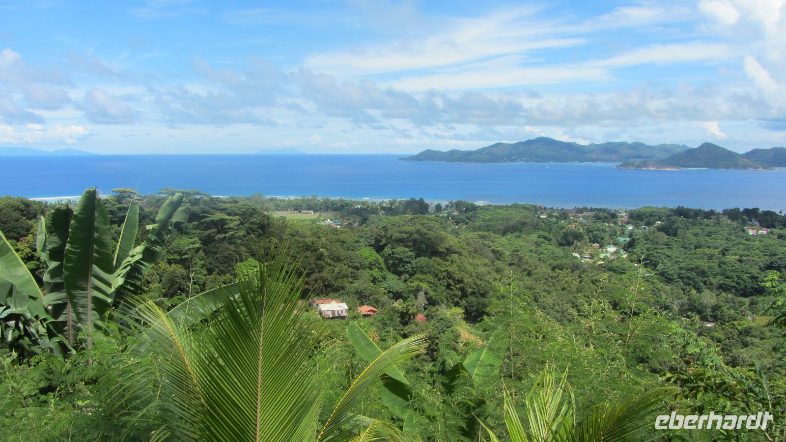 Heute verlassen wir unsere Unterkunft und schauen uns die belebteste Insel der Seychellen noch einmal genauer an. Wir besuchen den botanischen Garten, wo uns Cyrill viel über die Pflanzenwelt der Seychellen erklärt. Es ist sehr interessant, die bunte und üppige Vegetation zu bestaunen. Nach einem ausführlichen Rundgang fahren wir zu einem Aussichtspunkt, wo wir einen guten Überblick über einen Teil von Mahé und auch weitere Inseln erhalten. Unser Mittagessen lassen wir uns in einem typischen creolischen Restaurant Marie Antonette schmecken. Die einheimische Küche schmeckt uns sehr gut. Es gibt Oktopus-Curry, Jack-Fisch und viele andere Köstlichkeiten. Gestärkt fahren wir noch zu einem weiteren Aussichtspunkt bevor wir die Fähre erreichen. Heute geht es nämlich auf die zweitgrößte Insel der Seychellen und unser Domizil für die nächsten Tage, nach Praslin. Circa 1 Stunde dauert die Fahrt mit der Schnell-Fähre, unser Transfer bringt uns zum Hotel. Wir sind erstaunt wie bergig die Insel doch ist, aber das ist nicht in allen Teilen so. Im Hotel erwartet man uns mit einem Begrüßungsgetränk und einem Erfrischungstuch und wir beziehen unsere beeindruckenden Zimmer. Das Abendessen vom Buffet ist sehr schmackhaft und so lassen wir unseren ersten Abend im Paradies ausklingen.