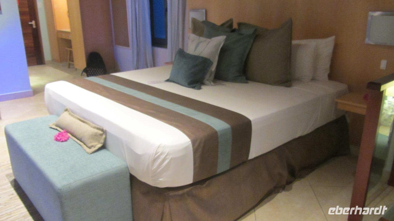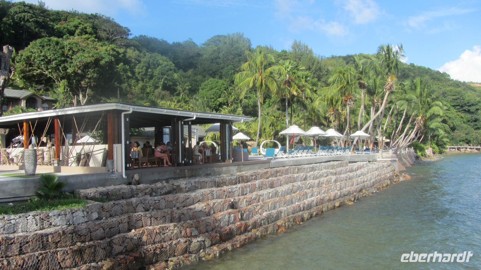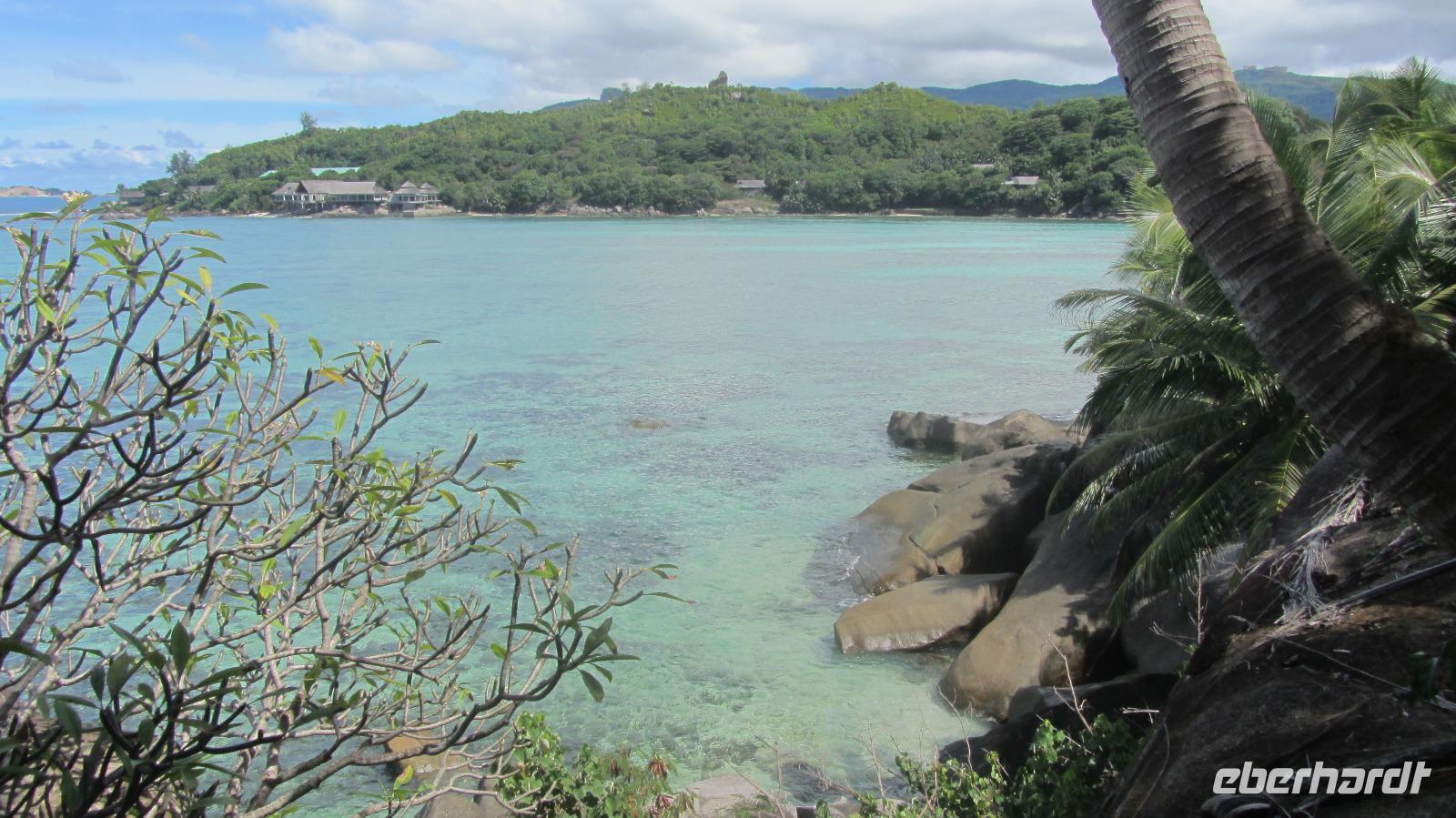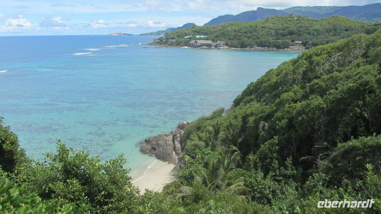 Heute verlassen wir unsere Unterkunft und schauen uns die belebteste Insel der Seychellen noch einmal genauer an. Wir besuchen den botanischen Garten, wo uns Cyrill viel über die Pflanzenwelt der Seychellen erklärt. Es ist sehr interessant, die bunte und üppige Vegetation zu bestaunen. Nach einem ausführlichen Rundgang fahren wir zu einem Aussichtspunkt, wo wir einen guten Überblick über einen Teil von Mahé und auch weitere Inseln erhalten. Unser Mittagessen lassen wir uns in einem typischen creolischen Restaurant Marie Antonette schmecken. Die einheimische Küche schmeckt uns sehr gut. Es gibt Oktopus-Curry, Jack-Fisch und viele andere Köstlichkeiten. Gestärkt fahren wir noch zu einem weiteren Aussichtspunkt bevor wir die Fähre erreichen. Heute geht es nämlich auf die zweitgrößte Insel der Seychellen und unser Domizil für die nächsten Tage, nach Praslin. Circa 1 Stunde dauert die Fahrt mit der Schnell-Fähre, unser Transfer bringt uns zum Hotel. Wir sind erstaunt wie bergig die Insel doch ist, aber das ist nicht in allen Teilen so. Im Hotel erwartet man uns mit einem Begrüßungsgetränk und einem Erfrischungstuch und wir beziehen unsere beeindruckenden Zimmer. Das Abendessen vom Buffet ist sehr schmackhaft und so lassen wir unseren ersten Abend im Paradies ausklingen.