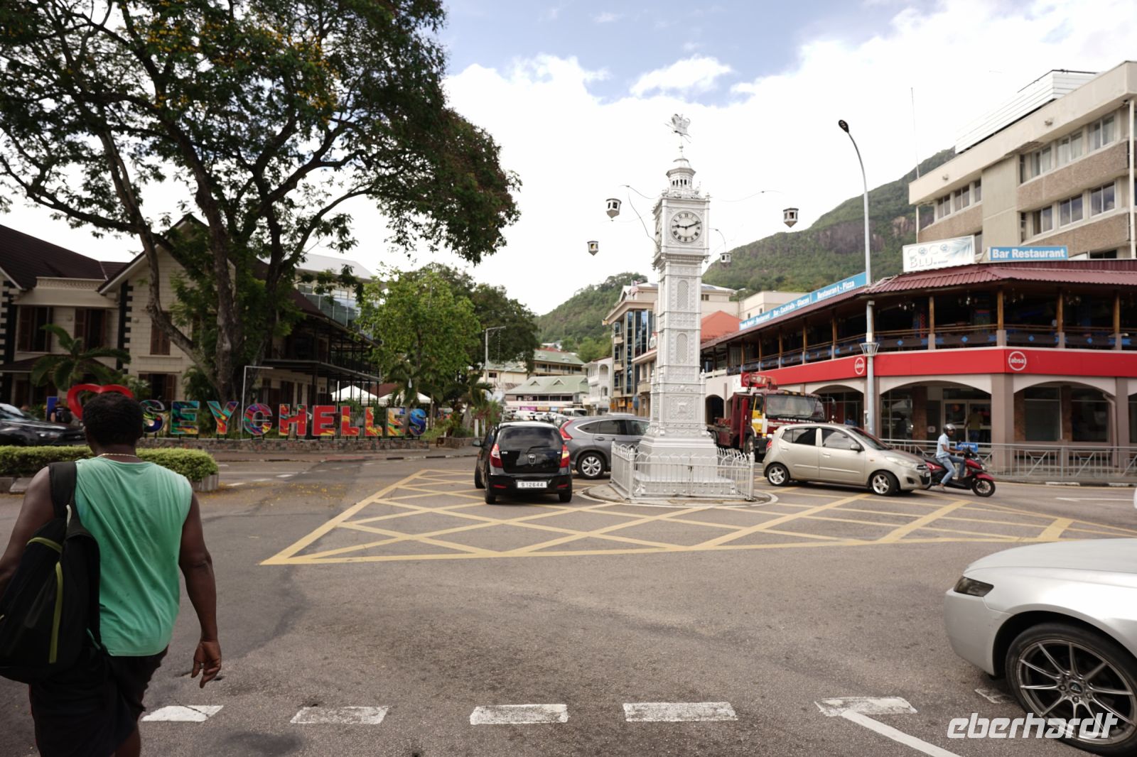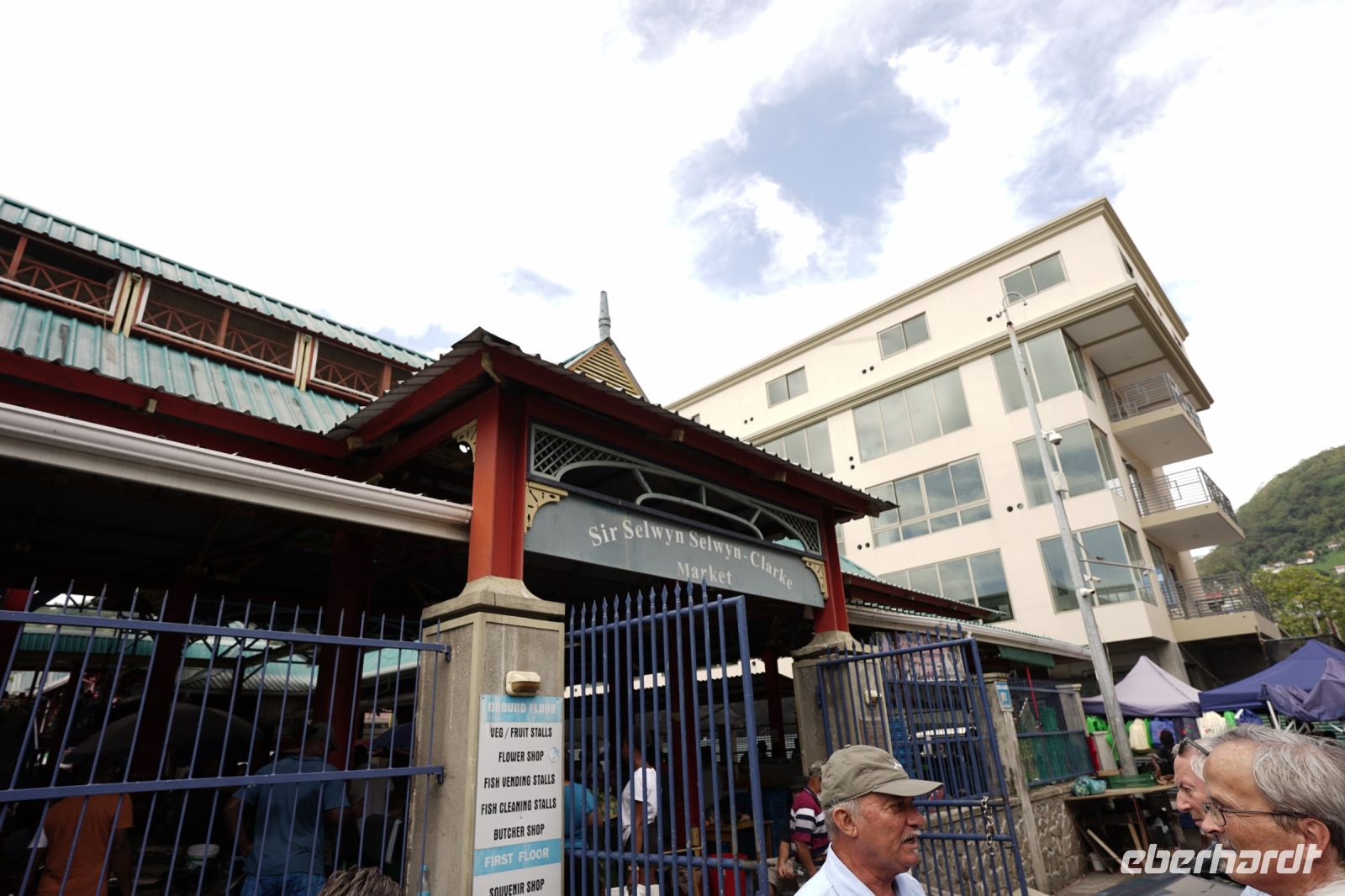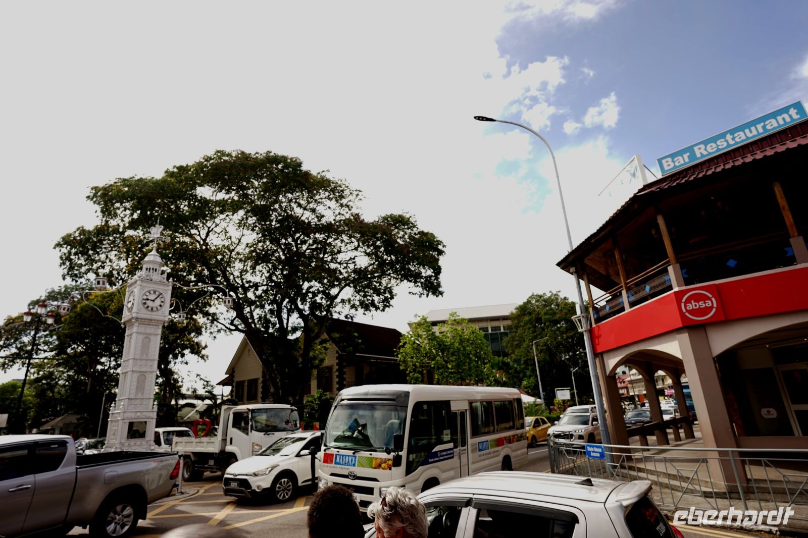 Deshalb hatten wir auch an diesem Tag sehr viel Zeit. So begrüßte uns unser örtlicher Guide Cyril in landestypischer Art. Zuerst die Koffer zum Bus und dann konnte jeder der wollte noch im Flughafen Geld tauschen. Danach fuhren wir in aller Ruhe in die Hauptstadt Victoria. Zuerst gab es in einem Lokal erstmal Kaffee oder ein kleines Frühstück. Gestärkt ging es dann auf die kleine Hauptstadt zu erkunden. Vorbei am Bekannten Uhrenturm, welcher den einem oder anderen der schon mal London besuchte, merkwürdig bekannt vorkam, ging es zur St. Pauls Kathedrale. Weiter vorbei am Postbüro und Museum zum Markt. Hier ging es durch das bunte Treiben am Einkaufs-stärksten Tag der Woche. Wir sahen frischen Fisch und regionales Obst. Natürlich auch die Gewürze, für welche die Insel bekannt ist.