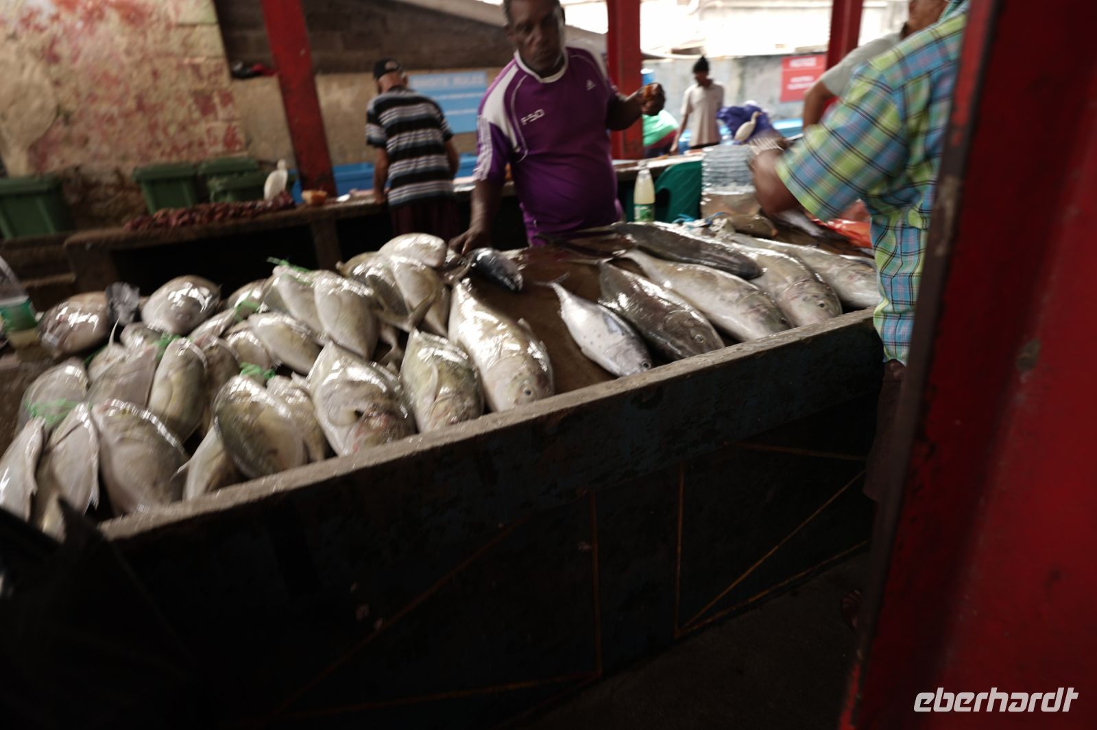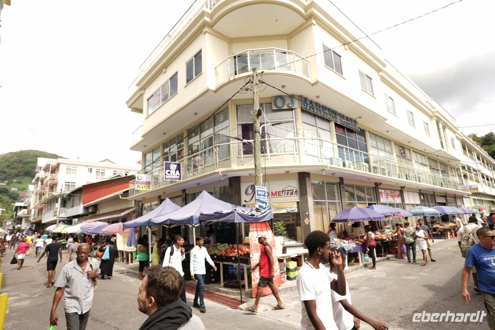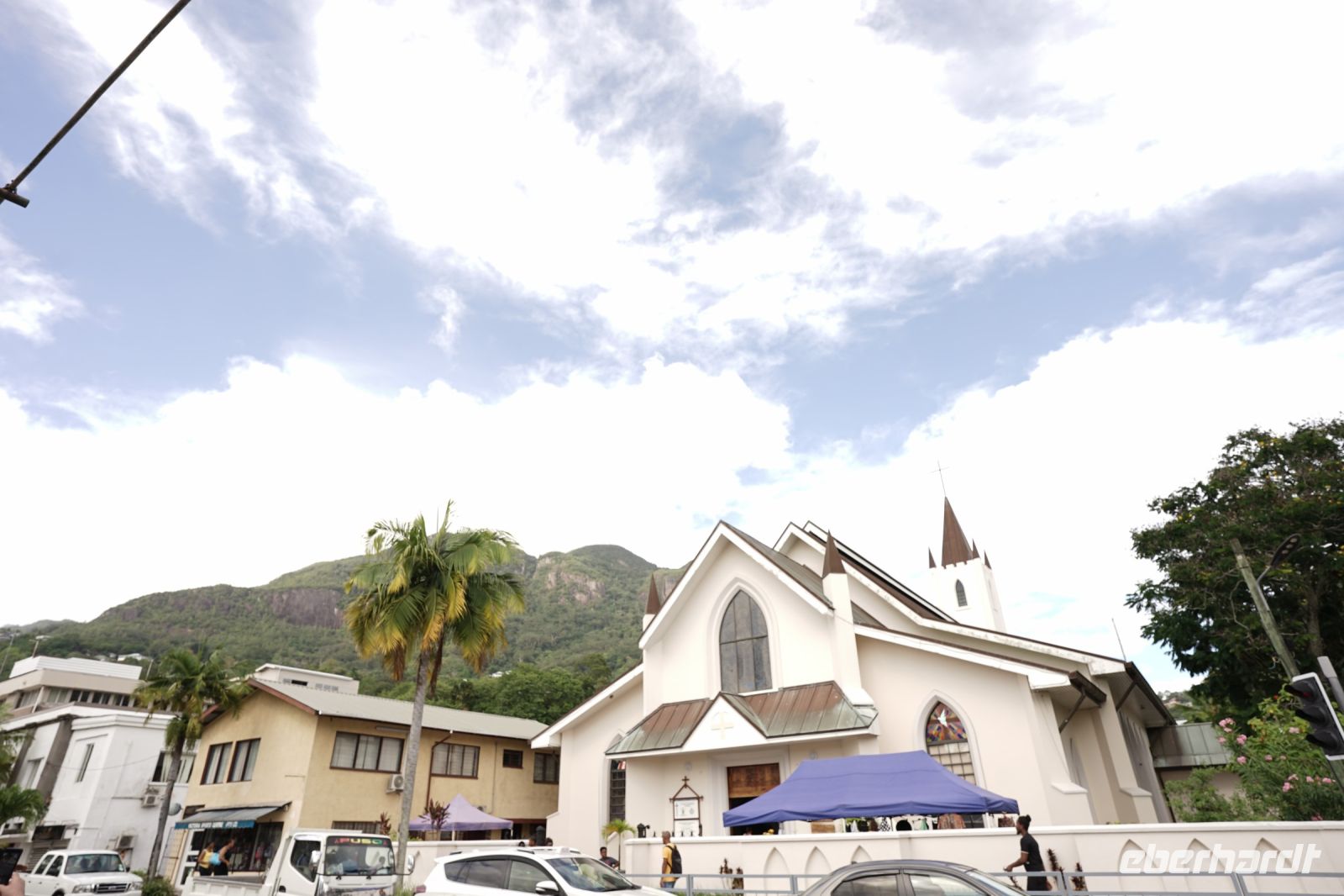 Deshalb hatten wir auch an diesem Tag sehr viel Zeit. So begrüßte uns unser örtlicher Guide Cyril in landestypischer Art. Zuerst die Koffer zum Bus und dann konnte jeder der wollte noch im Flughafen Geld tauschen. Danach fuhren wir in aller Ruhe in die Hauptstadt Victoria. Zuerst gab es in einem Lokal erstmal Kaffee oder ein kleines Frühstück. Gestärkt ging es dann auf die kleine Hauptstadt zu erkunden. Vorbei am Bekannten Uhrenturm, welcher den einem oder anderen der schon mal London besuchte, merkwürdig bekannt vorkam, ging es zur St. Pauls Kathedrale. Weiter vorbei am Postbüro und Museum zum Markt. Hier ging es durch das bunte Treiben am Einkaufs-stärksten Tag der Woche. Wir sahen frischen Fisch und regionales Obst. Natürlich auch die Gewürze, für welche die Insel bekannt ist.