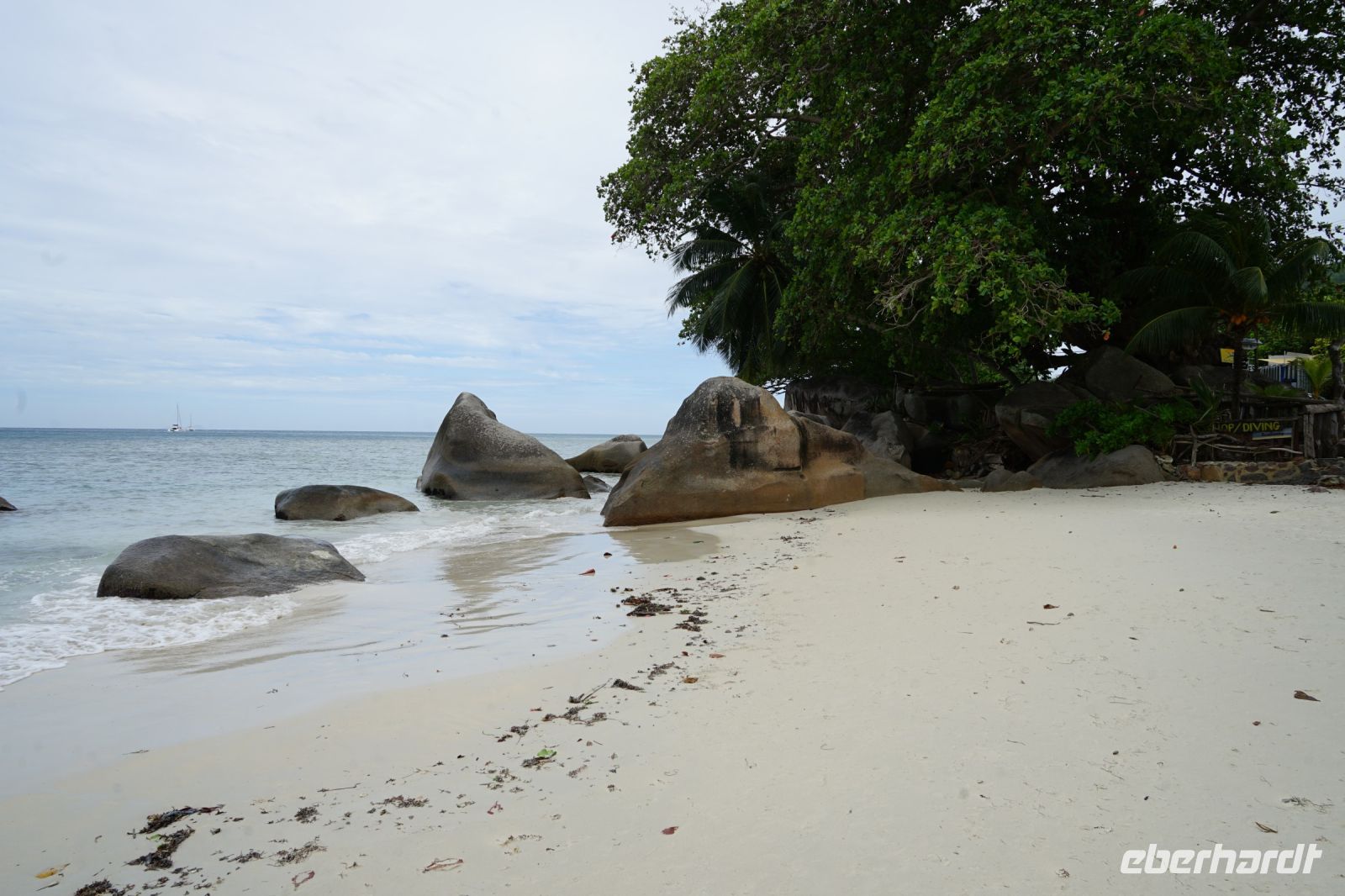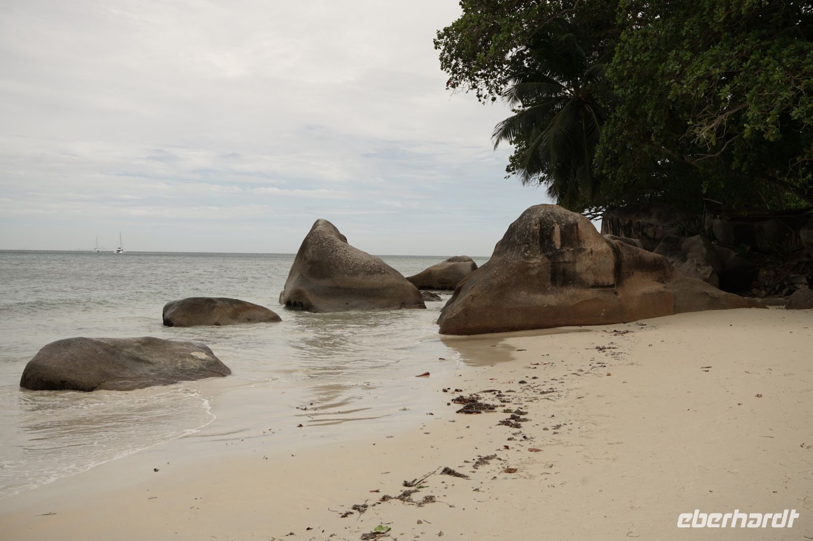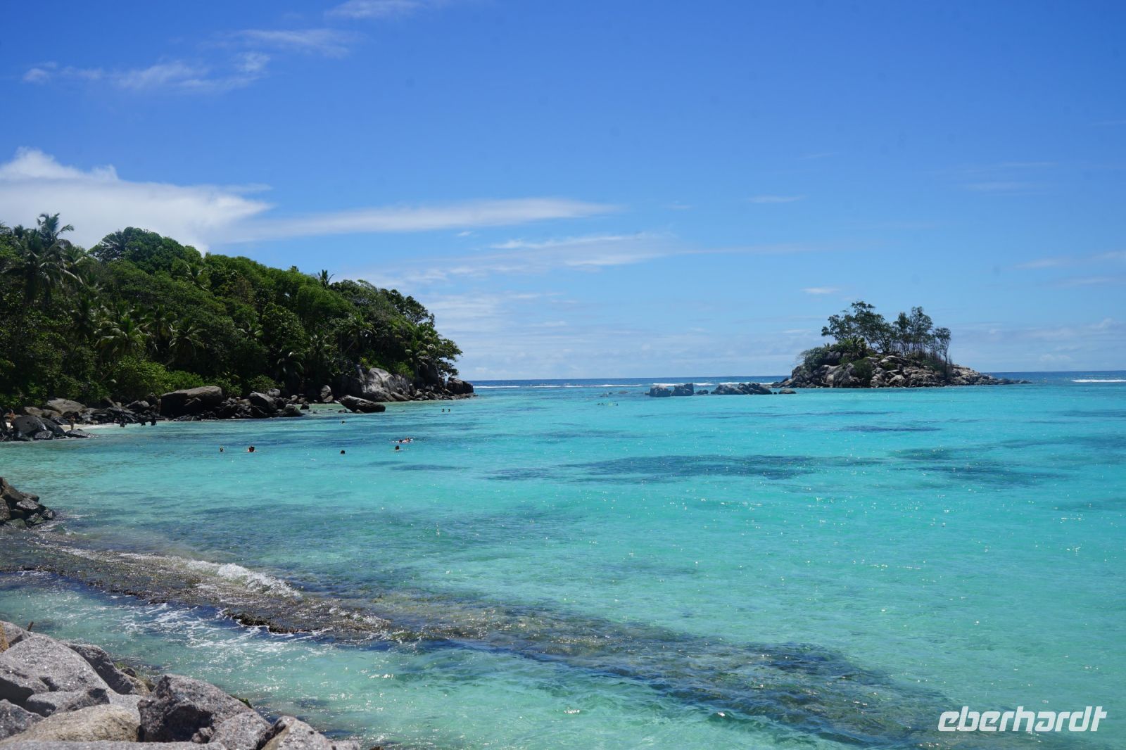 Der letzte Ausflug unserer gemeinsamen Reise auf die Seychellen sollte nochmal ein Highlight werden. Am Morgen holte uns direkt am Hotel der Katamaran ab. Da dieser nicht bis zum Strand fahren konnte, hieß es wieder Tendern mit dem Schlauchboot. Auch dieses Mal war wieder ein kleines Abenteuer.