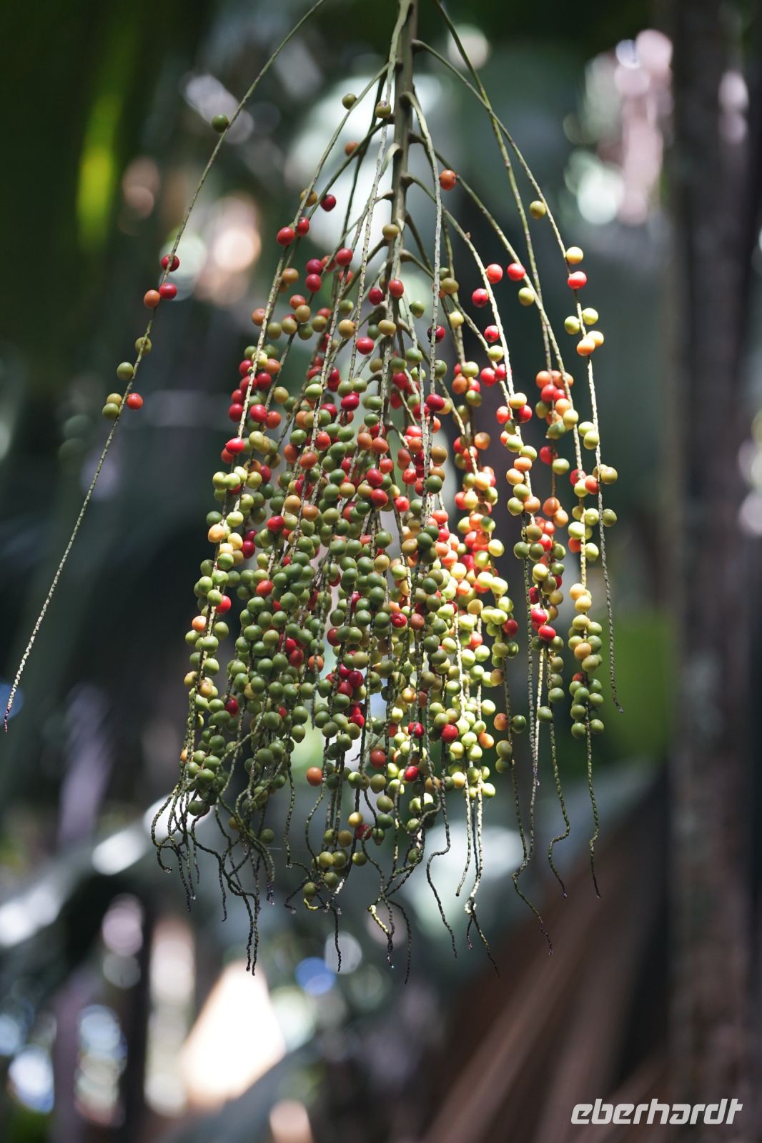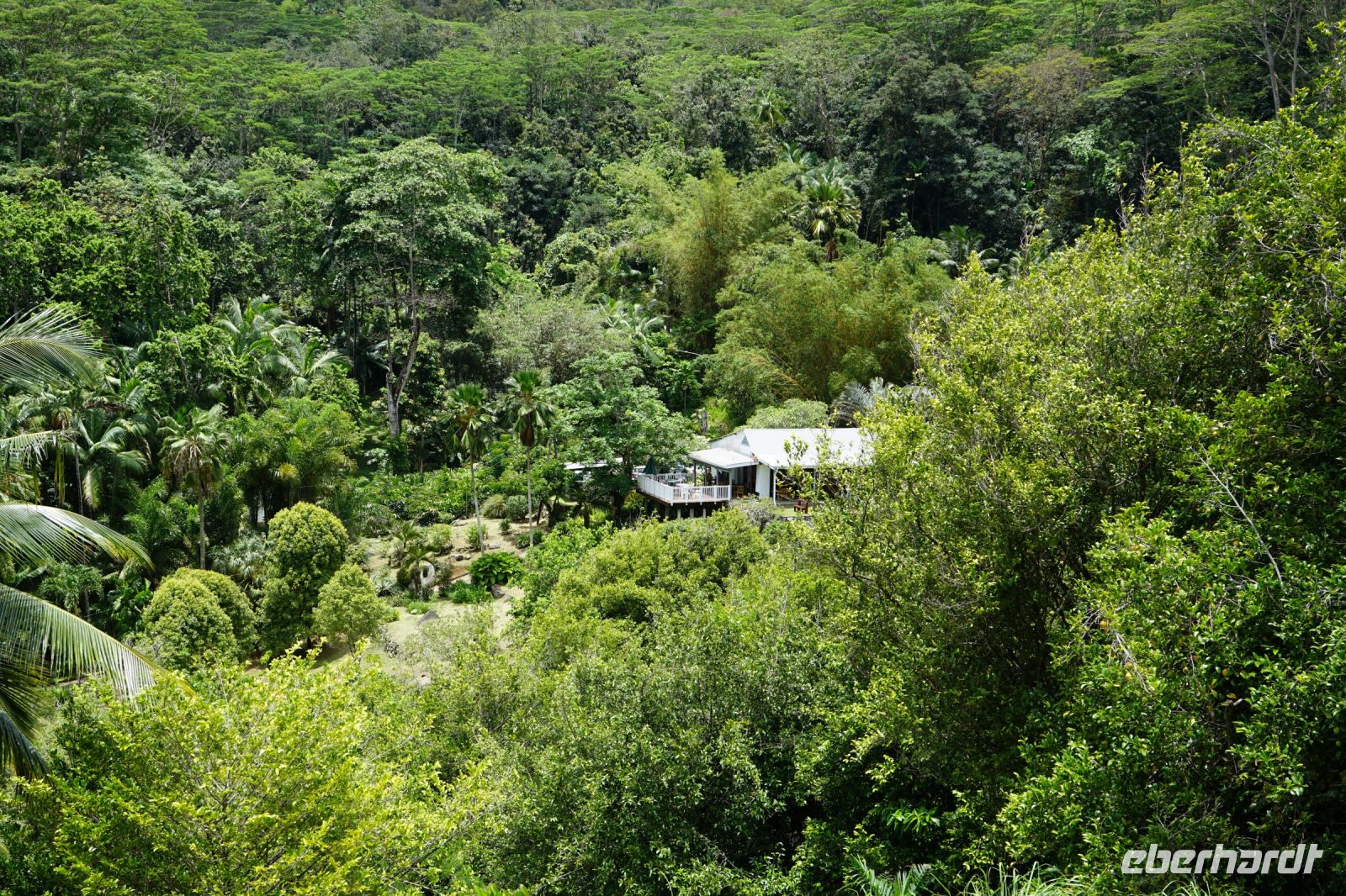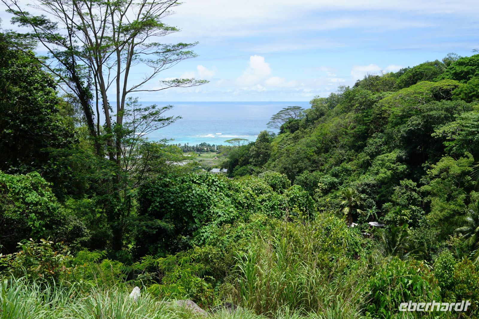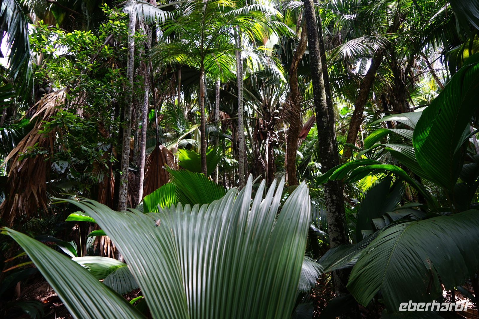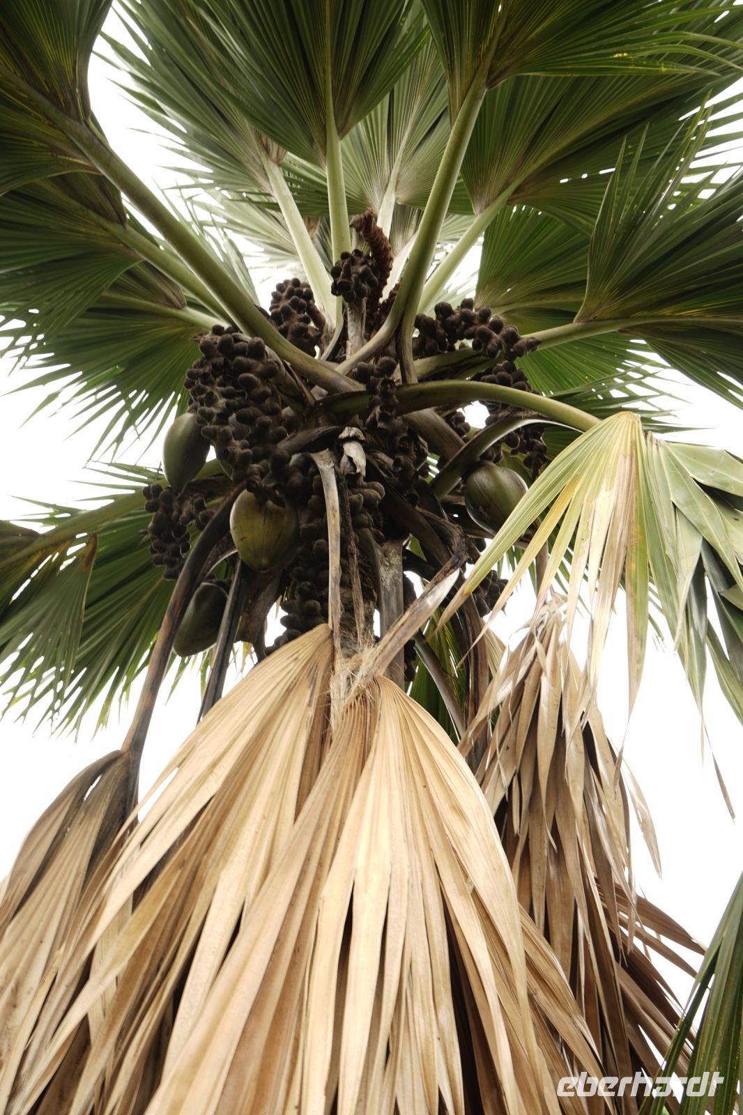 Gut gestärkt vom Frühstück, machten wir uns heute auf, die Insel Praslin besser kennenzulernen. Zunächst fuhren wir ins Zentrum der Insel. Hier ist das weltbekannte Vallee de Mai, welches zum UNESCO Weltnaturerbe gehört. Hier ist nicht nur die markante Coco de Mer endemisch, sondern auch viele weitere Palmenarten, sowie einige Tierarten wie der Schwarze Papagei. Cyril führte uns auf einer kleinen Wanderung durch den Wald und erklärte uns alles zu den Pflanzen und Tieren. Besonders der Unterschied zwischen männlicher und weiblicher Pflanze wurde anschaulich verdeutlicht.