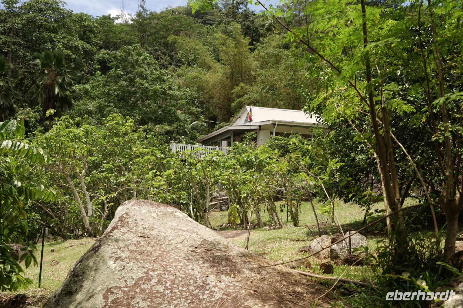 Heute hieß es das erste Mal Koffer packen. Nach dem Frühstück hieß es auf Wiedersehen zu unserem schönen Fishermans Cove Hotel. Doch bevor es nach Praslin ging, wollten wir noch einen Abstecher zu einem Gewürzgarten der Insel unternehmen. Vorbei an Victoria und wunderschönen Sandstränden fuhren wir wieder eine schmale Bergstraße hinauf. Die Auffahrt sollte belohnt werden. Denn der Garten ist wunderschön zwischen den Berghängen angelegt, mit einem traumhaften Blick auf den Indischen Ozean. Unser Cyril führte uns in aller Ruhe durch die Anlage und erklärte uns sämtliche Obstbäume, Gemüse- und Heilpflanzen mit deren Verwendung. Durch den Spaziergang kam nun langsam der Hunger auf. Dadurch freuten wir uns schon auf das Mittag im Restaurant des Gartens. Das Buffet mit seinen zahlreichen kreolischen Gerichten schmeckte allen vorzüglich. Am Rande wurde die Küche des Restaurants schon mehrfach als eine der besten der Insel ausgezeichnet. Gut gestärkt machten wir uns wieder auf den Weg Richtung Victoria. Da wir noch etwas Zeit hatten, bis zur Fährüberfahrt, statteten wir der Takamaka Fabrik einen Besuch ab. Fast alle entschieden sich, eine kleine Verkostung mitzumachen. Es wurden sechs unterschiedliche Rum-Sorten (Takamaka) gereicht. Als finaler Liebling blieb am Ende der Dark Rum. Im Anschluss ging es zum Hafen von Victoria. Die Koffer waren schnell aufgegeben und das Boarding sollte auch nicht lange auf sich warten lassen. Auf ging es nach Praslin. Die Überfahrt dauerte etwas über eine Stunde und war verhältnismäßig ruhig. In Praslin nahmen wir dann unsere Koffer entgegen und wurden von zwei Fahrern zum Hotel gefahren. Schnell eingecheckt und frisch gemacht, dann ging es schon zum Abendessen. Auch hier war das Essen wieder vorzüglich und landestypisch.