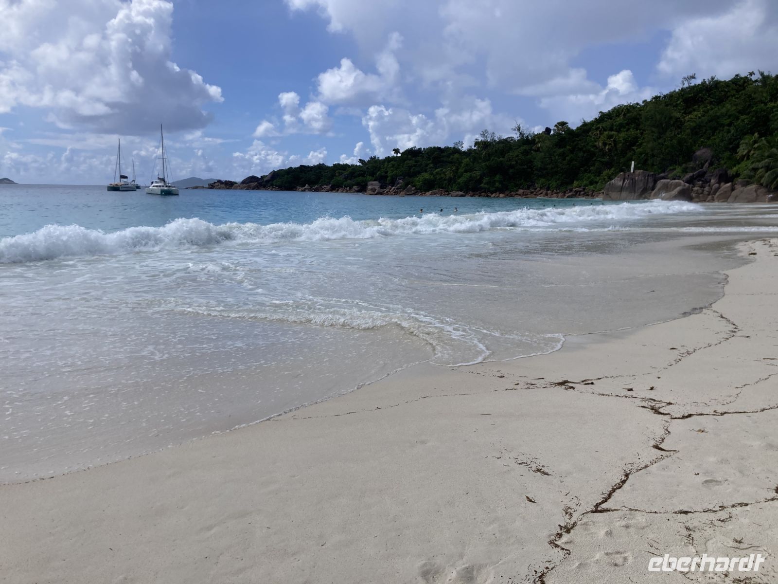 Beim Abendessen treffen wir uns dann alle wieder und planen schon den nächsten Tag, der uns auf eine andere Insel führen wird. Es ist unsere erste Abreise und der Abschied vom Strand von Mahé.