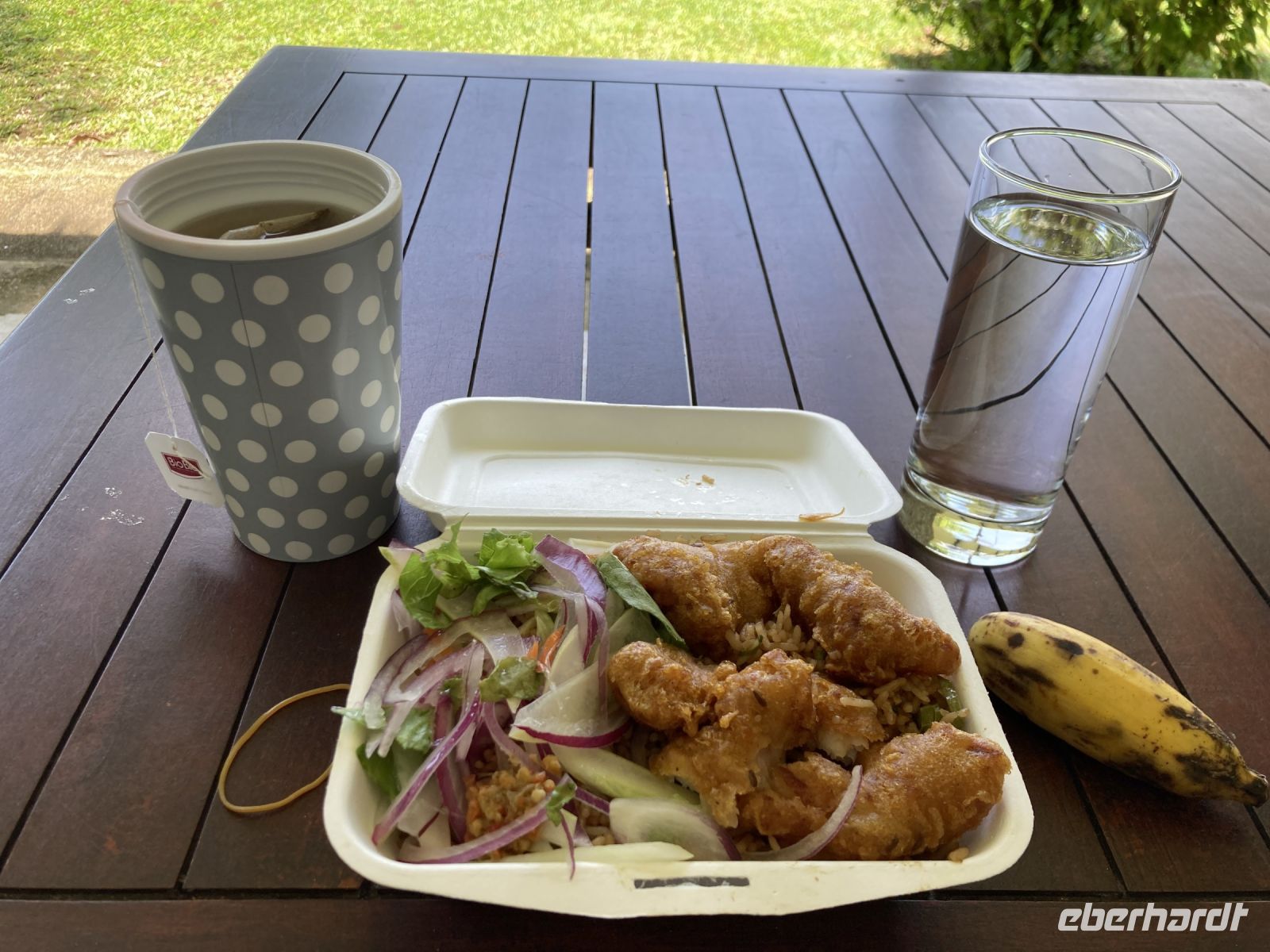 Damit ist unser Vormittagsprogramm eigentlich beendet. Eigentlich... Wir legen noch einem Stopp am Strand von Beau Vallon ein, um uns mit einem traditionellen Take-away zu versorgen - günstig und schmackhaft. Gut versorgt geht es nun zum Hotel, wo wir uns unser Essen schmecken lassen und ein Cocktail gesellt sich dann im Laufe des Nachmittags auch noch dazu.