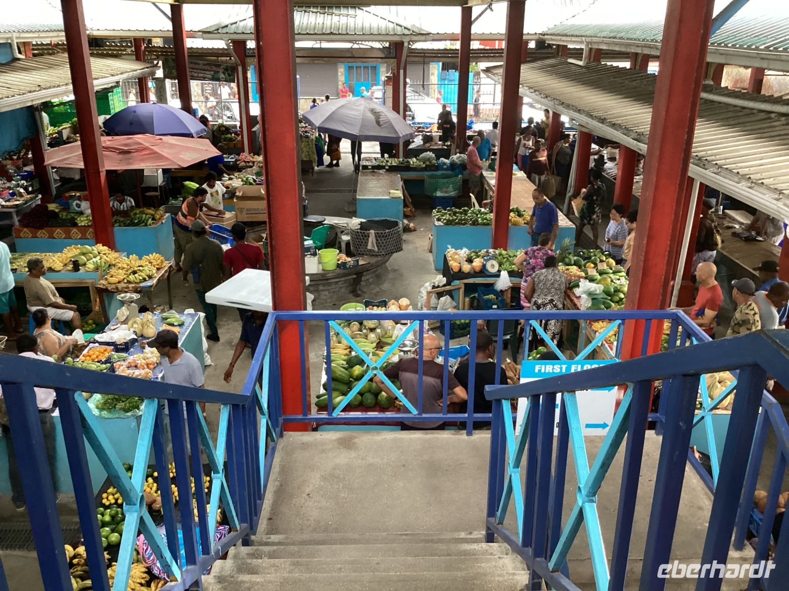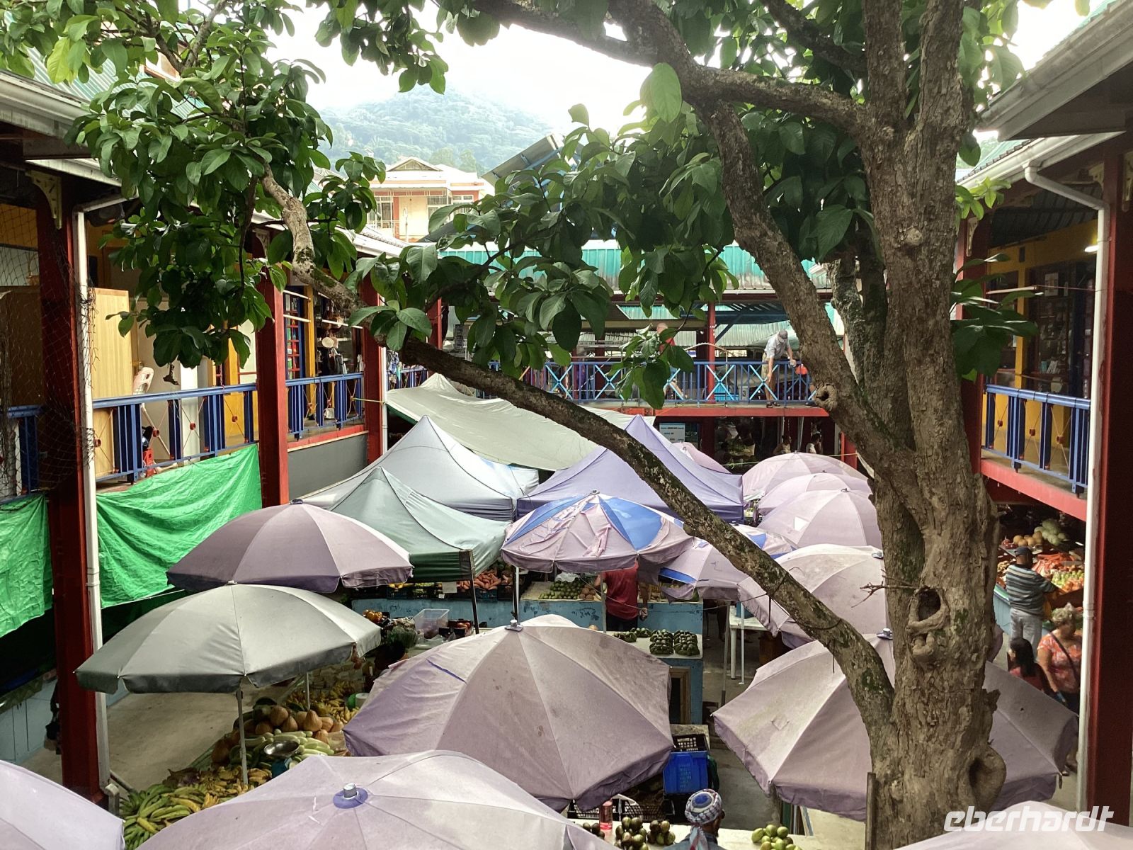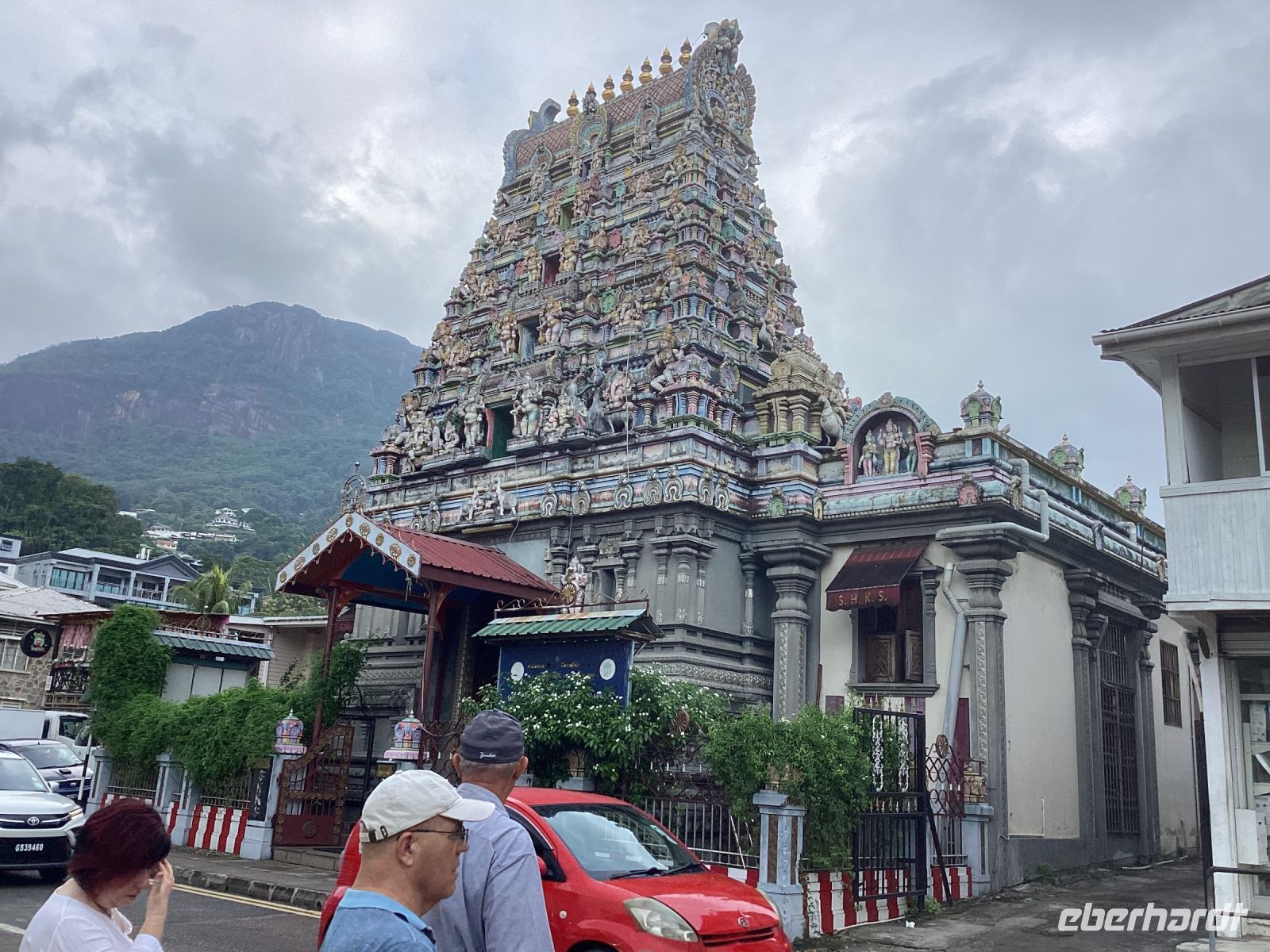 Die Formalitäten für unsere Reise sind erledigt und so kann uns unser örtlicher Reiseleiter Cyril auch bald willkommen heißen. Schnell ist das Geld und die Kleidung gewechselt. Freundliche 30 Grad begrüßen uns. Eigentlich ist die Regenzeit schon vorüber, was den Himmel aber nicht davon abhält, hie und da doch noch Schauer auf uns herabzuschicken. Wir gehen den Morgen gemütlich an. Bei einem Kaffee sammeln wir die ersten Eindrücke. Dann geht es zu unserem Bus. Das Gepäck schnell verstaut und wir fahren nach Victoria, wo wir uns gleich an diesem Morgen in die Markthalle begeben. Unterschiedliche Gerüche, eine Vielzahl an Gewürzen und natürlich Obst, Gemüse und Fisch präsentieren sich uns. Nachdem schon die ersten Einkäufe getätigt wurden, setzen wir unseren Stadtrundgang fort. Zugegeben, bei dem einen oder der anderen macht sich der Nachtflug nun langsam doch bemerkbar. Cyril zeigt uns den Hindu-Tempel, nur eine von vielen Religionen, die auf den Seychellen zu finden ist. Ein Besuch in der Kathedrale der Katholiken mit dem Namen Cathedral of Immaculate Concepcion schließt sich an. Interessanterweise ist der Bischofssitz, der sich rechter Hand befindet deutlich kleiner, als das Haus des Priesters, welches wir links sehen können. Wie kann dies sein? Vieles auf den Seychellen erklärt sich aus der Geschichte. La Domus, das Wohnhaus des Priesters und den Angestellten, wurde 1934 von Schweizer Missionaren erreichtet. Sie waren zu dieser Zeit für die Diözese Victoria verantwortlich. La Domus, erscheint überdimensioniert. Doch die Bauherren erreichtet das Gebäude aus Angst vor Erdbeben aus Granitstein und mit eigener Wasserversorgung aus einer nahen Quellen. Die Kathedrale der Katholiken ist nicht die einzige Kathedrale. Natürlich dürfen die Anglikaner mit der St. Paul's Cathedral nicht fehlen und auch die Protestanten und Moslems haben ihre Gottes- und Gebetshäuser. Bei unserer Besichtigung dürfen wir natürlich den Clock Tower und das Victoria Haus nicht auslassen. Der Uhrenturm ist eine Kopie, des in London im Jahre 1897 errichteten Originals. Der damalige Gouverneur der Seychellen sah die Uhr in London und bestellte eine kleine Kopie im Andenken Queen Victoria. Im Jahre 1903 fand die Uhr ihren Platz hier. Mit dem Kauf von Postkarten und Briefmarken endet langsam unser Rundgang in Victoria. In unserem Bus geht es nun in Richtung Beau Vallon Bay, wo sich unser Hotel befindet. Leider müssen wir dann doch doch einige Zeit auf unsere Zimmer warten. Allerdings lässt es sich auf der luftigen Terrasse gut aushalten. Schließlich haben alle gegen 14 Uhr ihre Zimmer bezogen. Zum Abendessen treffen wir uns dann wieder und werden gleich mit einem Kreolischen Buffet und Musik begrüßt. Wir sind nun wirklich auf Mahé angekommen.