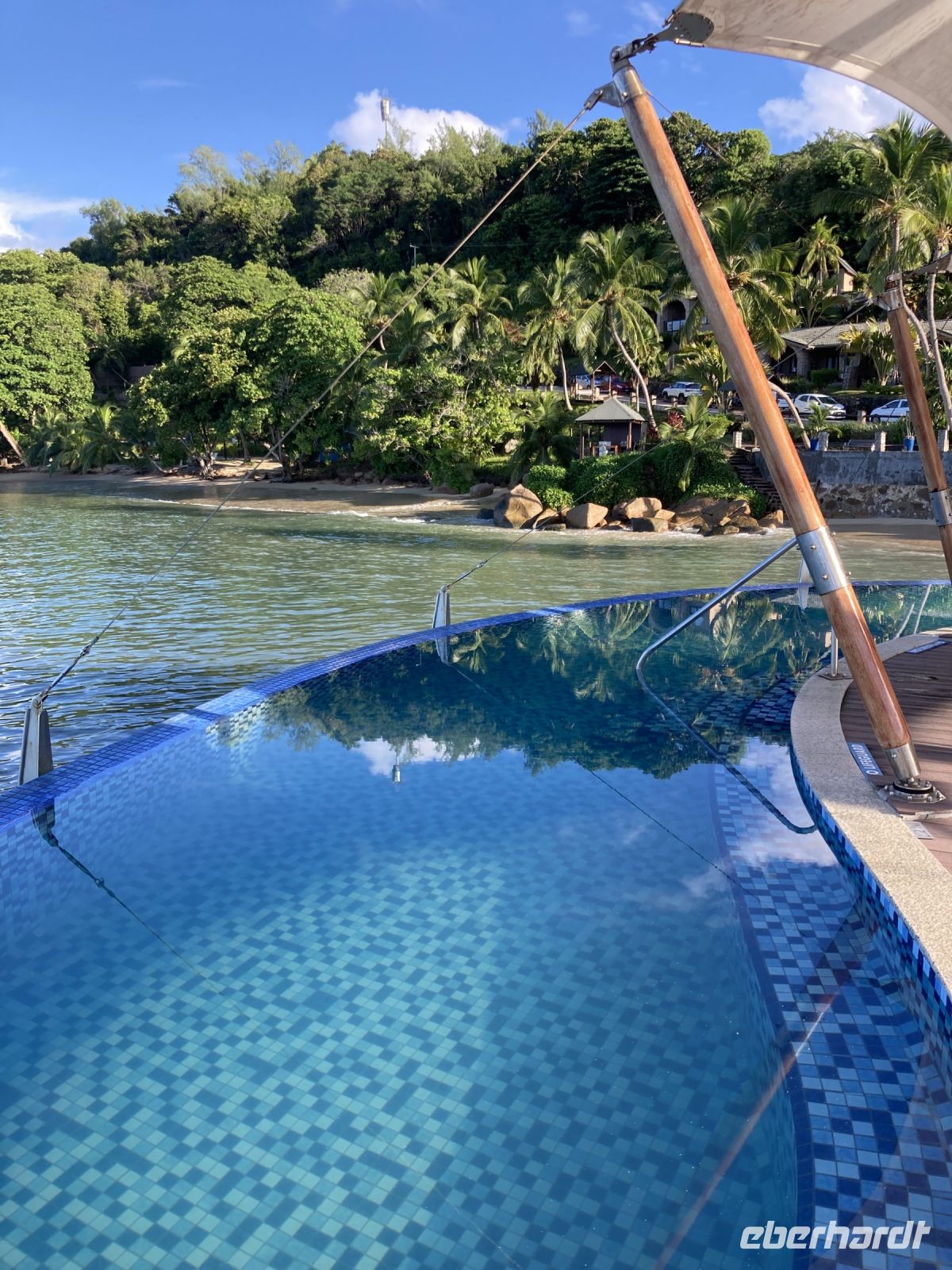 Schwimmen vor dem Frühstück, kann es etwas Schöneres geben? In unserem Hotel auf Praslin bieten sich hierfür gleich drei Möglichkeiten: das Meer, ein Pool mit Salzwasser und ein Süßwasserpool. Also für jede und jeden ist etwas dabei.