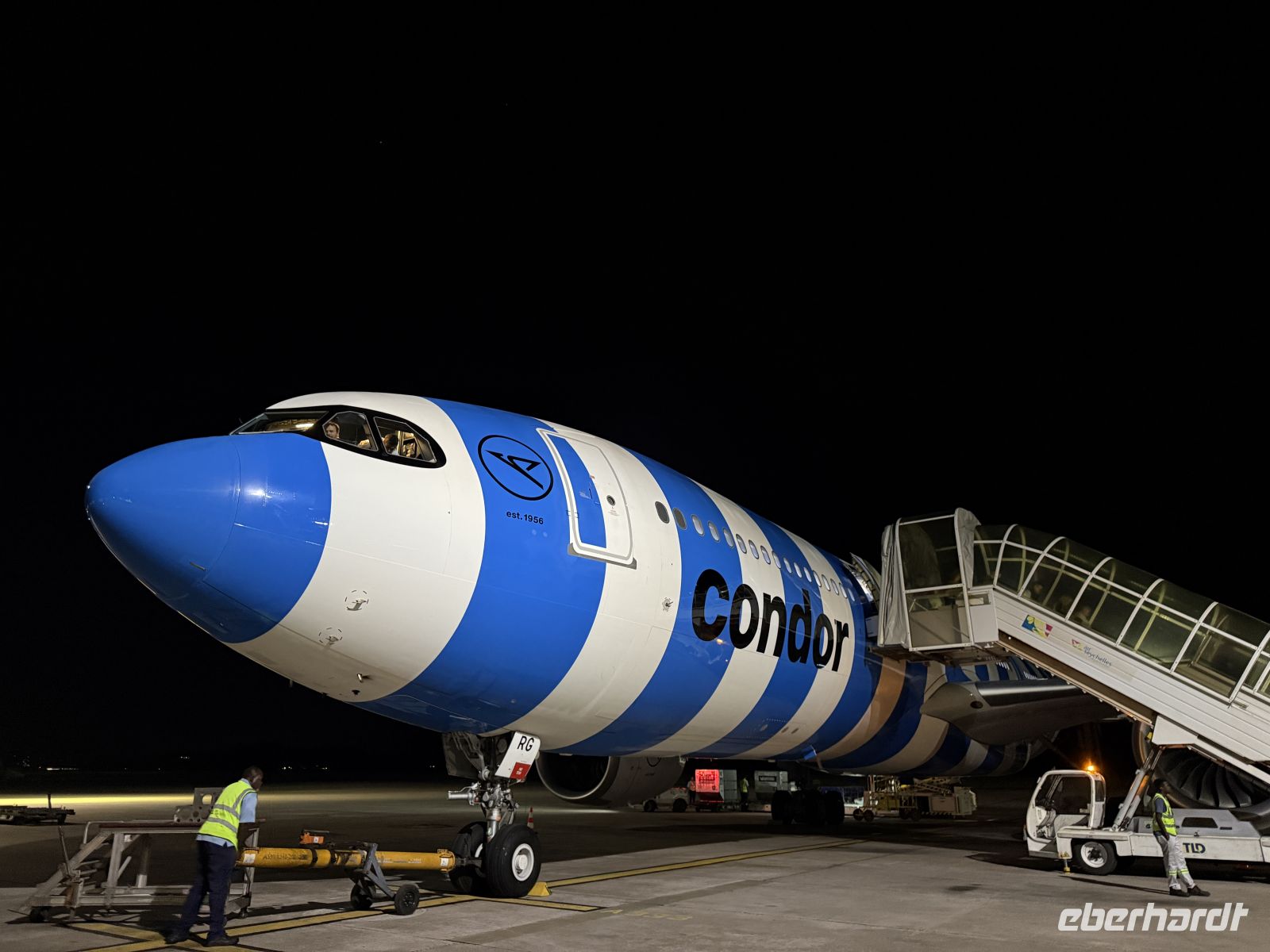 Glücklicherweise kann die gesamte Gruppe den Heimweg gemeinsam antreten. Kurz darauf steigen wir in unseren bunten Flieger und starten in die dunkle Nacht Richtung Frankfurt.