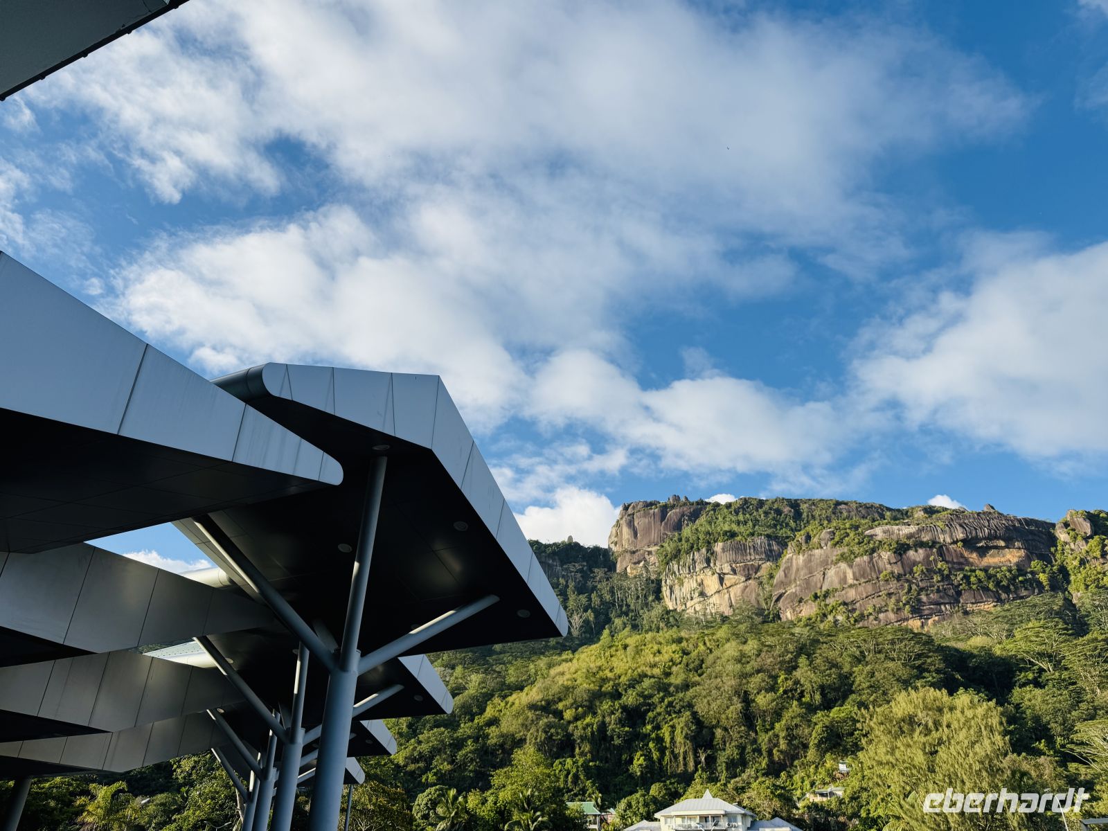 Am frühen Morgen setzt unser Flieger sanft auf der Landebahn auf. Draußen ist es noch dunkel, aber die Luft ist mit etwa 24 °C schon angenehm warm. Die Einreise läuft überraschend unkompliziert und zu unserer Erleichterung haben auch alle Koffer den Weg zu uns gefunden. Gleich nach dem Zoll werden wir von unserer örtlichen Reiseleiterin herzlich begrüßt. Zuerst bleibt etwas Zeit zum Frischmachen, Geld tauschen und natürlich für den ersten Kaffee des Tages. Währenddessen erwacht nicht nur die Insel Mahé langsam zum Leben, auch die Sonne geht auf und begrüßt uns mit einem strahlend blauem Himmel