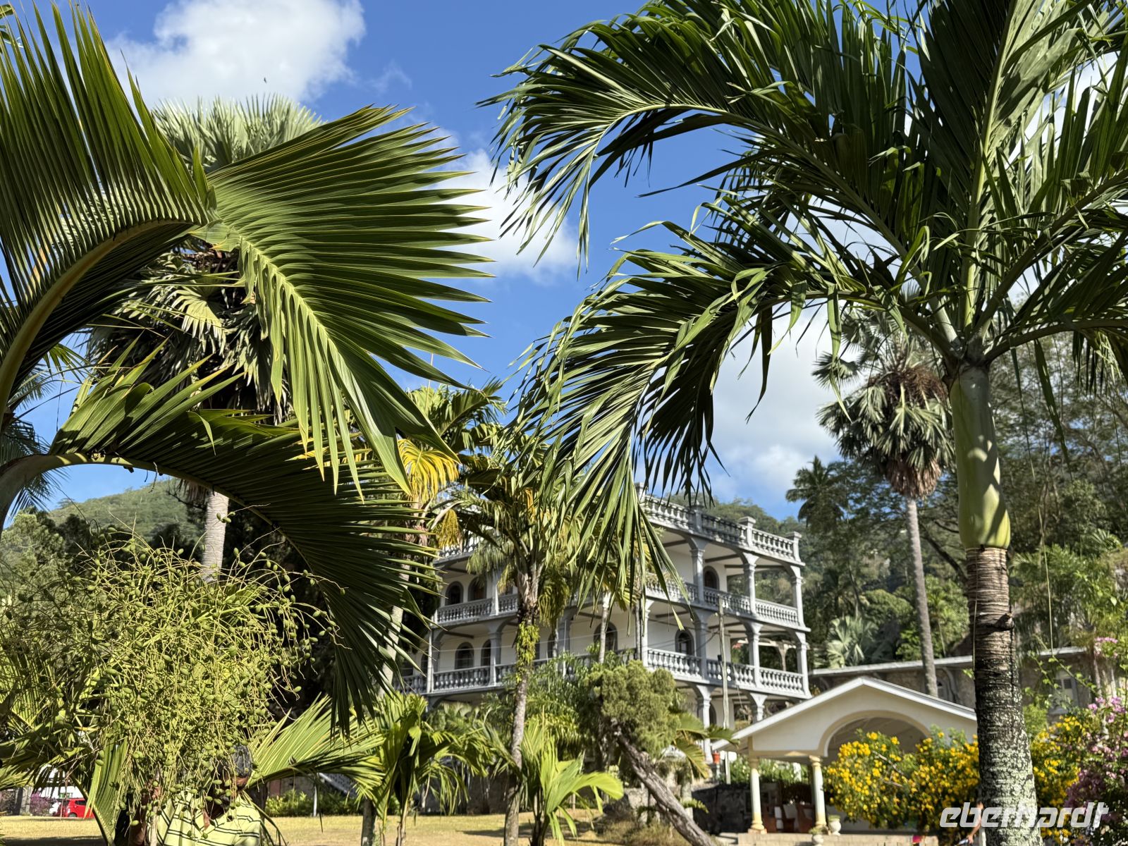 Wir fahren weiter nach Victoria und erreichen den botanischen Garten. Unterwegs erzählt uns unser Reiseleiter Cyrill eine der vielen Geistergeschichten, die sich um einige alte Häuser auf Mahé ranken – spannend und ein wenig mystisch aber auch eine kleine Belustigung, welche wir die nächsten Tage immer wieder hören sollten.