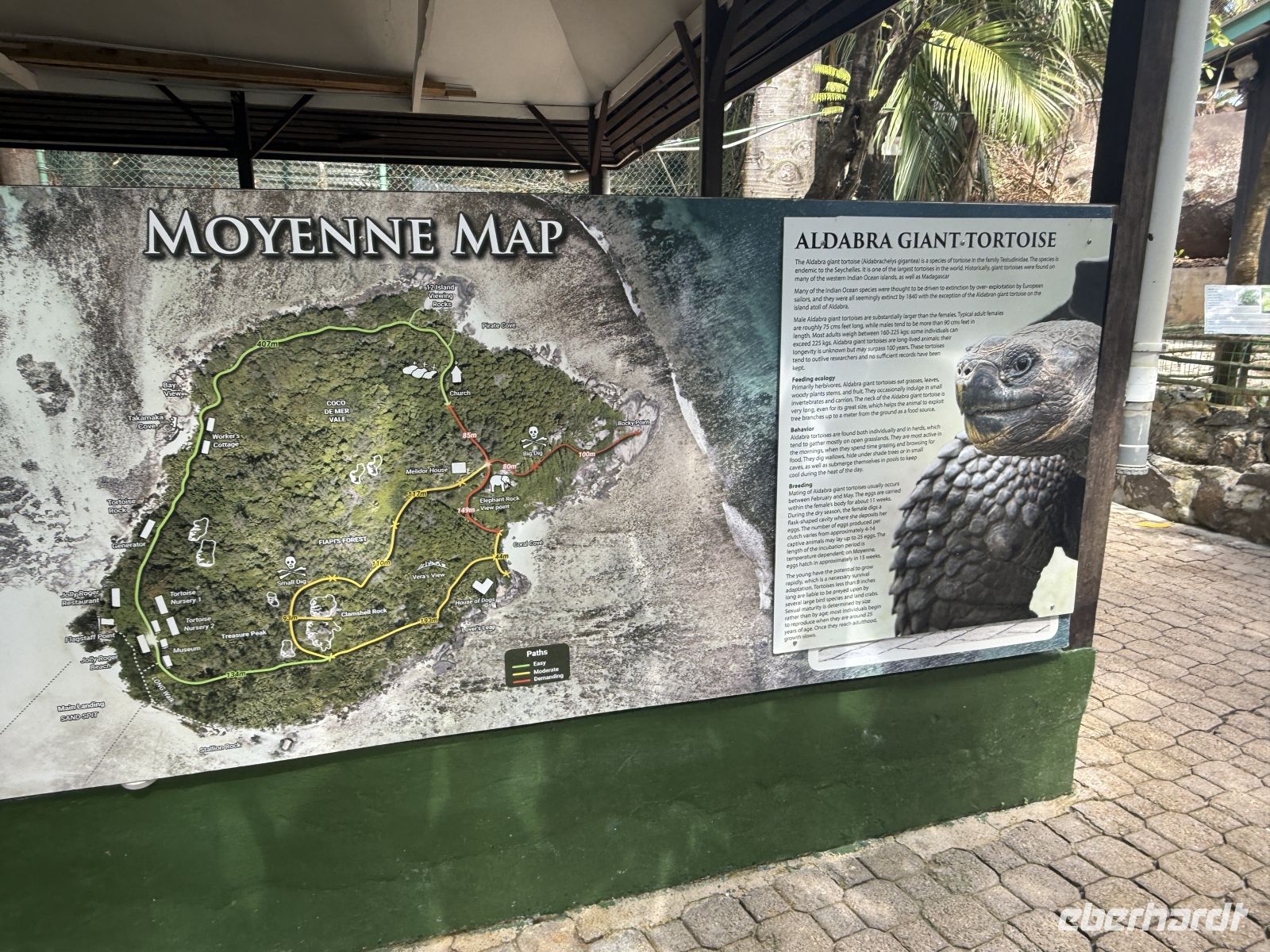 Während eines kurzen Spaziergangs erzählt uns Cyrill mehr über die Geschichte der Insel. Moyenne wurde 1962 vom ehemaligen Journalisten Brendon Grimshaw gekauft, der damals als einer der wenigen Menschen weltweit eine eigene Insel besaß. Er begann Wege anzulegen, Bäume zu pflanzen und die Insel zu schützen. Über die Jahre siedelte er mehr als hundert Riesenschildkröten an. Heute ist sie ein Nationalpark und ein wichtiges Rückzugsgebiet für die Tiere.