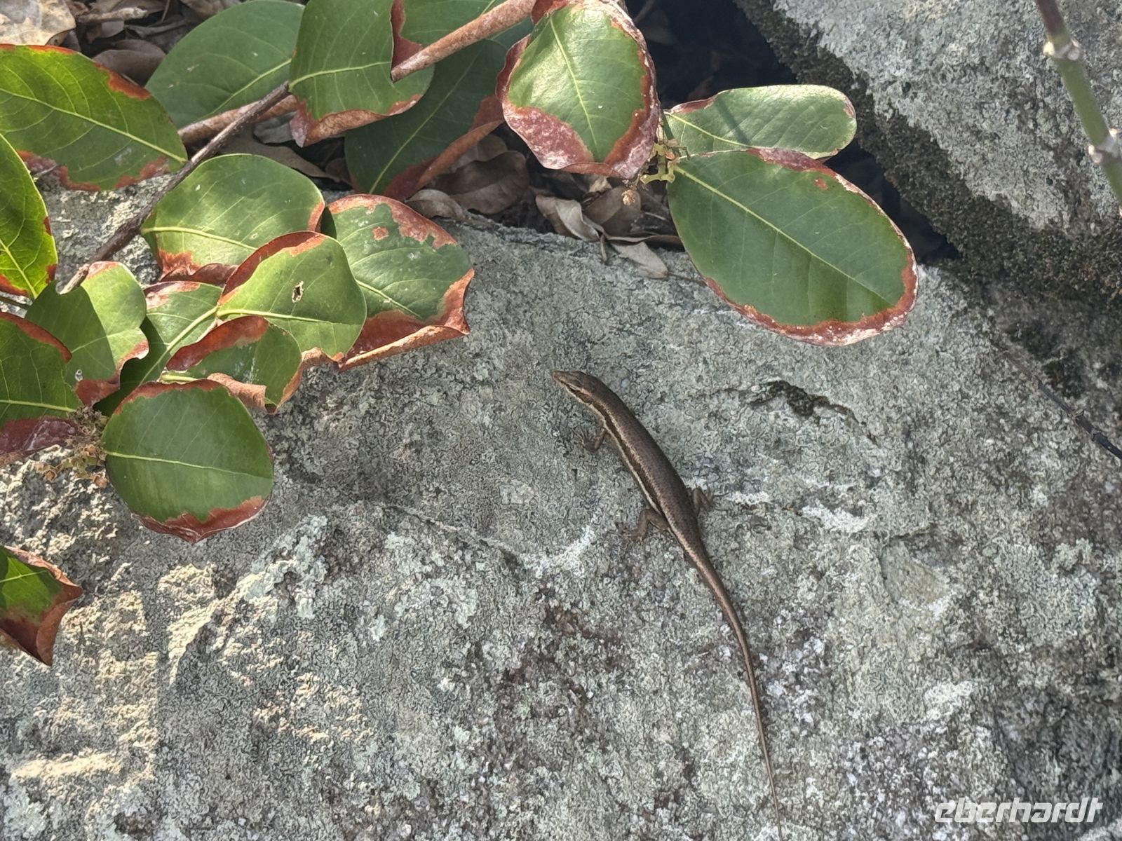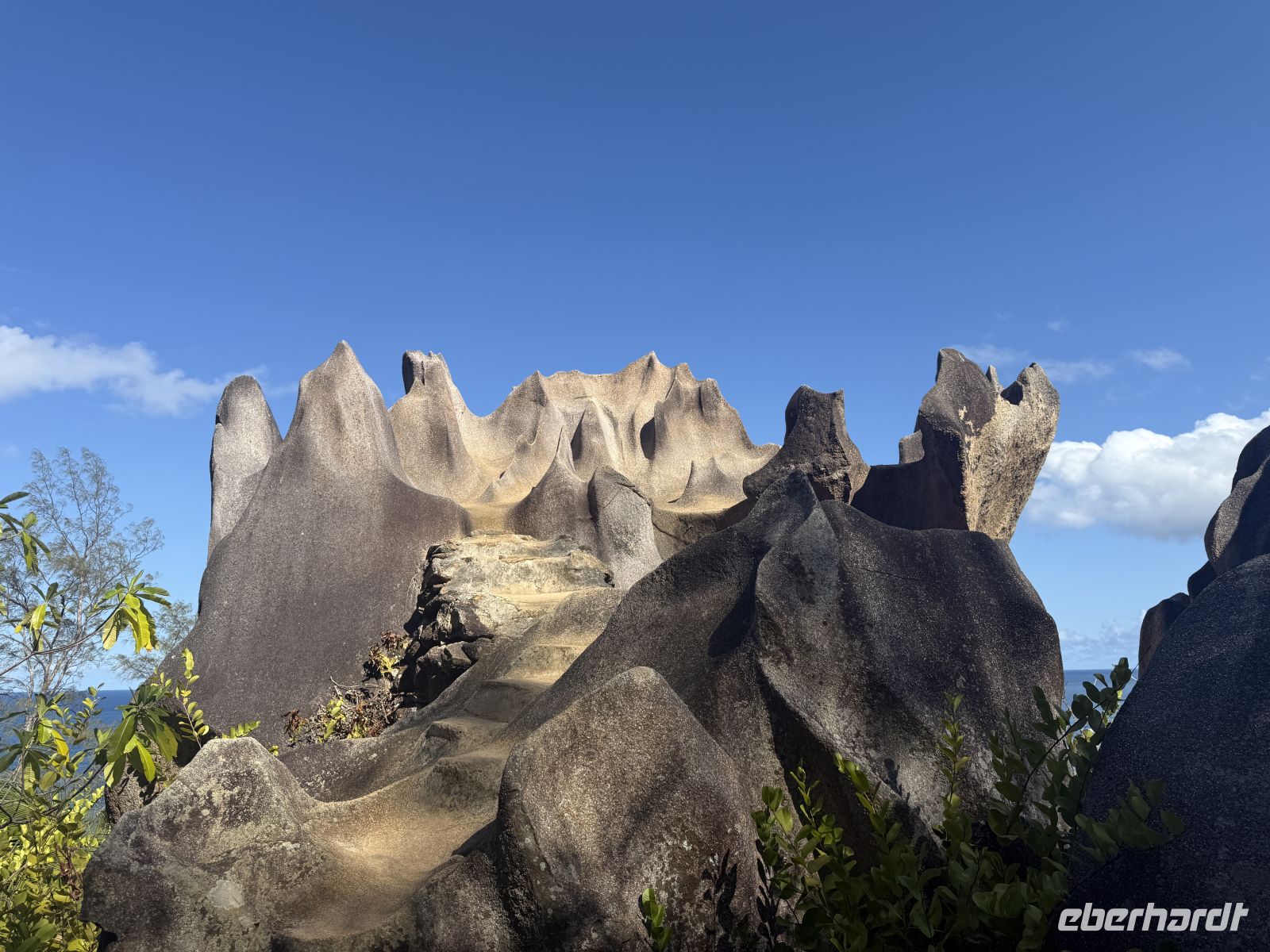 Im Anschluss geht es zu Fuß weiter. Wir spazieren vorbei am imposanten Giant Union Rock, einem riesigen Granitblock und an einem weiteren Reservat mit Riesenschildkröten. Schließlich erreichen wir eine Vanille-Plantage. Durch das lange trockene Wetter sind die Pflanzen leider etwas ausgedörrt, sodass wir uns nicht lange hier aufhalten und uns zügig zum nächsten Höhepunkt bewegen: dem berühmten Anse Source d’Argent.