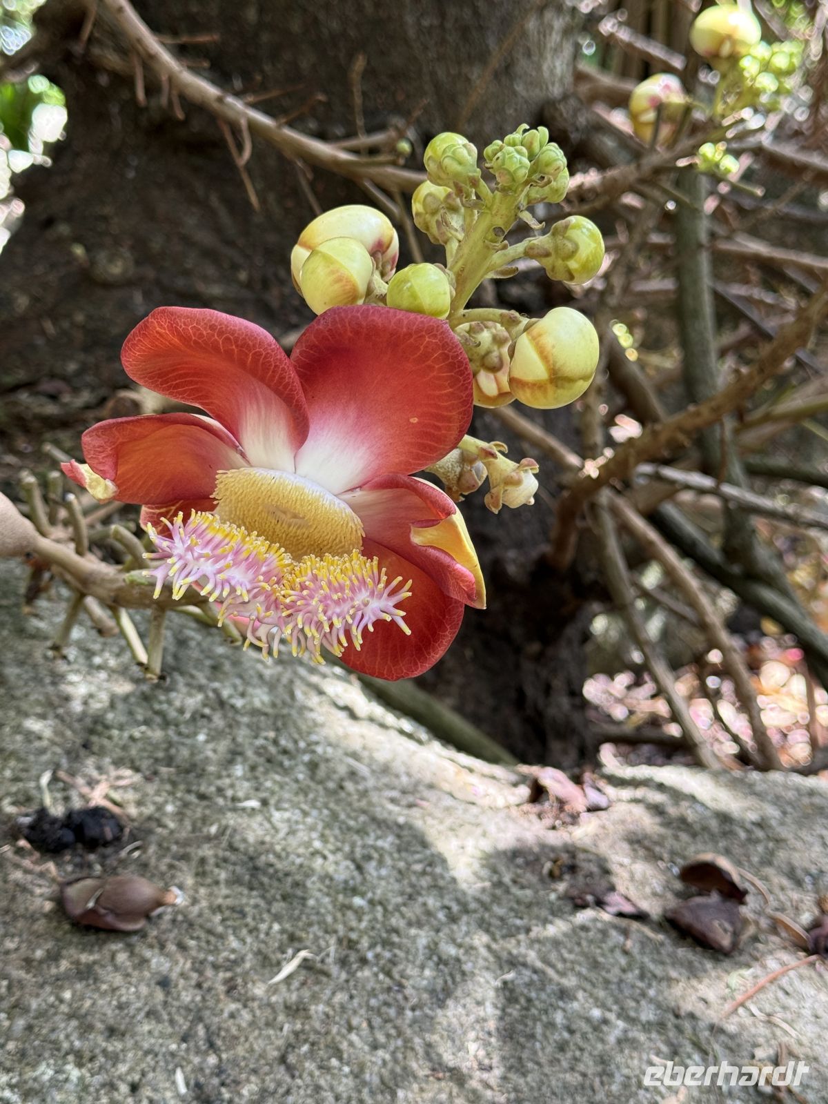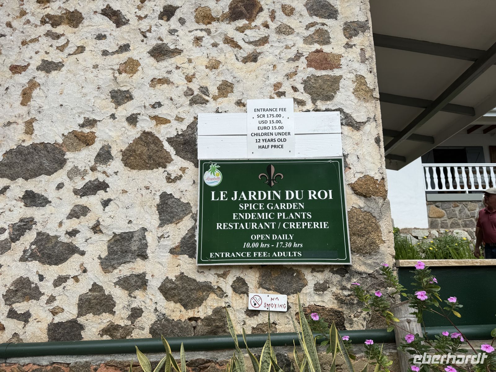 Im botanischen Garten unternehmen wir einen Spaziergang und begegnen einer Reihe tropischer Pflanzen wie Zimtbäumen, Takamaka-Bäume, Ingwerpflanzen und auch Tiere, wie die zahlreichen Flughunde, bleiben nicht unentdeckt. Doch ein kleines Highlight war die Sichtung der ersten Coco de Mer Palme, eine Pflanzenart, welche es nur auf den Seychellen gibt. Ebenso statten wir dem kleinen Schildkrötenreservoir einen Besuch ab und können die Riesenschildkröten sogar füttern.