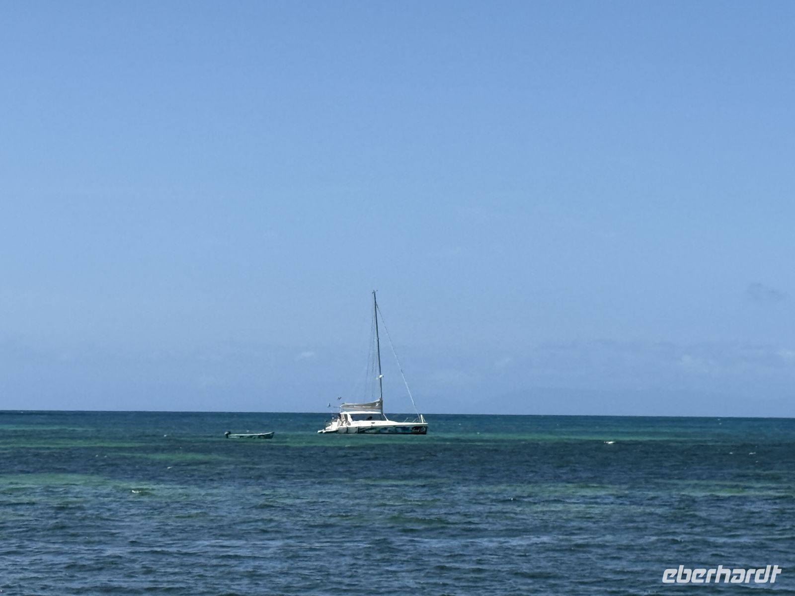Vom hoteleigenen Strand aus sehen wir am Horizont bereits den Katamaran und das kleine Beiboot, welches uns vom Strand zum Katamaran transferiert. Beim Umsteigen ist etwas Balance gefragt, doch sportlich-elegant meistern den Übergang mit einem Lächeln. Die Crew begrüßt uns herzlich und schon bald setzten wir die Segel.