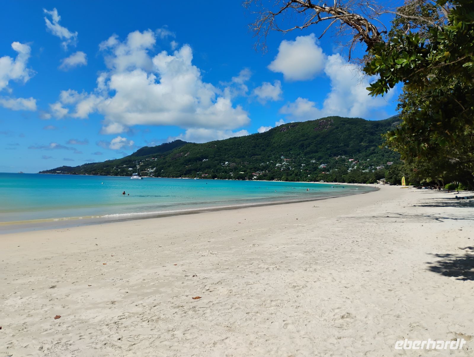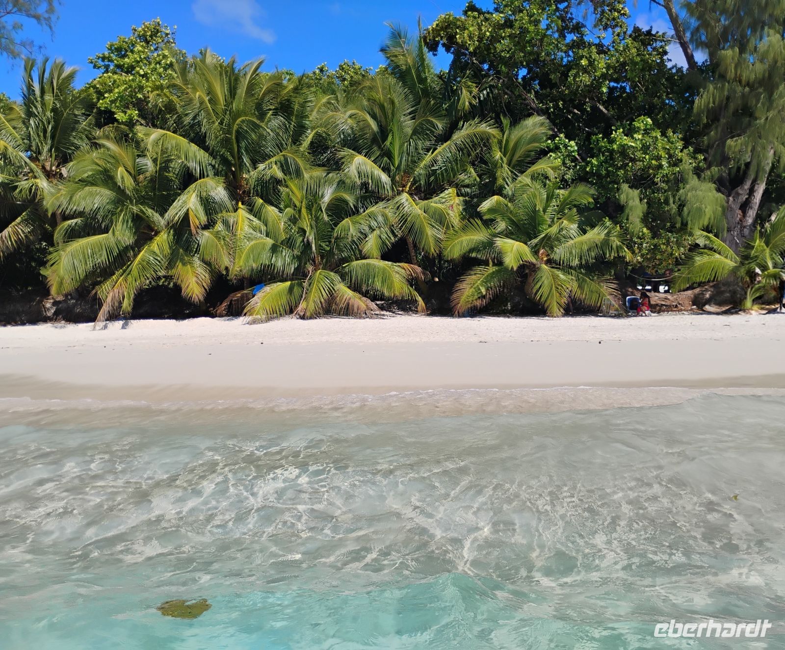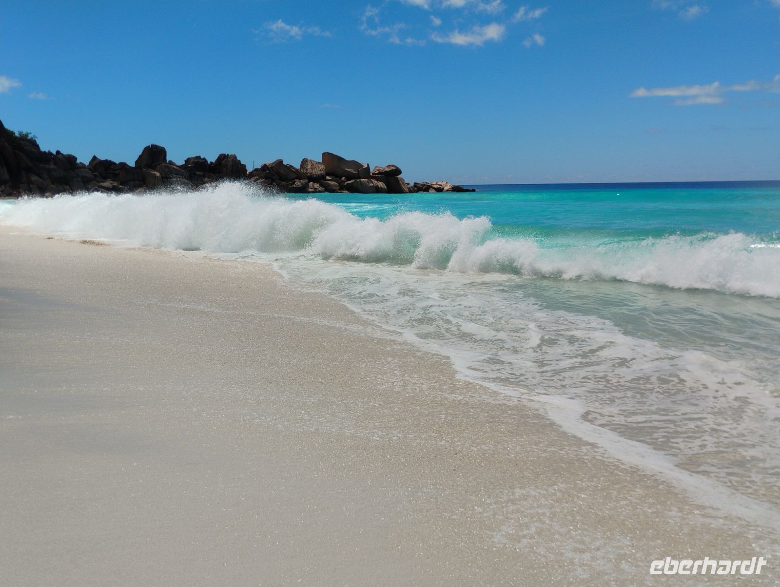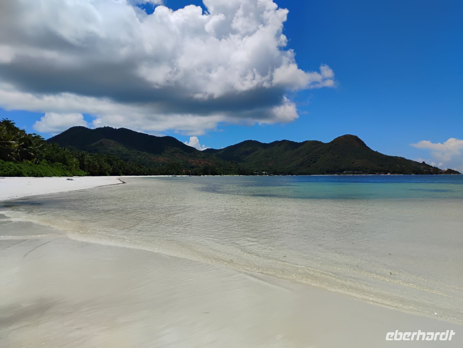Ganz anders präsentiert sich anschließend der berühmte Anse Source d’Argent. Mit seinen bizarren Granitfelsen, dem hellen Sand und dem flachen Wasser gehört er zu den bekanntesten Stränden der Welt und ist eines der meistfotografierten Motive der Seychellen. Auch wenn das Wasser heute nicht ideal zum Baden oder Schnorcheln ist, begeistert die einzigartige Kulisse.