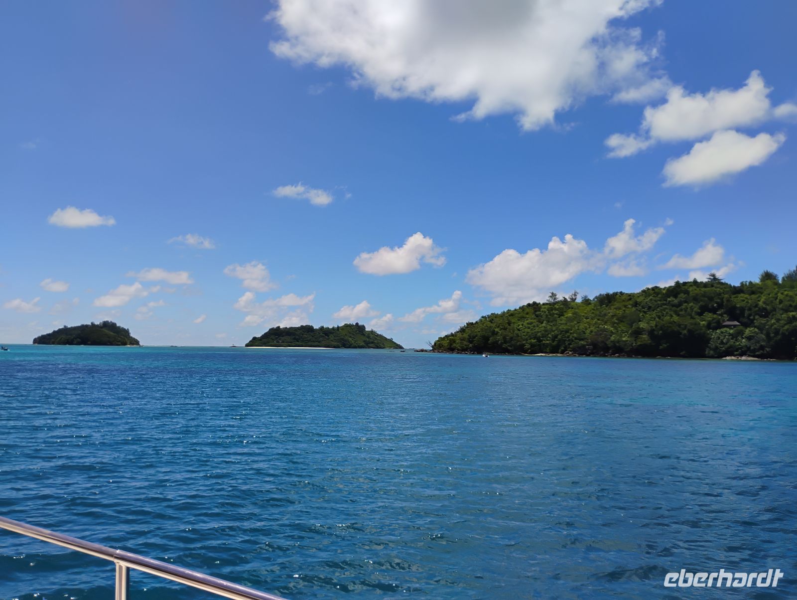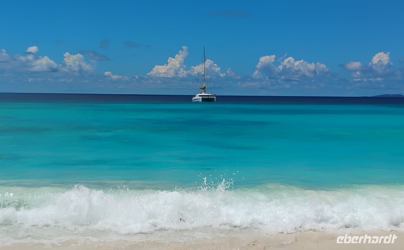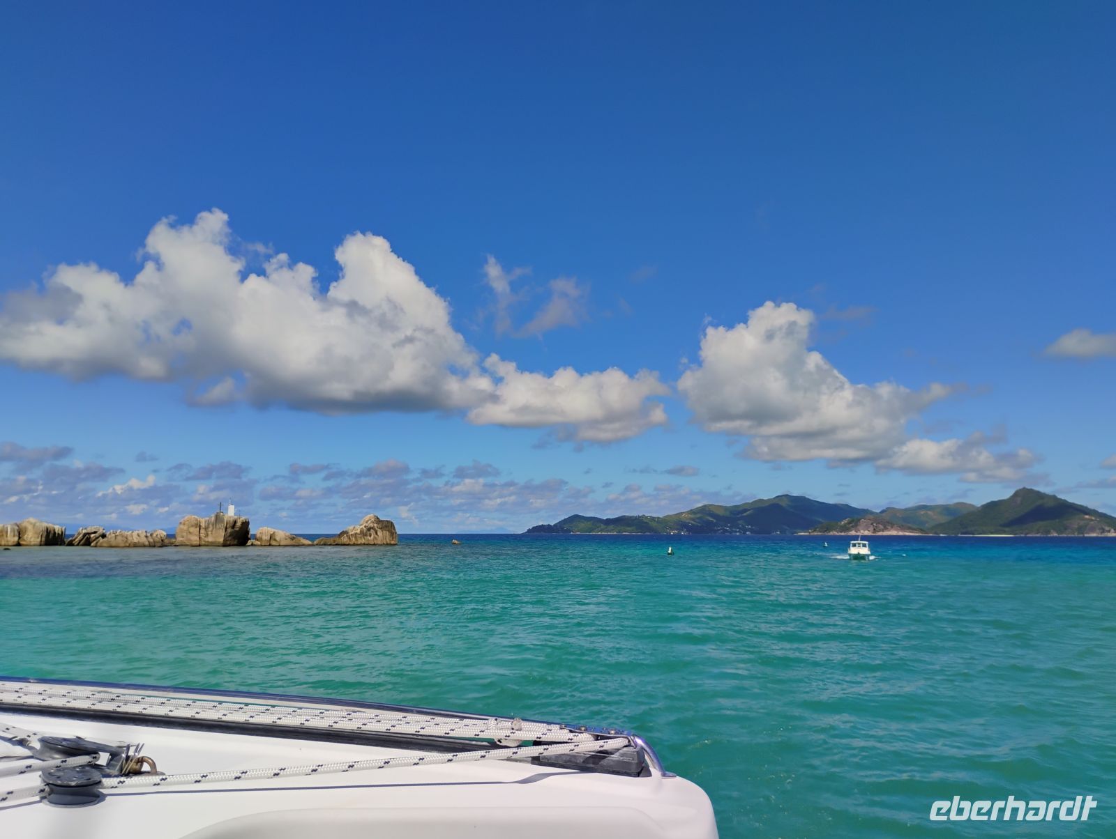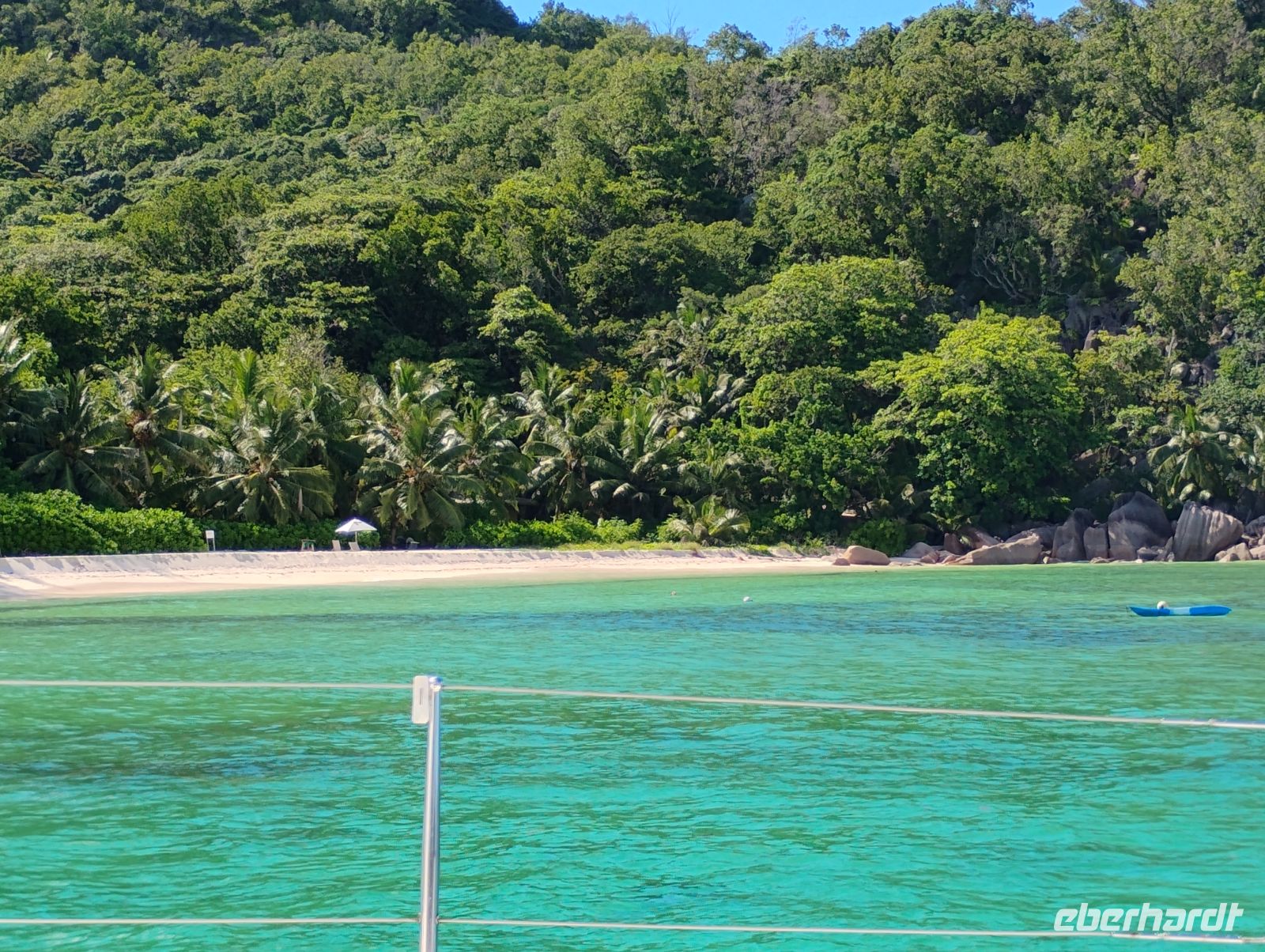 Nach dem Frühstück machen wir uns auf den Weg zu einem weiteren Höhepunkt unserer Reise. Mit dem Katamaran setzen wir von Praslin zur Nachbarinsel La Digue über.