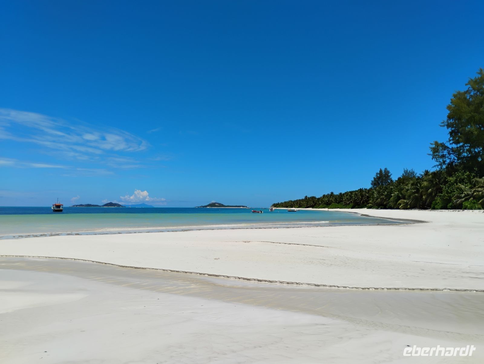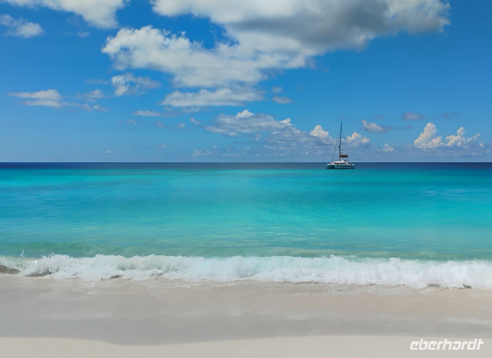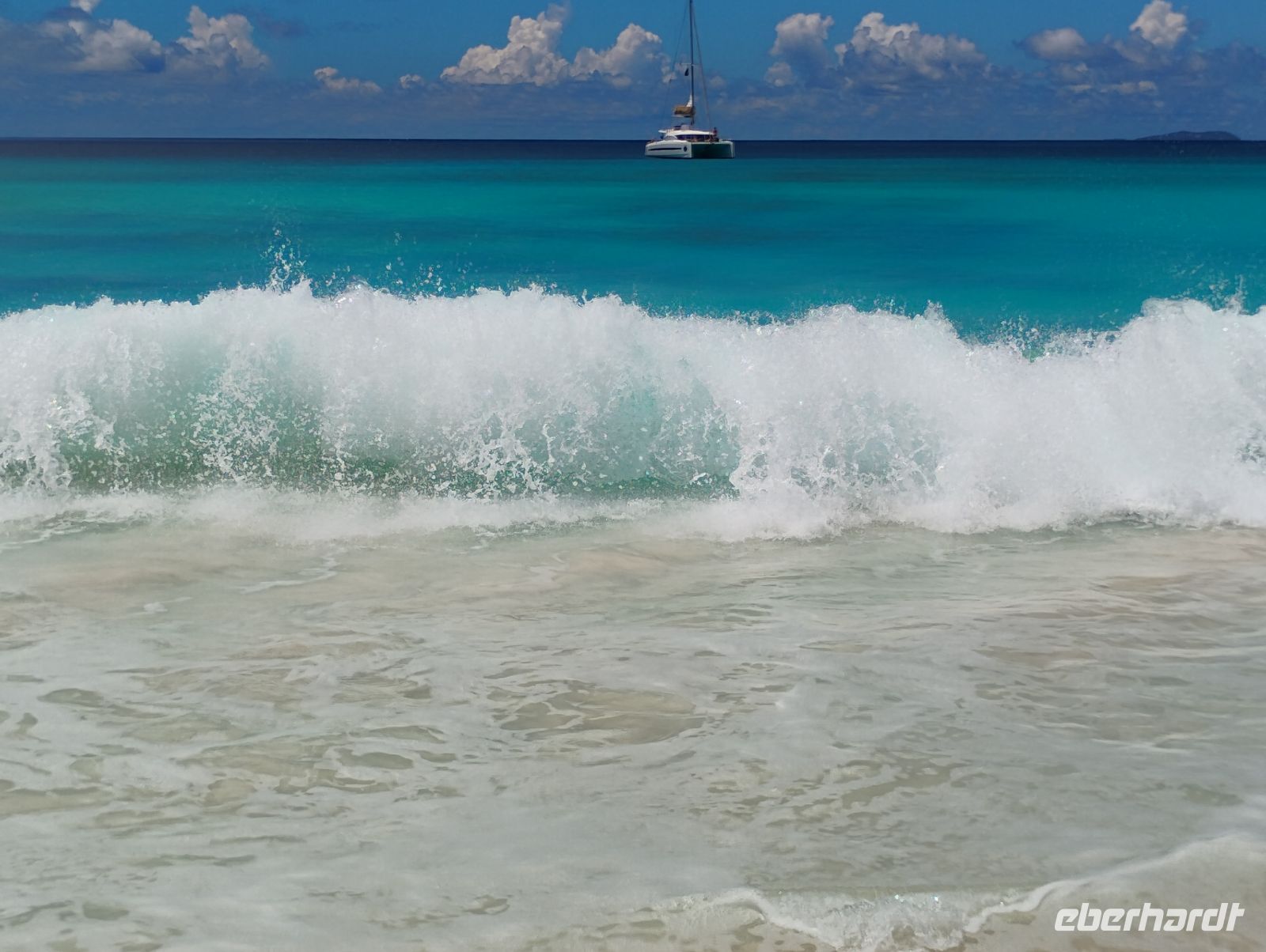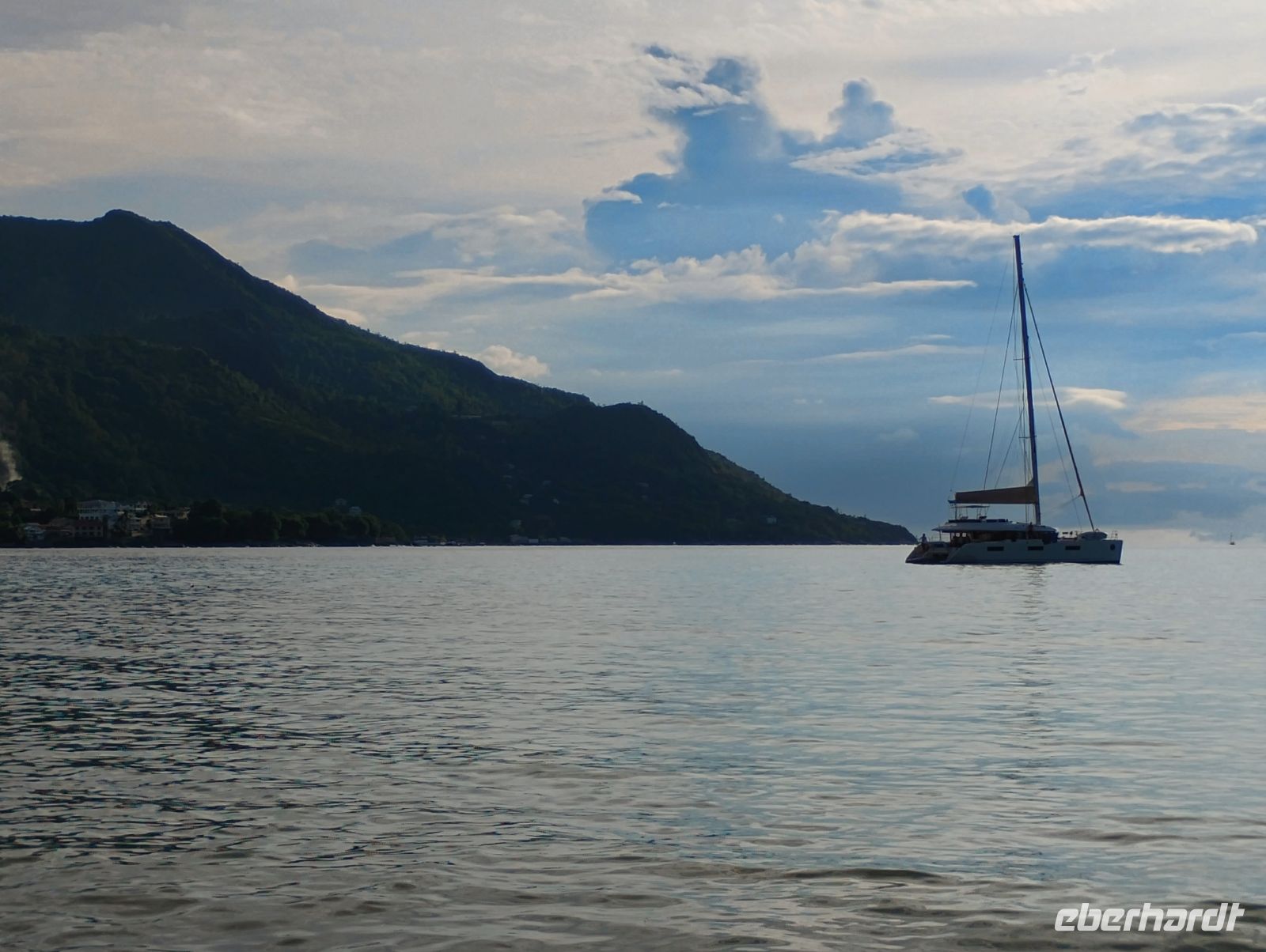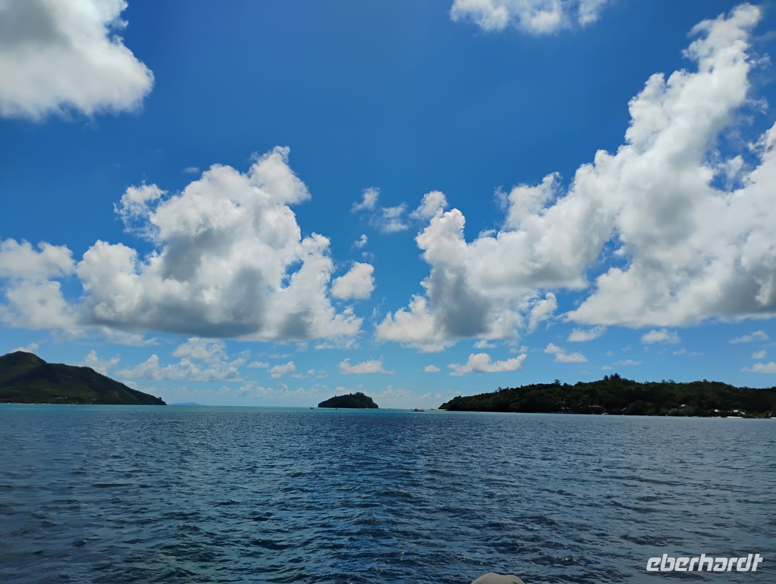 Nach dem Frühstück machen wir uns auf den Weg zu einem weiteren Höhepunkt unserer Reise. Mit dem Katamaran setzen wir von Praslin zur Nachbarinsel La Digue über.