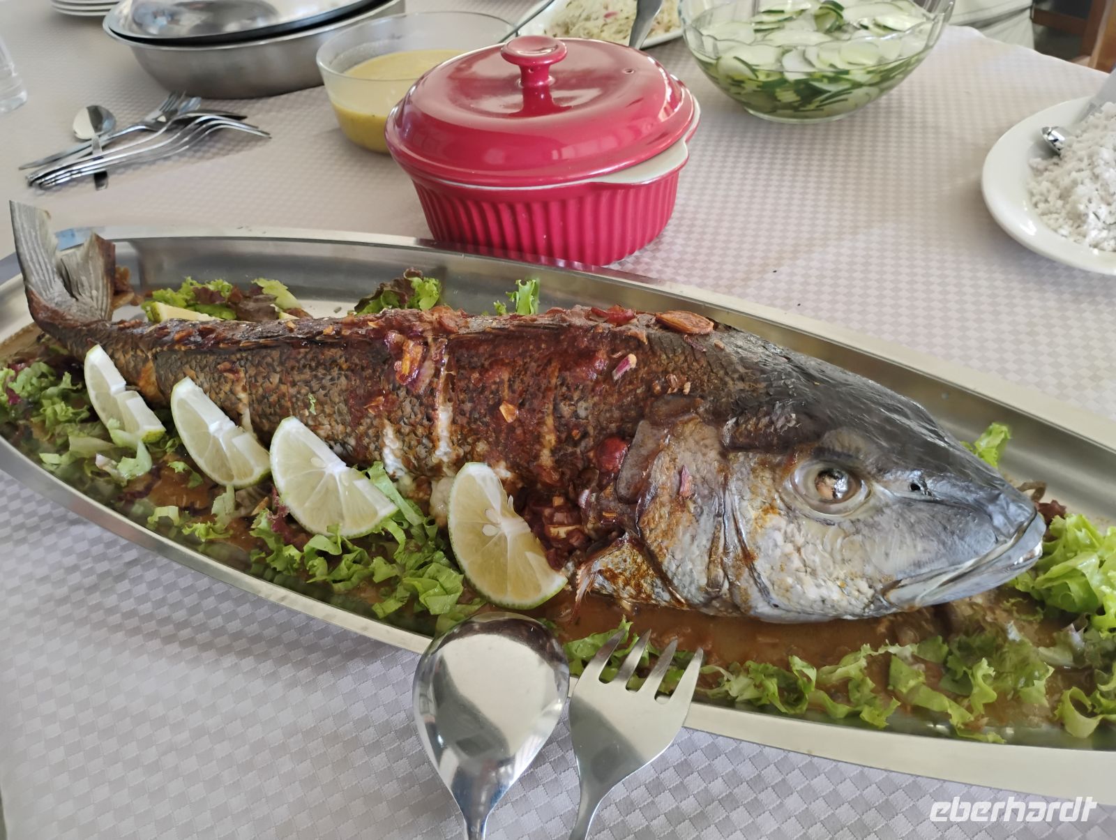 Am Abend treffen wir uns wieder zum gemeinsamen Essen. Heute erwartet uns ein kreolisches Buffet, begleitet von Live-Musik, die für eine schöne und lockere Stimmung sorgt.