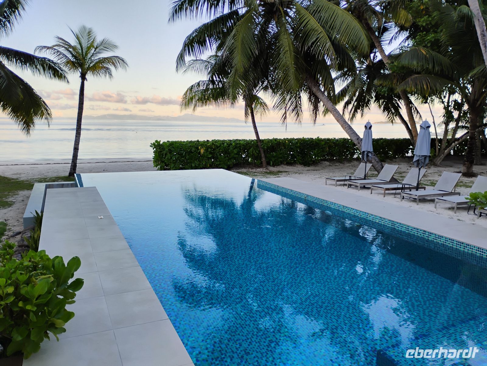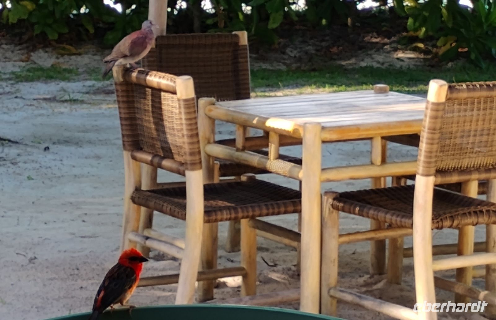 Der letzte Tag auf Praslin beginnt entspannt mit einem ausgiebigen Frühstück. Die vier Gäste, die heute Abend mit mir zurückreisen, können bis zur Abfahrt noch die Annehmlichkeiten des Hotels genießen, sei es ein letzter Besuch am Pool, ein Spaziergang am Strand oder ein kurzer Sprung ins Meer. Die übrigen neun Gäste haben noch eine Woche Verlängerung auf der Insel gebucht und können ihre Zeit auf Praslin in Ruhe fortsetzen.