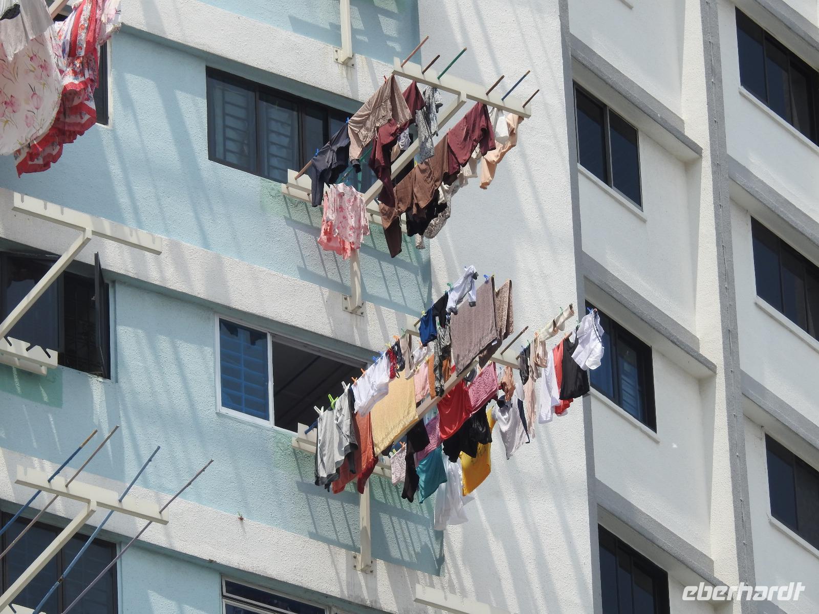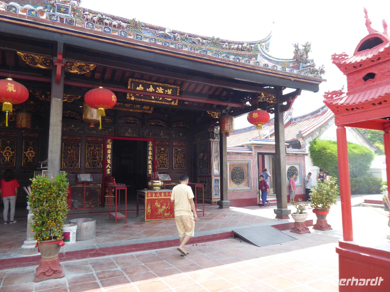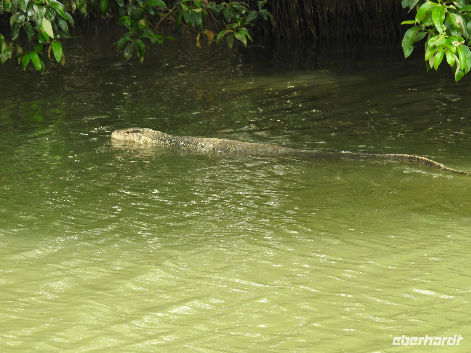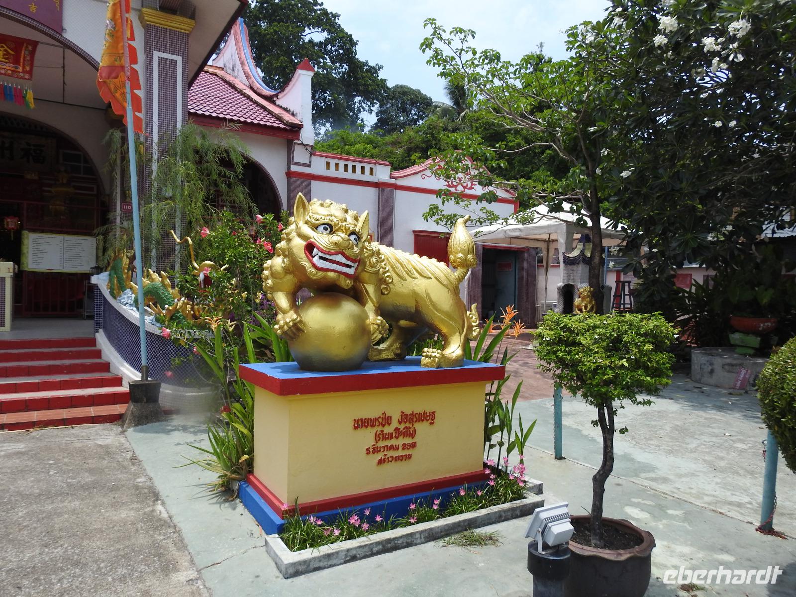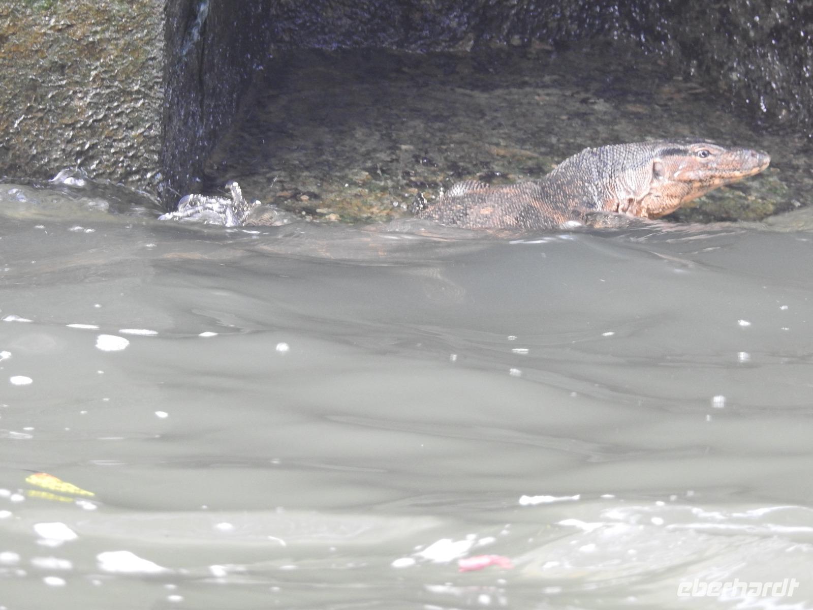 Wir haben uns verabredet, um Acht gemeinsam zu frühstücken. Und so machen wir es auch. Der österreichische Hotelmanager schaut etwas kritisch auf unser Eberhardt-Schild, denn beim Frühstück gibt es freie Platzwahl und man darf nichts reservieren. Gut. Erstens haben wir nichts reserviert, das Schild kam erst mit uns gemeinsam auf den Tisch und zweitens ist ringsum Platz, also lassen wir uns nicht beeindrucken. Das Frühstückbuffet ist reich von Köstlichkeiten. Verschieden Brot- und Brötchensorten, Wurst, Käse, Lachs und Shrimps Cocktail, Eier gekocht und gerührt oder frisch gebraten, Obst und vieles mehr. Da fällt die Auswahl schwer. Nach dem Frühstück gibt es eine Stunde Freizeit, mehr nicht. Warum? Na, um Zehn ist die zweite Sicherheitsübung und anschließend wird die Crew vorgestellt. Der Kapitän hält eine freundliche Rede und anschließend übernimmt die Kreuzfahrtdirektorin Monika aus Brasilien die Regie. So sind wir bis Elf beschäftigt. In der Piano-Bar setzen wir uns nun zusammen, um den Ausflug am Nachmittag zu besprechen. Halb zwölf gibt es die Einweisung für Tauchinteressenten, parallel das Mittagsbuffet. Auch hier lässt der Koch sich nicht lumpen. Von der Vorsuppe über Salatbuffet, vier Hauptspeisen und Obst oder Süßes zum Nachtisch, es gibt alles, was das Herz begehrt. 13.30 Uhr treten wir an zum Ausflug. Wir haben uns für das HISTORISCHE MALAKKA entschieden. Über eine wacklige Gangway (wir liegen auf Reede) hangeln wir uns ins Tenderboot. Ca. zehn Minuten sind es bis zum Land. Dort erwartet uns ein Reisebus, der uns mit weiteren 37 Gästen in ca. 10 Minuten zum Stadtzentrum bringt. Hier beginnt unsere Stadtbesichtigung. Wir befinden uns in der ältesten Stadt Malaysias, die ca. 181.000 Einwohner hat. Schon vom Busfenster aus, ist zu sehen, dass kunterbunte Rikschas hier das Stadtbild bestimmen. Später stellen wir fest, dass aus den Rikschas auch noch ohrenbetäubende Musik erklingt. Ab dem Santiago Tor, das zu den Überresten einer portugiesischen Festung gehört, gehen wir zu Fuß. Es sind schlappe 31 Grad. Unser junger Guide ist nicht zu bremsen. Er erklärt sowohl in Deutsch als auch in Englisch, alles was er über die Geschichte der Stadt weiß und was wir wissen müssen. Und das ist nicht wenig. Während die Englisch sprachigen Gäste ihre Informationen bekommen, haben wir Zeit, die Gebäude in der Nachbarschaft ins Auge bzw. vor die Linse zu nehmen. Links vom Santiago Tor befindet sich das Bastionshaus und rechts die Memorial Hall. Wenn wir Zeit hätten, könnten wir, ohne Eintritt zu bezahlen, hier die Dokumentation von Malaysias Weg zur Unabhängigkeit besichtigen, wozu Urkunden, Verträge, Karten usw. gehören. Wir aber erklimmen den St. Pauls Hügel, wofür wir 150 Treppenstufen bewältigen müssen, die direkt vom Santiago Tor hinaufführen. Auf dem Hügel befindet sich die gleichnamige (und erste) katholische Kirche der Stadt. Hier begruben die Holländer ihre Adligen. Die beeindruckenden Grabplatten sind heute noch zu besichtigen. Vom St. Pauls Hügel steigen wir hinab und kommen zum holländischen Stadthys, das vermutlich 1650 erbaut wurde und damals Sitz der holländischen Gouverneure war. Heute befindet sich hier ein Geschichtsmuseum. Nebenbei bemerkt gibt es in Malakka 30 Museen. Am holländischen Platz finden sich außerdem Zeugnisse der britischen Herrschaft, ein Uhrturm und der Victoria-Brunnen. Durch die Jong-Street gelangen wir zur Straße der Harmonie, die deshalb so heißt, weil sich hier in einer Reihe, eine Moschee, eine christliche Kirche und ein chinesischer Tempel befinden. Den Chen-Hoon-Teng Tempel besichtigen wir auch von Innen. Schöne Holzschnitzereien sind hier zu bewundern und es riecht nach Räucherstäbchen. In einer Nebenstraße nähert sich eine Prozession mit Drachentanz, aber wir haben keine Zeit und dürfen nicht bleiben, um zu schauen. Wir begeben und zum Baba Nyonya Museum, das sich in einem privaten Wohnhaus einer Familie der Nyonyas befindet, weswegen auch das Fotografieren verboten ist. Die Nyonya sind eine eigene Bevölkerungsgruppe, die sich aus der Verheiratung von malayischen Frauen und chinesischen Männern entwickelt hat. Den Abschluss unserer Stadtbesichtigung bildet eine Bootsfahrt auf dem Melaka-Fluss, bei der wir nochmal einen Blick auf die bunt angestrichenen Häuser haben und vor allem Leguane unsere Aufmerksamkeit erregen. Mit vier Gästen Verlust (natürlich nicht von unserer Gruppe) erreichen wir schließlich das letzte Tenderboot, das um 17.30 Uhr zur Star Clipper fährt. Um 18 Uhr verlassen wir Malakka und nehmen Kurs auf Langkawi. Nach einem üppigen Abendessen kann man entweder die bordeigene Modenschau besuchen oder sich aufs Ohr legen. Gute Nacht, ihr Lieben, bis Morgen!