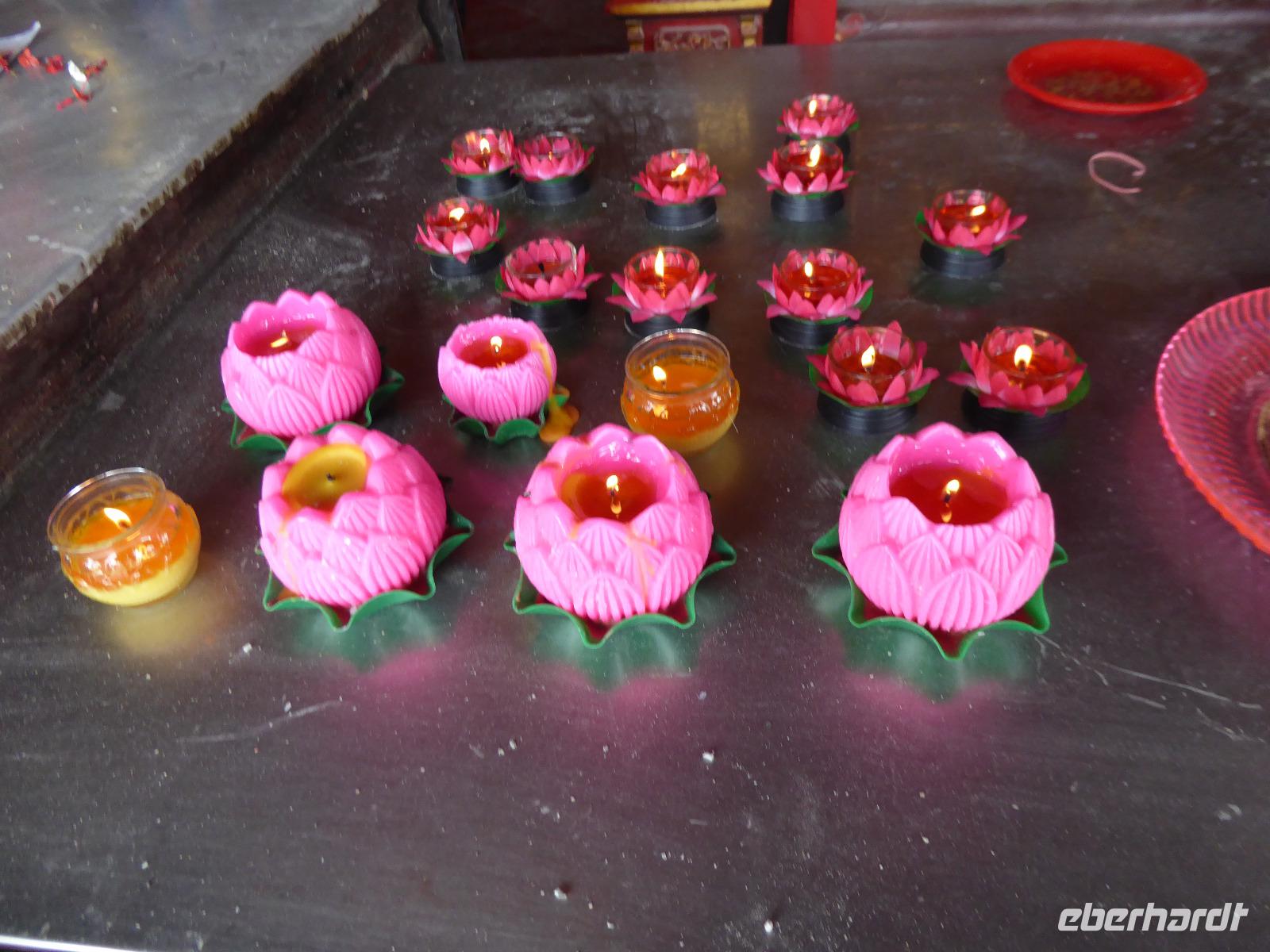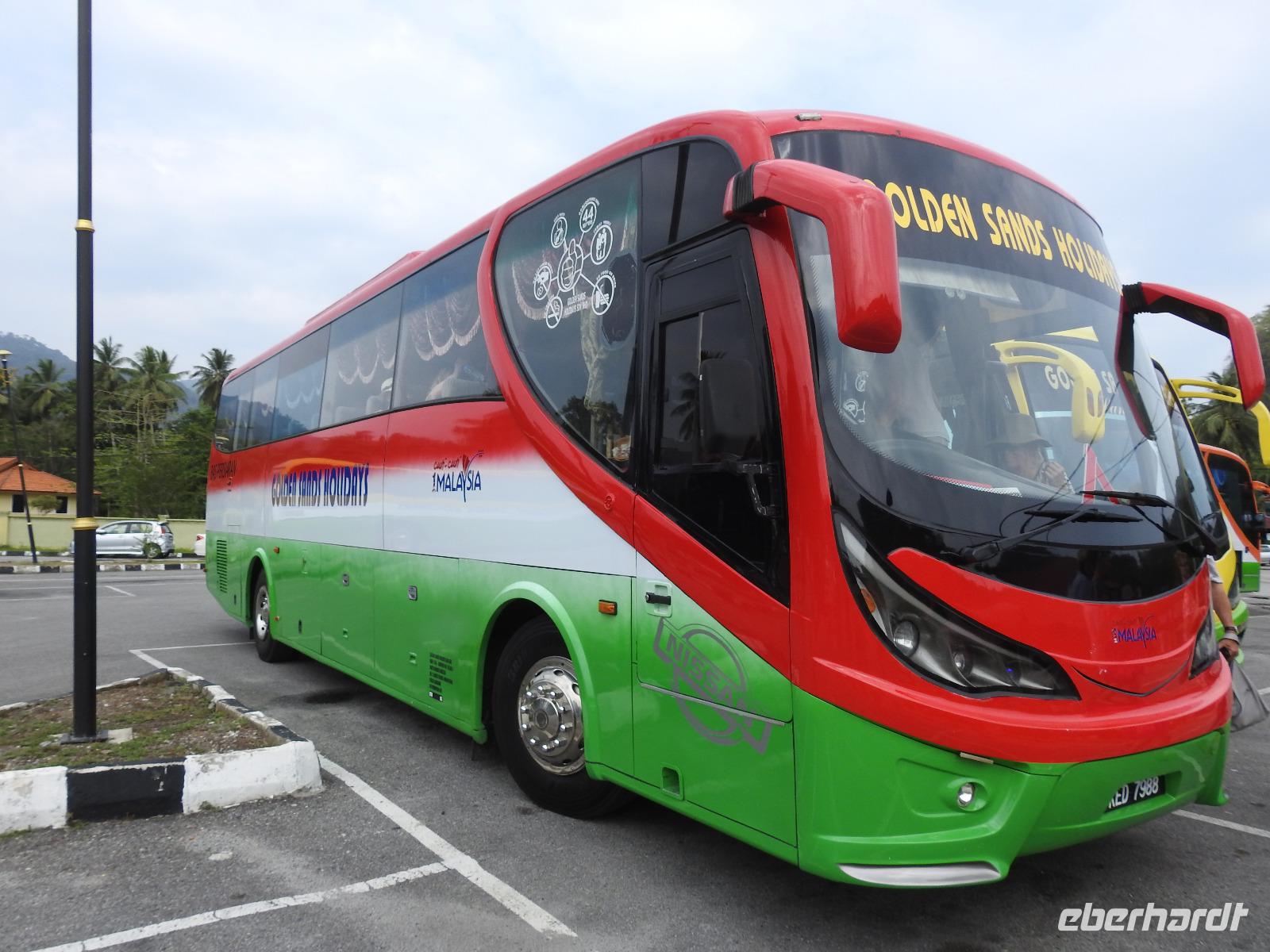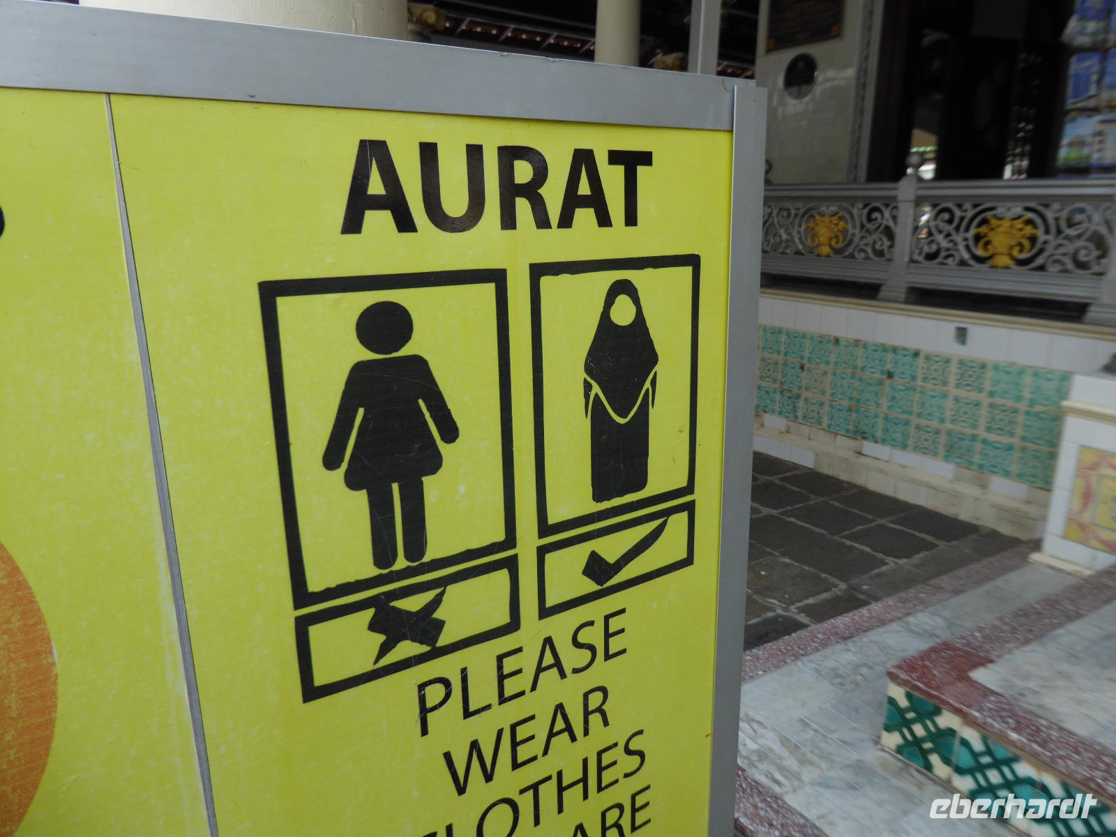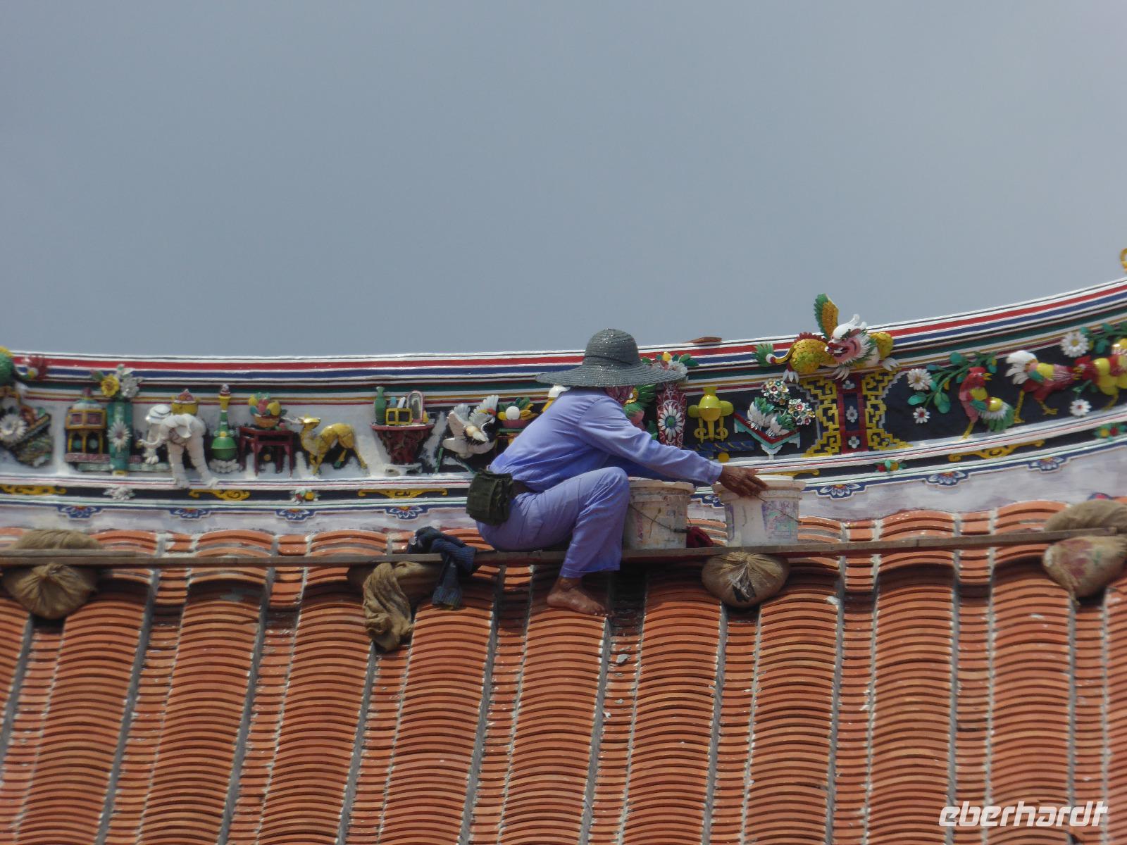 Wir haben uns verabredet, um Acht gemeinsam zu frühstücken. Und so machen wir es auch. Der österreichische Hotelmanager schaut etwas kritisch auf unser Eberhardt-Schild, denn beim Frühstück gibt es freie Platzwahl und man darf nichts reservieren. Gut. Erstens haben wir nichts reserviert, das Schild kam erst mit uns gemeinsam auf den Tisch und zweitens ist ringsum Platz, also lassen wir uns nicht beeindrucken. Das Frühstückbuffet ist reich von Köstlichkeiten. Verschieden Brot- und Brötchensorten, Wurst, Käse, Lachs und Shrimps Cocktail, Eier gekocht und gerührt oder frisch gebraten, Obst und vieles mehr. Da fällt die Auswahl schwer. Nach dem Frühstück gibt es eine Stunde Freizeit, mehr nicht. Warum? Na, um Zehn ist die zweite Sicherheitsübung und anschließend wird die Crew vorgestellt. Der Kapitän hält eine freundliche Rede und anschließend übernimmt die Kreuzfahrtdirektorin Monika aus Brasilien die Regie. So sind wir bis Elf beschäftigt. In der Piano-Bar setzen wir uns nun zusammen, um den Ausflug am Nachmittag zu besprechen. Halb zwölf gibt es die Einweisung für Tauchinteressenten, parallel das Mittagsbuffet. Auch hier lässt der Koch sich nicht lumpen. Von der Vorsuppe über Salatbuffet, vier Hauptspeisen und Obst oder Süßes zum Nachtisch, es gibt alles, was das Herz begehrt. 13.30 Uhr treten wir an zum Ausflug. Wir haben uns für das HISTORISCHE MALAKKA entschieden. Über eine wacklige Gangway (wir liegen auf Reede) hangeln wir uns ins Tenderboot. Ca. zehn Minuten sind es bis zum Land. Dort erwartet uns ein Reisebus, der uns mit weiteren 37 Gästen in ca. 10 Minuten zum Stadtzentrum bringt. Hier beginnt unsere Stadtbesichtigung. Wir befinden uns in der ältesten Stadt Malaysias, die ca. 181.000 Einwohner hat. Schon vom Busfenster aus, ist zu sehen, dass kunterbunte Rikschas hier das Stadtbild bestimmen. Später stellen wir fest, dass aus den Rikschas auch noch ohrenbetäubende Musik erklingt. Ab dem Santiago Tor, das zu den Überresten einer portugiesischen Festung gehört, gehen wir zu Fuß. Es sind schlappe 31 Grad. Unser junger Guide ist nicht zu bremsen. Er erklärt sowohl in Deutsch als auch in Englisch, alles was er über die Geschichte der Stadt weiß und was wir wissen müssen. Und das ist nicht wenig. Während die Englisch sprachigen Gäste ihre Informationen bekommen, haben wir Zeit, die Gebäude in der Nachbarschaft ins Auge bzw. vor die Linse zu nehmen. Links vom Santiago Tor befindet sich das Bastionshaus und rechts die Memorial Hall. Wenn wir Zeit hätten, könnten wir, ohne Eintritt zu bezahlen, hier die Dokumentation von Malaysias Weg zur Unabhängigkeit besichtigen, wozu Urkunden, Verträge, Karten usw. gehören. Wir aber erklimmen den St. Pauls Hügel, wofür wir 150 Treppenstufen bewältigen müssen, die direkt vom Santiago Tor hinaufführen. Auf dem Hügel befindet sich die gleichnamige (und erste) katholische Kirche der Stadt. Hier begruben die Holländer ihre Adligen. Die beeindruckenden Grabplatten sind heute noch zu besichtigen. Vom St. Pauls Hügel steigen wir hinab und kommen zum holländischen Stadthys, das vermutlich 1650 erbaut wurde und damals Sitz der holländischen Gouverneure war. Heute befindet sich hier ein Geschichtsmuseum. Nebenbei bemerkt gibt es in Malakka 30 Museen. Am holländischen Platz finden sich außerdem Zeugnisse der britischen Herrschaft, ein Uhrturm und der Victoria-Brunnen. Durch die Jong-Street gelangen wir zur Straße der Harmonie, die deshalb so heißt, weil sich hier in einer Reihe, eine Moschee, eine christliche Kirche und ein chinesischer Tempel befinden. Den Chen-Hoon-Teng Tempel besichtigen wir auch von Innen. Schöne Holzschnitzereien sind hier zu bewundern und es riecht nach Räucherstäbchen. In einer Nebenstraße nähert sich eine Prozession mit Drachentanz, aber wir haben keine Zeit und dürfen nicht bleiben, um zu schauen. Wir begeben und zum Baba Nyonya Museum, das sich in einem privaten Wohnhaus einer Familie der Nyonyas befindet, weswegen auch das Fotografieren verboten ist. Die Nyonya sind eine eigene Bevölkerungsgruppe, die sich aus der Verheiratung von malayischen Frauen und chinesischen Männern entwickelt hat. Den Abschluss unserer Stadtbesichtigung bildet eine Bootsfahrt auf dem Melaka-Fluss, bei der wir nochmal einen Blick auf die bunt angestrichenen Häuser haben und vor allem Leguane unsere Aufmerksamkeit erregen. Mit vier Gästen Verlust (natürlich nicht von unserer Gruppe) erreichen wir schließlich das letzte Tenderboot, das um 17.30 Uhr zur Star Clipper fährt. Um 18 Uhr verlassen wir Malakka und nehmen Kurs auf Langkawi. Nach einem üppigen Abendessen kann man entweder die bordeigene Modenschau besuchen oder sich aufs Ohr legen. Gute Nacht, ihr Lieben, bis Morgen!