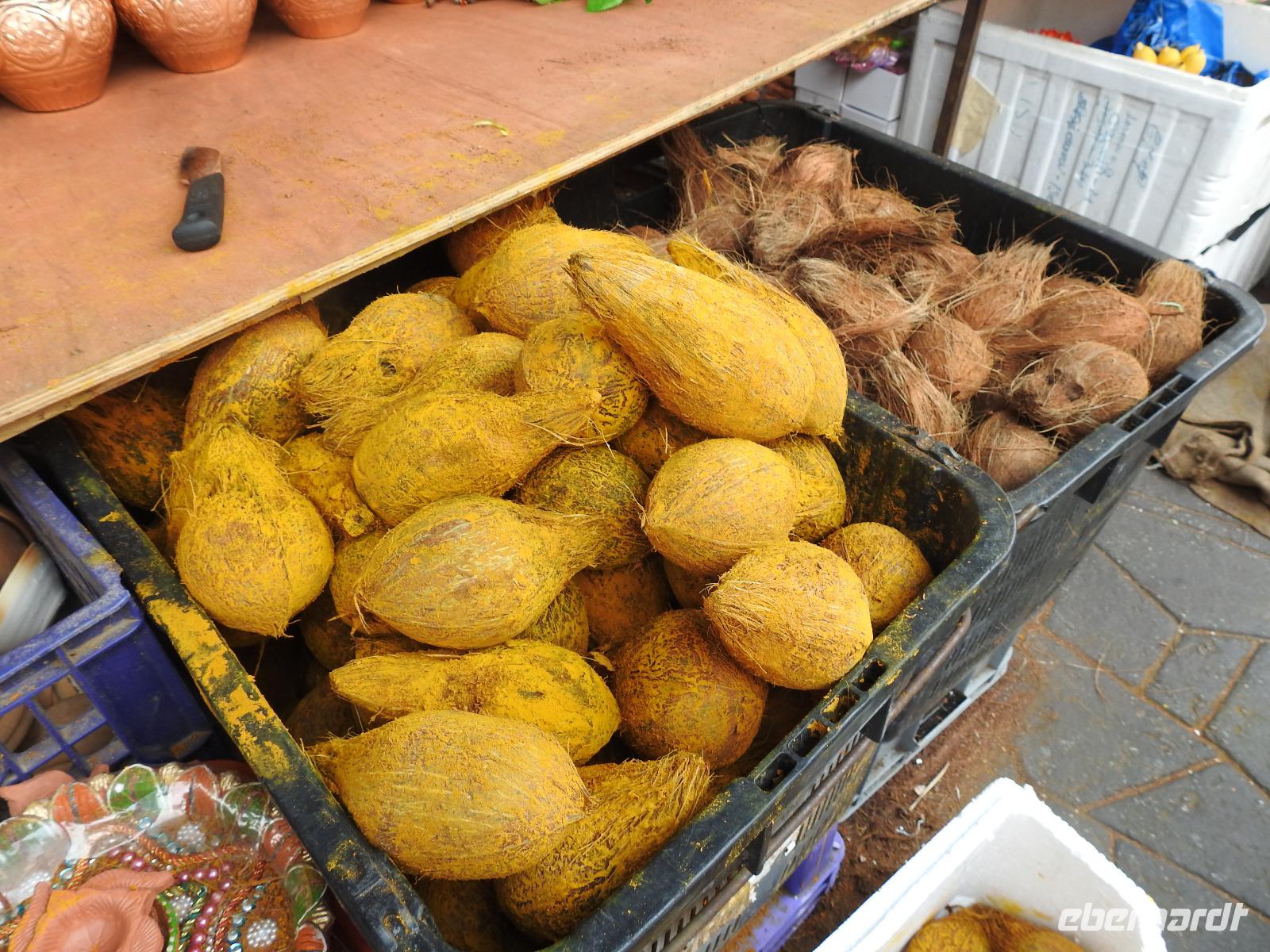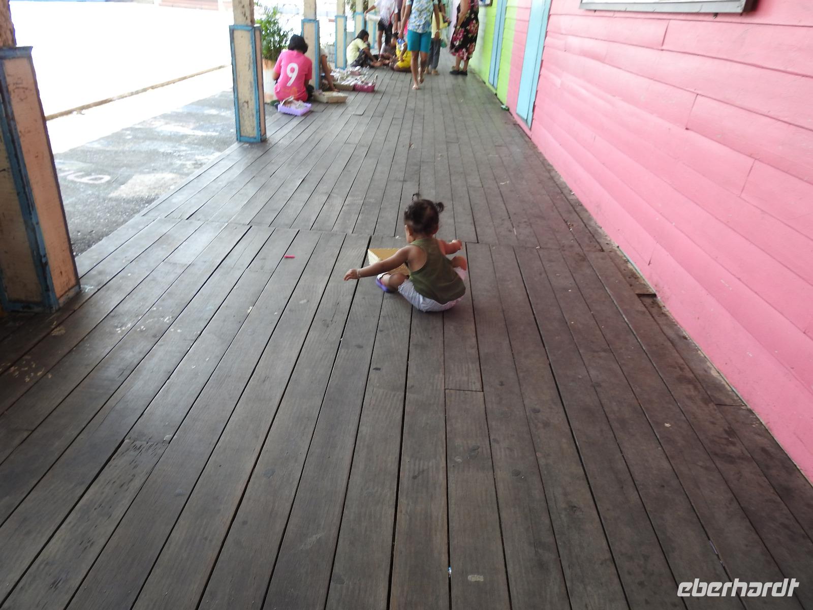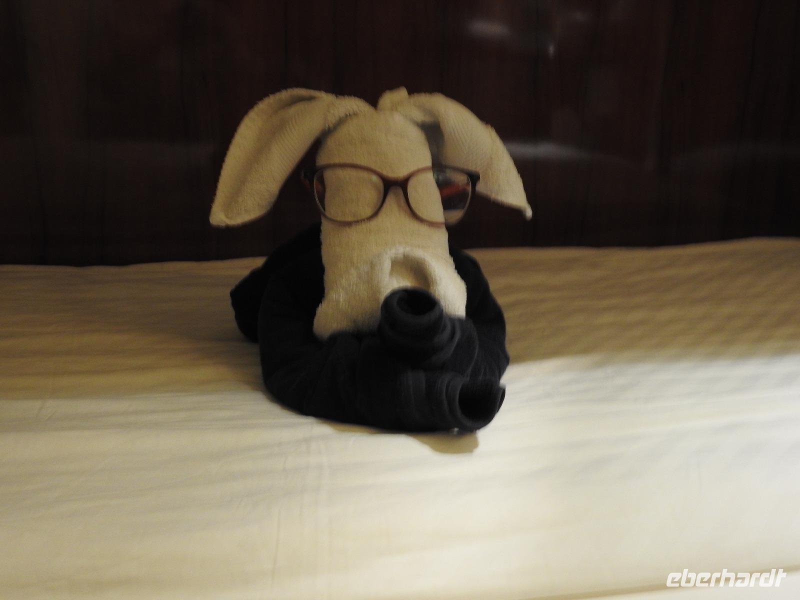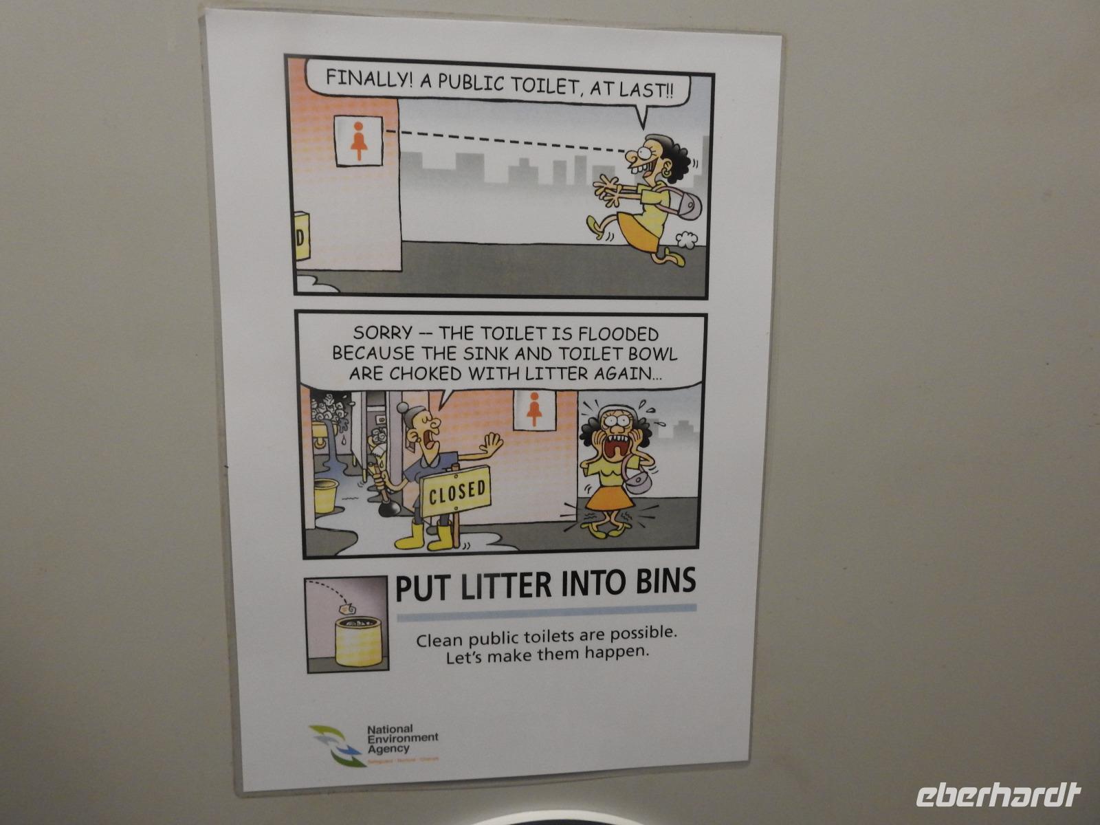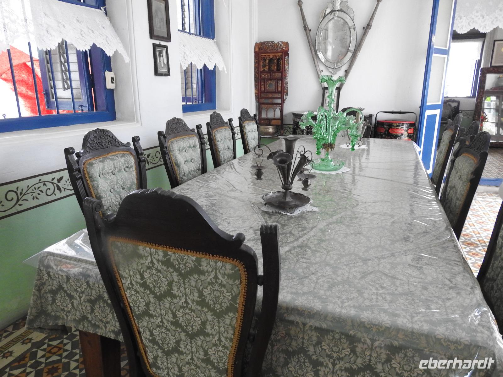Wir haben uns verabredet, um Acht gemeinsam zu frühstücken. Und so machen wir es auch. Der österreichische Hotelmanager schaut etwas kritisch auf unser Eberhardt-Schild, denn beim Frühstück gibt es freie Platzwahl und man darf nichts reservieren. Gut. Erstens haben wir nichts reserviert, das Schild kam erst mit uns gemeinsam auf den Tisch und zweitens ist ringsum Platz, also lassen wir uns nicht beeindrucken. Das Frühstückbuffet ist reich von Köstlichkeiten. Verschieden Brot- und Brötchensorten, Wurst, Käse, Lachs und Shrimps Cocktail, Eier gekocht und gerührt oder frisch gebraten, Obst und vieles mehr. Da fällt die Auswahl schwer. Nach dem Frühstück gibt es eine Stunde Freizeit, mehr nicht. Warum? Na, um Zehn ist die zweite Sicherheitsübung und anschließend wird die Crew vorgestellt. Der Kapitän hält eine freundliche Rede und anschließend übernimmt die Kreuzfahrtdirektorin Monika aus Brasilien die Regie. So sind wir bis Elf beschäftigt. In der Piano-Bar setzen wir uns nun zusammen, um den Ausflug am Nachmittag zu besprechen. Halb zwölf gibt es die Einweisung für Tauchinteressenten, parallel das Mittagsbuffet. Auch hier lässt der Koch sich nicht lumpen. Von der Vorsuppe über Salatbuffet, vier Hauptspeisen und Obst oder Süßes zum Nachtisch, es gibt alles, was das Herz begehrt. 13.30 Uhr treten wir an zum Ausflug. Wir haben uns für das HISTORISCHE MALAKKA entschieden. Über eine wacklige Gangway (wir liegen auf Reede) hangeln wir uns ins Tenderboot. Ca. zehn Minuten sind es bis zum Land. Dort erwartet uns ein Reisebus, der uns mit weiteren 37 Gästen in ca. 10 Minuten zum Stadtzentrum bringt. Hier beginnt unsere Stadtbesichtigung. Wir befinden uns in der ältesten Stadt Malaysias, die ca. 181.000 Einwohner hat. Schon vom Busfenster aus, ist zu sehen, dass kunterbunte Rikschas hier das Stadtbild bestimmen. Später stellen wir fest, dass aus den Rikschas auch noch ohrenbetäubende Musik erklingt. Ab dem Santiago Tor, das zu den Überresten einer portugiesischen Festung gehört, gehen wir zu Fuß. Es sind schlappe 31 Grad. Unser junger Guide ist nicht zu bremsen. Er erklärt sowohl in Deutsch als auch in Englisch, alles was er über die Geschichte der Stadt weiß und was wir wissen müssen. Und das ist nicht wenig. Während die Englisch sprachigen Gäste ihre Informationen bekommen, haben wir Zeit, die Gebäude in der Nachbarschaft ins Auge bzw. vor die Linse zu nehmen. Links vom Santiago Tor befindet sich das Bastionshaus und rechts die Memorial Hall. Wenn wir Zeit hätten, könnten wir, ohne Eintritt zu bezahlen, hier die Dokumentation von Malaysias Weg zur Unabhängigkeit besichtigen, wozu Urkunden, Verträge, Karten usw. gehören. Wir aber erklimmen den St. Pauls Hügel, wofür wir 150 Treppenstufen bewältigen müssen, die direkt vom Santiago Tor hinaufführen. Auf dem Hügel befindet sich die gleichnamige (und erste) katholische Kirche der Stadt. Hier begruben die Holländer ihre Adligen. Die beeindruckenden Grabplatten sind heute noch zu besichtigen. Vom St. Pauls Hügel steigen wir hinab und kommen zum holländischen Stadthys, das vermutlich 1650 erbaut wurde und damals Sitz der holländischen Gouverneure war. Heute befindet sich hier ein Geschichtsmuseum. Nebenbei bemerkt gibt es in Malakka 30 Museen. Am holländischen Platz finden sich außerdem Zeugnisse der britischen Herrschaft, ein Uhrturm und der Victoria-Brunnen. Durch die Jong-Street gelangen wir zur Straße der Harmonie, die deshalb so heißt, weil sich hier in einer Reihe, eine Moschee, eine christliche Kirche und ein chinesischer Tempel befinden. Den Chen-Hoon-Teng Tempel besichtigen wir auch von Innen. Schöne Holzschnitzereien sind hier zu bewundern und es riecht nach Räucherstäbchen. In einer Nebenstraße nähert sich eine Prozession mit Drachentanz, aber wir haben keine Zeit und dürfen nicht bleiben, um zu schauen. Wir begeben und zum Baba Nyonya Museum, das sich in einem privaten Wohnhaus einer Familie der Nyonyas befindet, weswegen auch das Fotografieren verboten ist. Die Nyonya sind eine eigene Bevölkerungsgruppe, die sich aus der Verheiratung von malayischen Frauen und chinesischen Männern entwickelt hat. Den Abschluss unserer Stadtbesichtigung bildet eine Bootsfahrt auf dem Melaka-Fluss, bei der wir nochmal einen Blick auf die bunt angestrichenen Häuser haben und vor allem Leguane unsere Aufmerksamkeit erregen. Mit vier Gästen Verlust (natürlich nicht von unserer Gruppe) erreichen wir schließlich das letzte Tenderboot, das um 17.30 Uhr zur Star Clipper fährt. Um 18 Uhr verlassen wir Malakka und nehmen Kurs auf Langkawi. Nach einem üppigen Abendessen kann man entweder die bordeigene Modenschau besuchen oder sich aufs Ohr legen. Gute Nacht, ihr Lieben, bis Morgen!