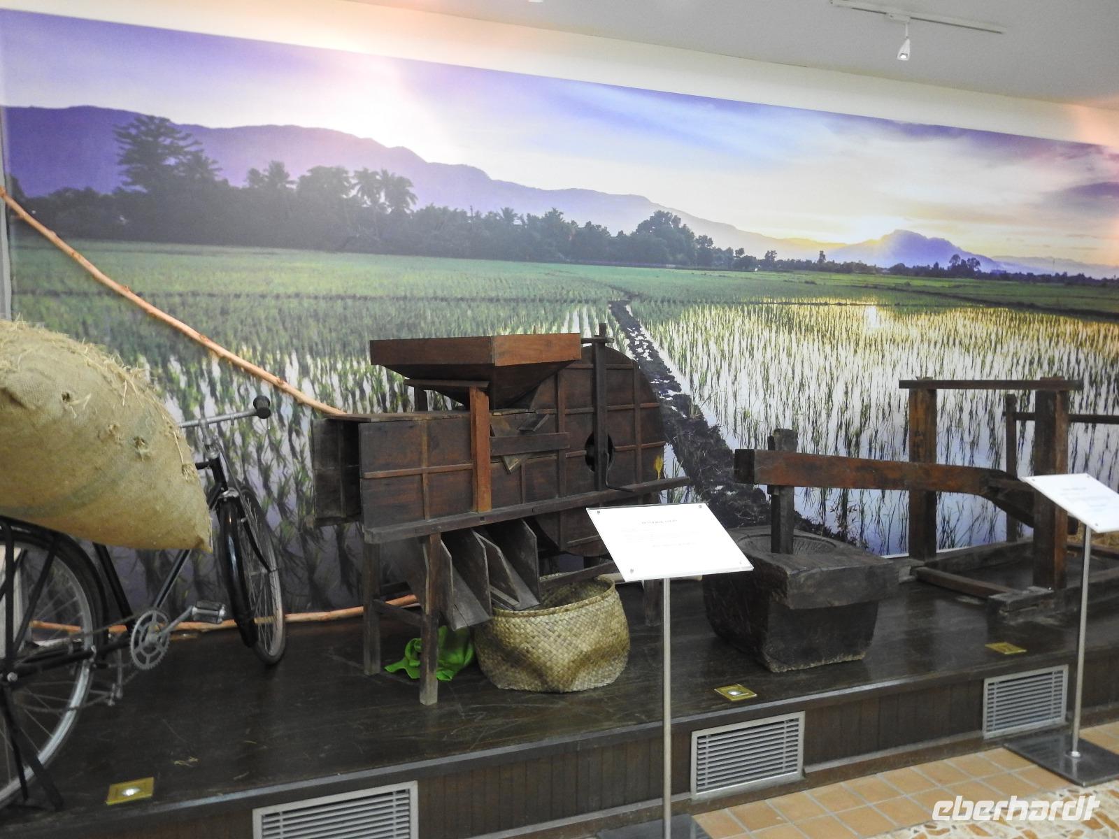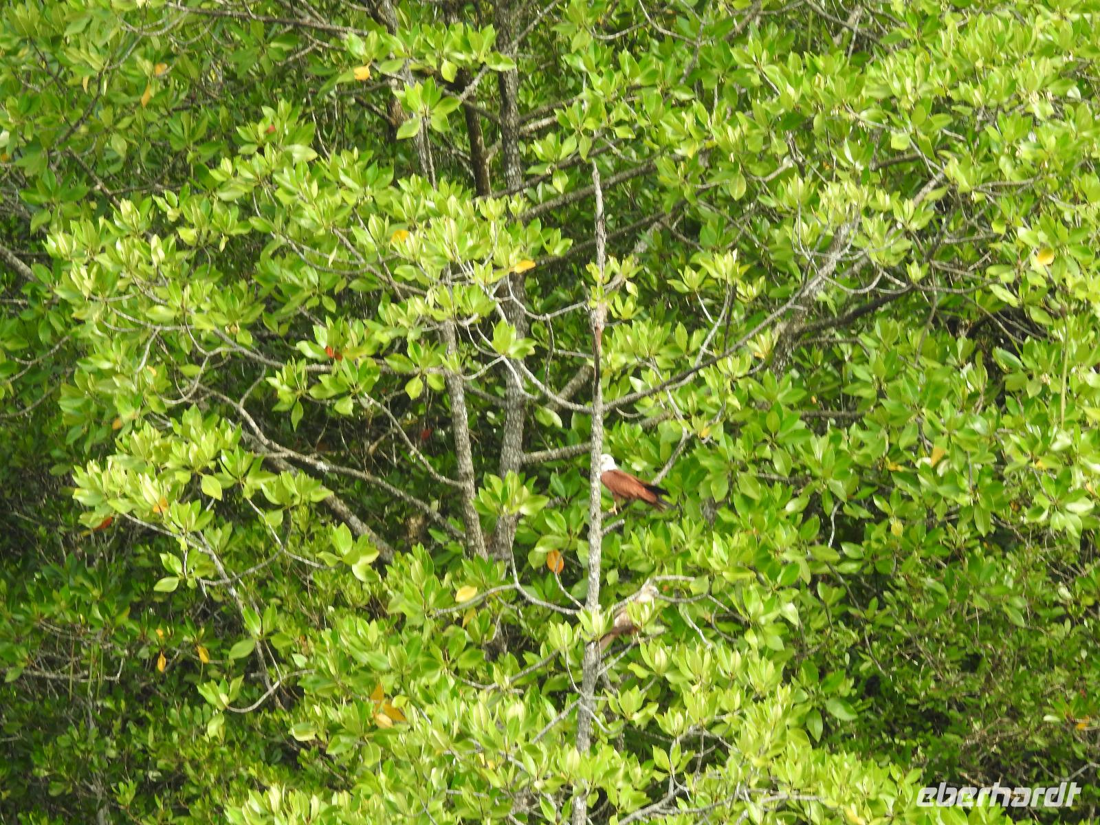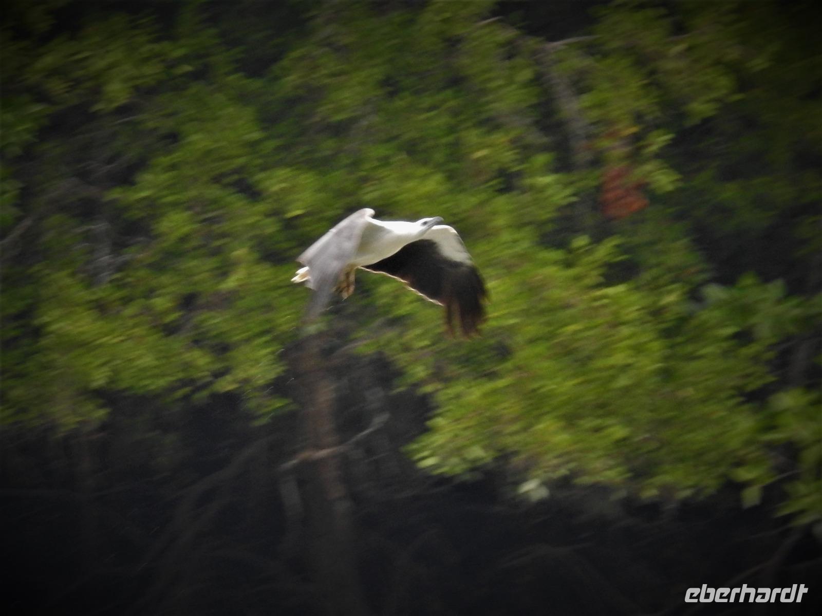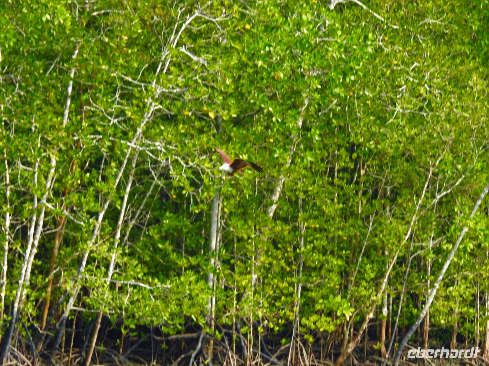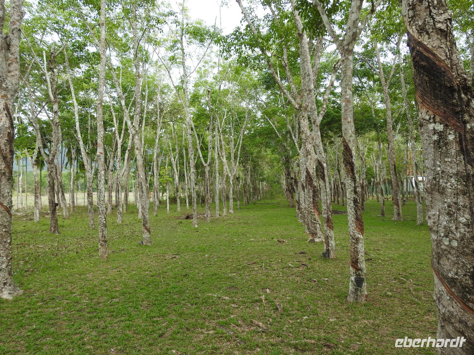 Pünktlich um acht legen wir in Langkawi an. Wir haben heute alle den selben Ausflug gebucht, wir nehmen an der Inselrundfahrt teil. Unser örtlicher Guide ist ein Deutscher namens Josef. Wir fahren eine knappe Stunde im klimatisierten Reisebus bis zu einem Mangrovenwald, wo wir in ein Schnellboot umsteigen. Da im Boot nicht für alle Gäste Platz ist, gelingt es uns, für unser kleines Grüppchen ein eigenes Boot zu kapern. So haben wir viel Platz und Spaß. Unser Bootsführer hat ebenfalls Spaß, indem er mit uns rasante Kurven fährt. Erst nach einer Weile wird es ruhiger und dann bleiben die Boote ganz stehen. Oh, jetzt wissen wir auch warum. In dieser Bucht sind die Seeadler unterwegs. Nach diesen ist auch die Insel benannt (Lang = Adler, Kawi = weiß-braun). Wir haben viel Zeit, die schönen Vögel zu beobachten, wie sie ihre Schwingen strecken und auf der Suche nach Futter ins Wasser eintauchen. Nach etwa einer Stunde sind wir zurück am Ausgangspunkt. Man kann die Toiletten hier aufsuchen, muss aber mit anderen, als europäischen Gepflogenheiten zurechtkommen. Unseren nächsten Stopp legen wir bei den schwimmenden Häusern ein. Hier befindet sich eine Fischfarm, wo üblicherweise Fisch verkauft wird, inzwischen aber auch Touristen seltene Fische gezeigt werden. Wir beginnen mit einem Rochen, der sich durch das Plätschern der Hand unseres Vorführers angezogen fühlt und zeigt. Nun kommt etwas sehr Ungewöhnliches. Eine Art Krebs, der aussieht wie aus einem Sience Fiction Film. Oder wie ein Tier aus der Urzeit, so soll es wohl auch sein. Anschließend wird es lustig. Wir lernen eine Fischart kennen, die ihr Futter (Insekten) von Blätter spucken kann. In unserem Fall sind es Brotstückchen, die unser Vorführer an die Bohlen klebt. Und tatsächlich dauert es nicht lange und die Fische spucken so gezielt, dass das Brotstückchen ins Wasser fällt. Genial. Wir besuchen eine Familie, die noch auf traditionelle Weise Kautschuk aus Kautschukbäumen gewinnt. Die Dame des Hauses zeigt uns, wie sie mit einem spitzen Gerät, spiralförmige Rillen in den Baum schneidet, aus dem das weiße Kautschuk in darunter stehende Becherchen läuft. Zum Mittagessen kehren wir in ein Thai-Malayisches Restaurant ein. Hier werden wir regelrecht gefüttert. Es gibt so viele leckere Speisen, dass wir gar nicht alles aufessen können. Auf dem Rückweg besuchen wir ein Mausoleum für eine malayische Prinzessin und ein Reismuseum. Die Sage über die verehrte malayische Prinzessin besagt, dass diese, aus Neid von anderen Frauen des Ehebruchs bezichtigt und deshalb zum Tode verurteilt wurde. Einige Versuche, sieumzubringen scheiterten und schließlich wurde sie erdolcht. Das aus der Wunde austretende Blut hatte eine weiße Farbe, was die Unschuld der Frau bewies. Diese hatte jedoch die Inselbewohner für sieben Generationen verflucht. Zum Glück ist diese Zeit vorbei und den Malaien geht es heutzutage richtig gut. Im Reismuseum gibt es verschiedene Reissorten zu sehen, Reis in unterschiedlichen Wachstumsstadien und viele Geräte, die traditionell für den Reisanbau benötigt wurden. Mit diesen vielen neuen Eindrücken im Gepäck kehren wir zum Schiff zurück. Um 17 Uhr gibt es einen Imbiss und 17.30 Uhr verlassen wir Langkawi und nehmen Kurs auf Thailand.