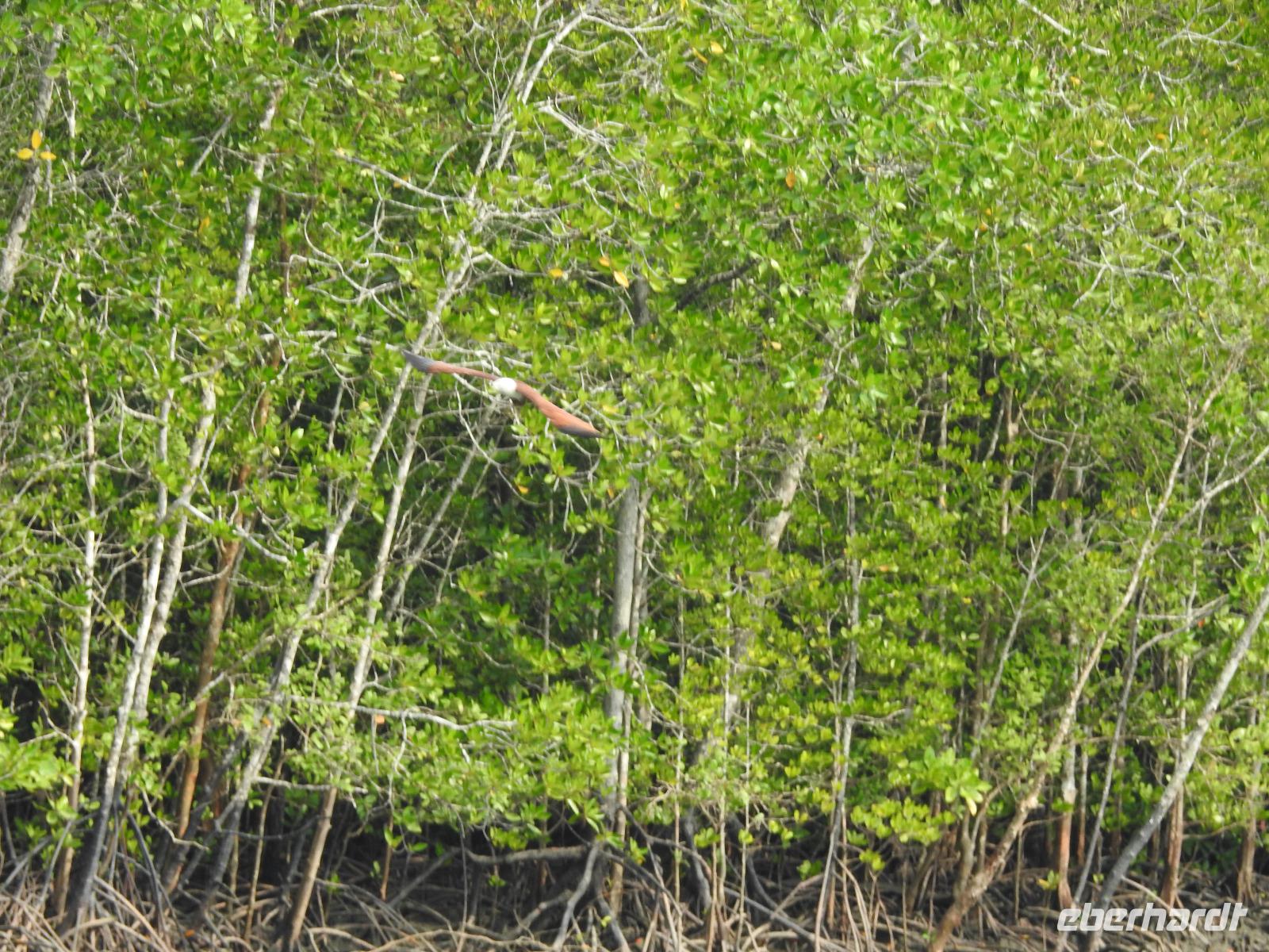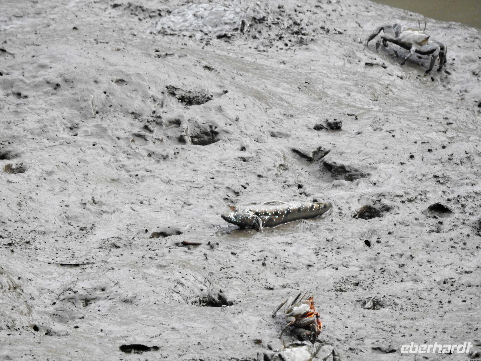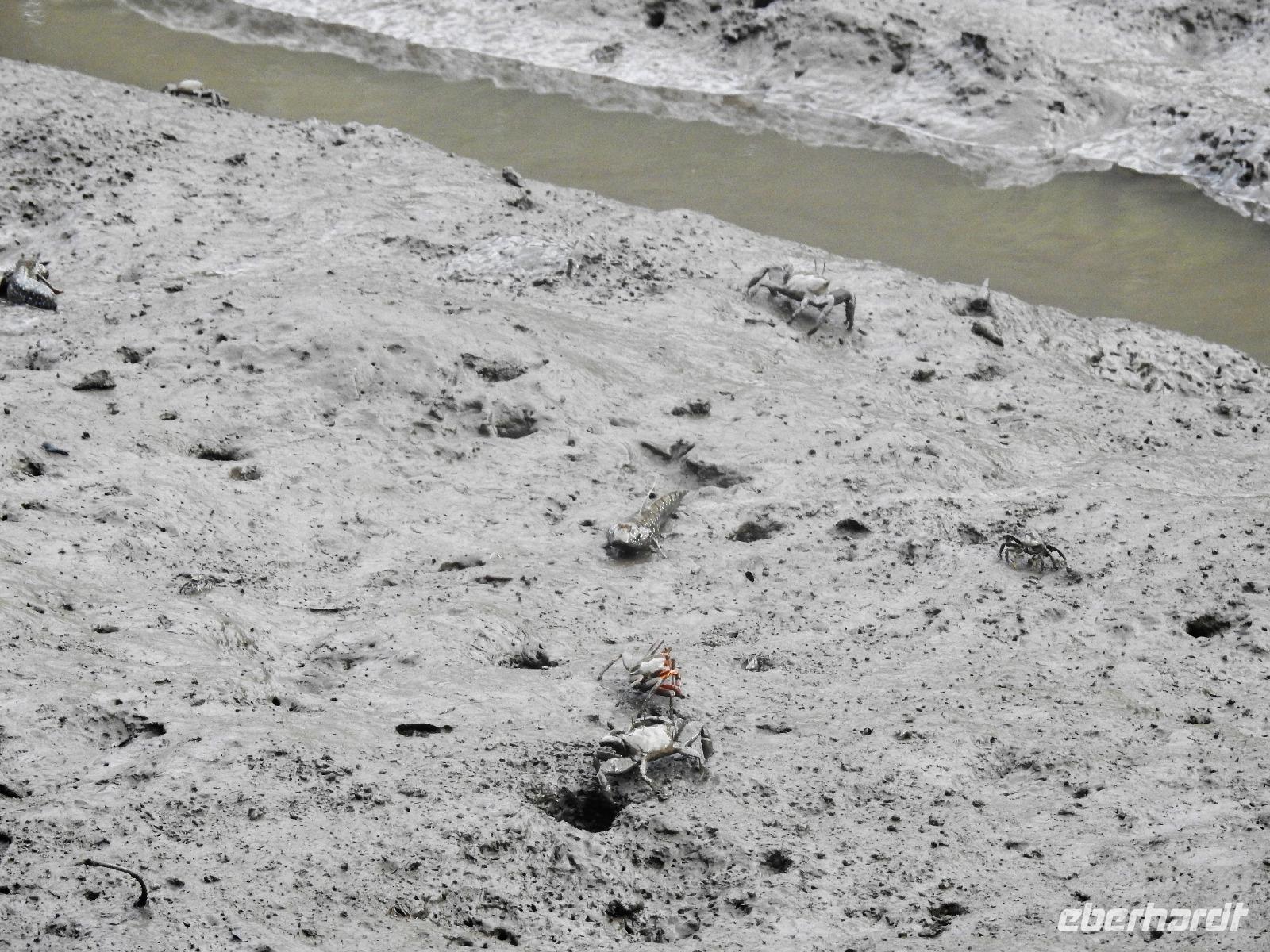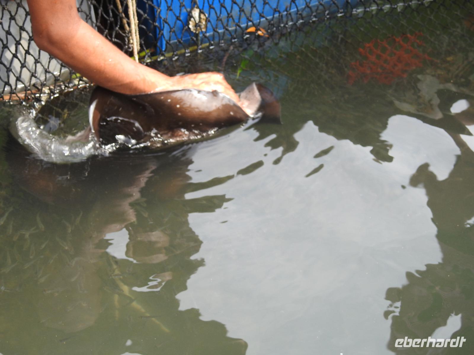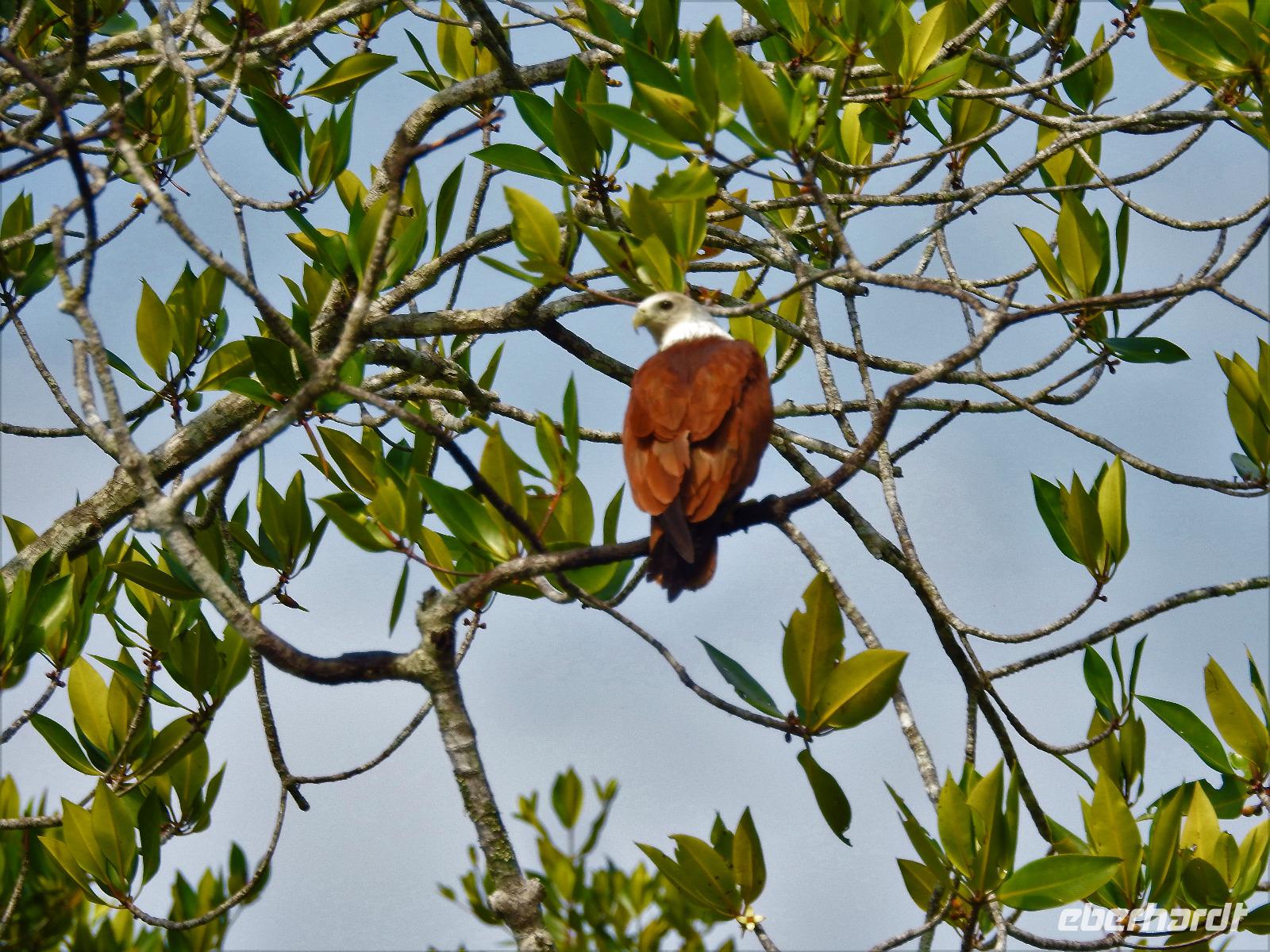 Pünktlich um acht legen wir in Langkawi an. Wir haben heute alle den selben Ausflug gebucht, wir nehmen an der Inselrundfahrt teil. Unser örtlicher Guide ist ein Deutscher namens Josef. Wir fahren eine knappe Stunde im klimatisierten Reisebus bis zu einem Mangrovenwald, wo wir in ein Schnellboot umsteigen. Da im Boot nicht für alle Gäste Platz ist, gelingt es uns, für unser kleines Grüppchen ein eigenes Boot zu kapern. So haben wir viel Platz und Spaß. Unser Bootsführer hat ebenfalls Spaß, indem er mit uns rasante Kurven fährt. Erst nach einer Weile wird es ruhiger und dann bleiben die Boote ganz stehen. Oh, jetzt wissen wir auch warum. In dieser Bucht sind die Seeadler unterwegs. Nach diesen ist auch die Insel benannt (Lang = Adler, Kawi = weiß-braun). Wir haben viel Zeit, die schönen Vögel zu beobachten, wie sie ihre Schwingen strecken und auf der Suche nach Futter ins Wasser eintauchen. Nach etwa einer Stunde sind wir zurück am Ausgangspunkt. Man kann die Toiletten hier aufsuchen, muss aber mit anderen, als europäischen Gepflogenheiten zurechtkommen. Unseren nächsten Stopp legen wir bei den schwimmenden Häusern ein. Hier befindet sich eine Fischfarm, wo üblicherweise Fisch verkauft wird, inzwischen aber auch Touristen seltene Fische gezeigt werden. Wir beginnen mit einem Rochen, der sich durch das Plätschern der Hand unseres Vorführers angezogen fühlt und zeigt. Nun kommt etwas sehr Ungewöhnliches. Eine Art Krebs, der aussieht wie aus einem Sience Fiction Film. Oder wie ein Tier aus der Urzeit, so soll es wohl auch sein. Anschließend wird es lustig. Wir lernen eine Fischart kennen, die ihr Futter (Insekten) von Blätter spucken kann. In unserem Fall sind es Brotstückchen, die unser Vorführer an die Bohlen klebt. Und tatsächlich dauert es nicht lange und die Fische spucken so gezielt, dass das Brotstückchen ins Wasser fällt. Genial. Wir besuchen eine Familie, die noch auf traditionelle Weise Kautschuk aus Kautschukbäumen gewinnt. Die Dame des Hauses zeigt uns, wie sie mit einem spitzen Gerät, spiralförmige Rillen in den Baum schneidet, aus dem das weiße Kautschuk in darunter stehende Becherchen läuft. Zum Mittagessen kehren wir in ein Thai-Malayisches Restaurant ein. Hier werden wir regelrecht gefüttert. Es gibt so viele leckere Speisen, dass wir gar nicht alles aufessen können. Auf dem Rückweg besuchen wir ein Mausoleum für eine malayische Prinzessin und ein Reismuseum. Die Sage über die verehrte malayische Prinzessin besagt, dass diese, aus Neid von anderen Frauen des Ehebruchs bezichtigt und deshalb zum Tode verurteilt wurde. Einige Versuche, sieumzubringen scheiterten und schließlich wurde sie erdolcht. Das aus der Wunde austretende Blut hatte eine weiße Farbe, was die Unschuld der Frau bewies. Diese hatte jedoch die Inselbewohner für sieben Generationen verflucht. Zum Glück ist diese Zeit vorbei und den Malaien geht es heutzutage richtig gut. Im Reismuseum gibt es verschiedene Reissorten zu sehen, Reis in unterschiedlichen Wachstumsstadien und viele Geräte, die traditionell für den Reisanbau benötigt wurden. Mit diesen vielen neuen Eindrücken im Gepäck kehren wir zum Schiff zurück. Um 17 Uhr gibt es einen Imbiss und 17.30 Uhr verlassen wir Langkawi und nehmen Kurs auf Thailand.