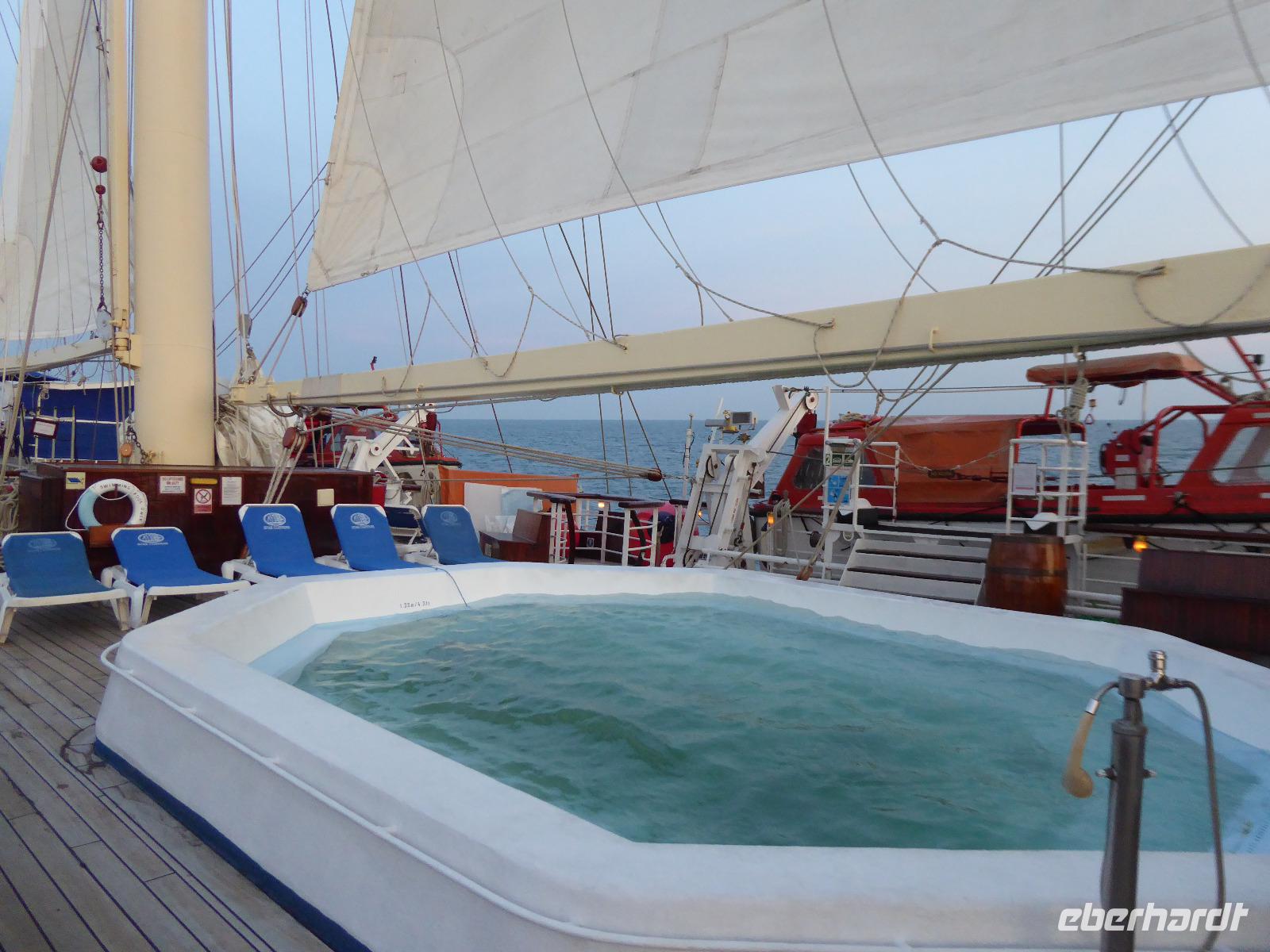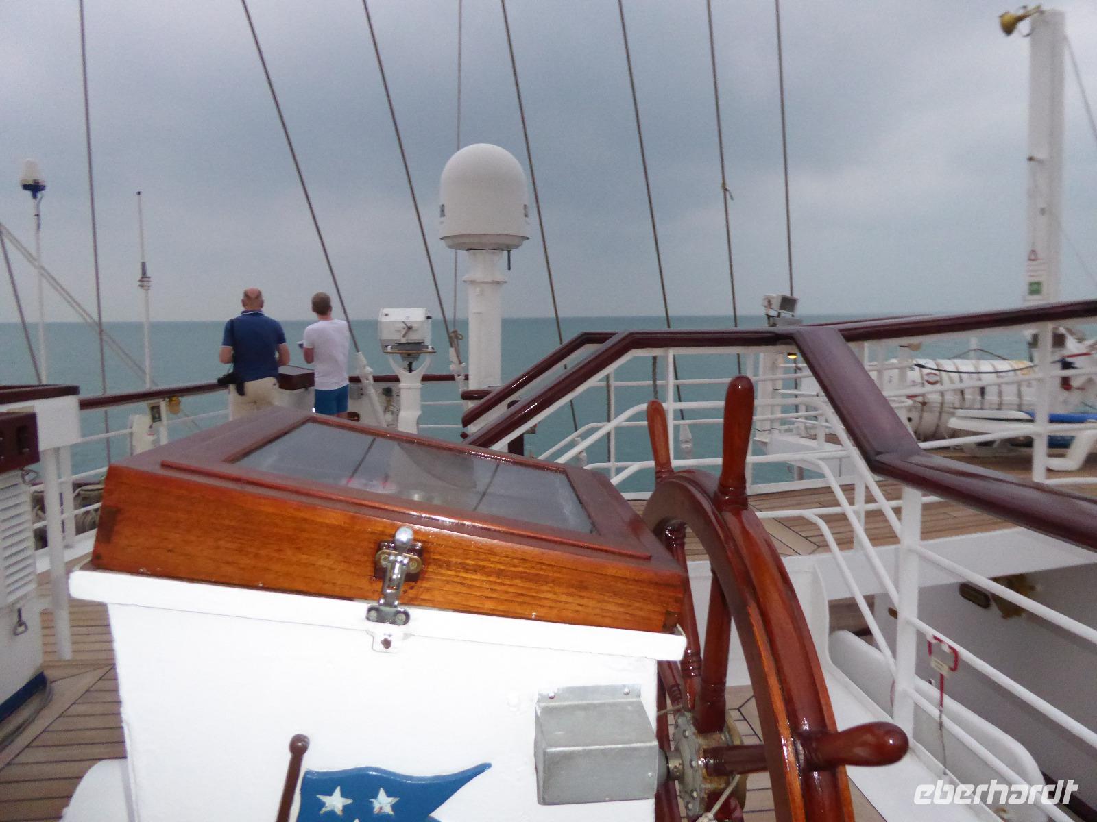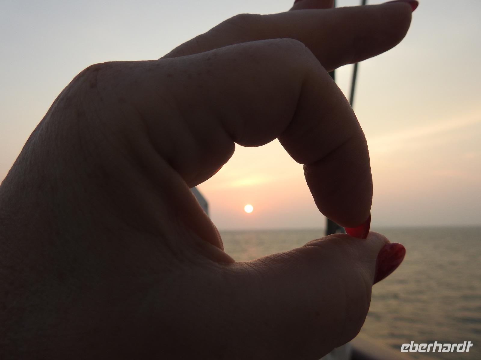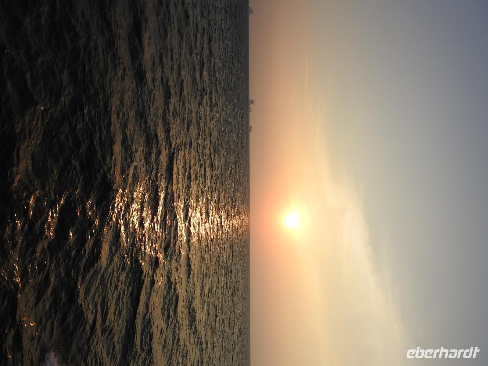 An Seetagen kann man ausschlafen oder aber zum Sonnenaufgang an Deck sein, noch ist es ruhig und es gibt auch schon den ersten Kaffee. Die ganz Aktiven nehmen am Frühsport teil. Aber wir genießen gemeinsam das luxuriöse Frühstücksbuffet. Nun heißt es, aus den ausgeschriebenen Aktivitäten an Bord, das Passende zu finden. Von neun bis zehn besteht die Möglichkeit, einmal an einem Segelmast hinaufzuklettern und von oben übers Meer zu schauen. Die Kreuzfahrtleiterin Monika informiert über den nächsten Hafen Langkawi und den anstehenden Ausflug. Anschließend plaudert der Kapitän aus seinem Leben. Nachmittags können wir lernen, wie man Seemannsknoten knüpft und mit dem Hotelmanager hinter die Kulissen eines Segelschiffes schauen, leider nur in Form einer Präsentation, den auf der Star Clipper darf niemand in die Küche oder ins Lebensmittel-Lager. Die Sportanimateure und die Kinder verkleiden sich heute als Piraten und überfallen uns beim Abendessen. So vergeht der Tag und schon ist es wieder abends, die Sonne versinkt am Horizont und wir lassen uns von den Wellen in den Schlaf schaukeln.