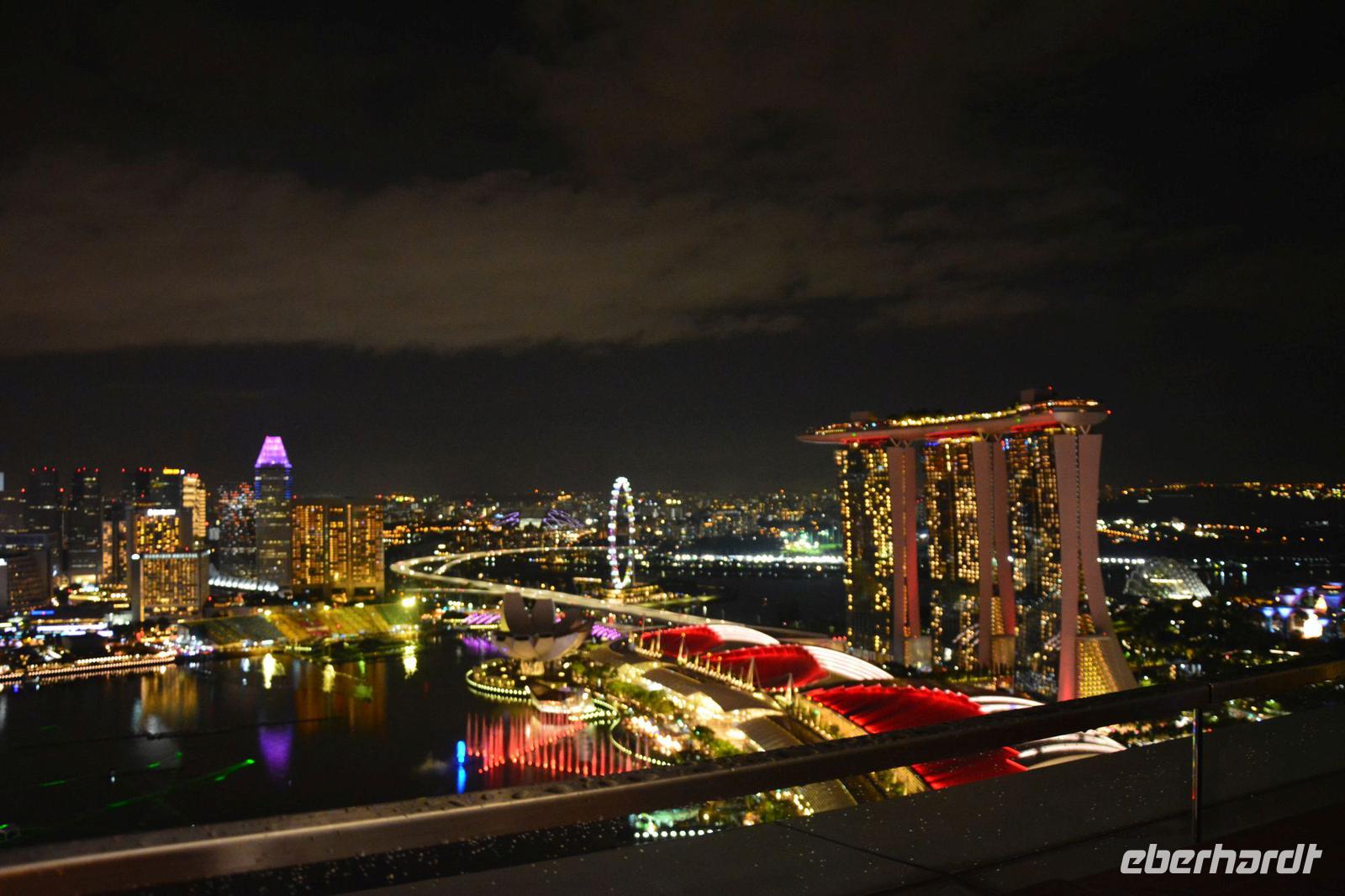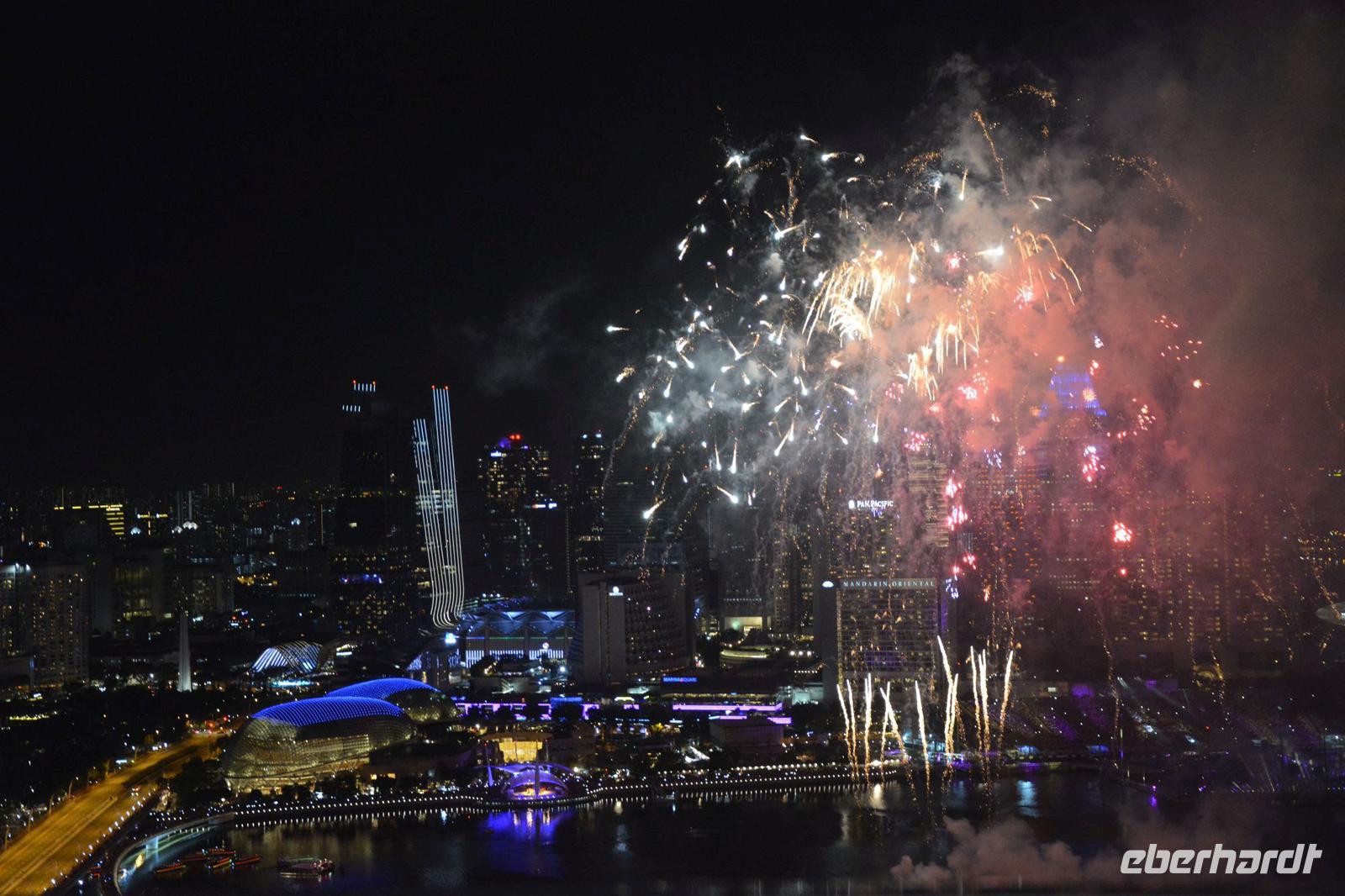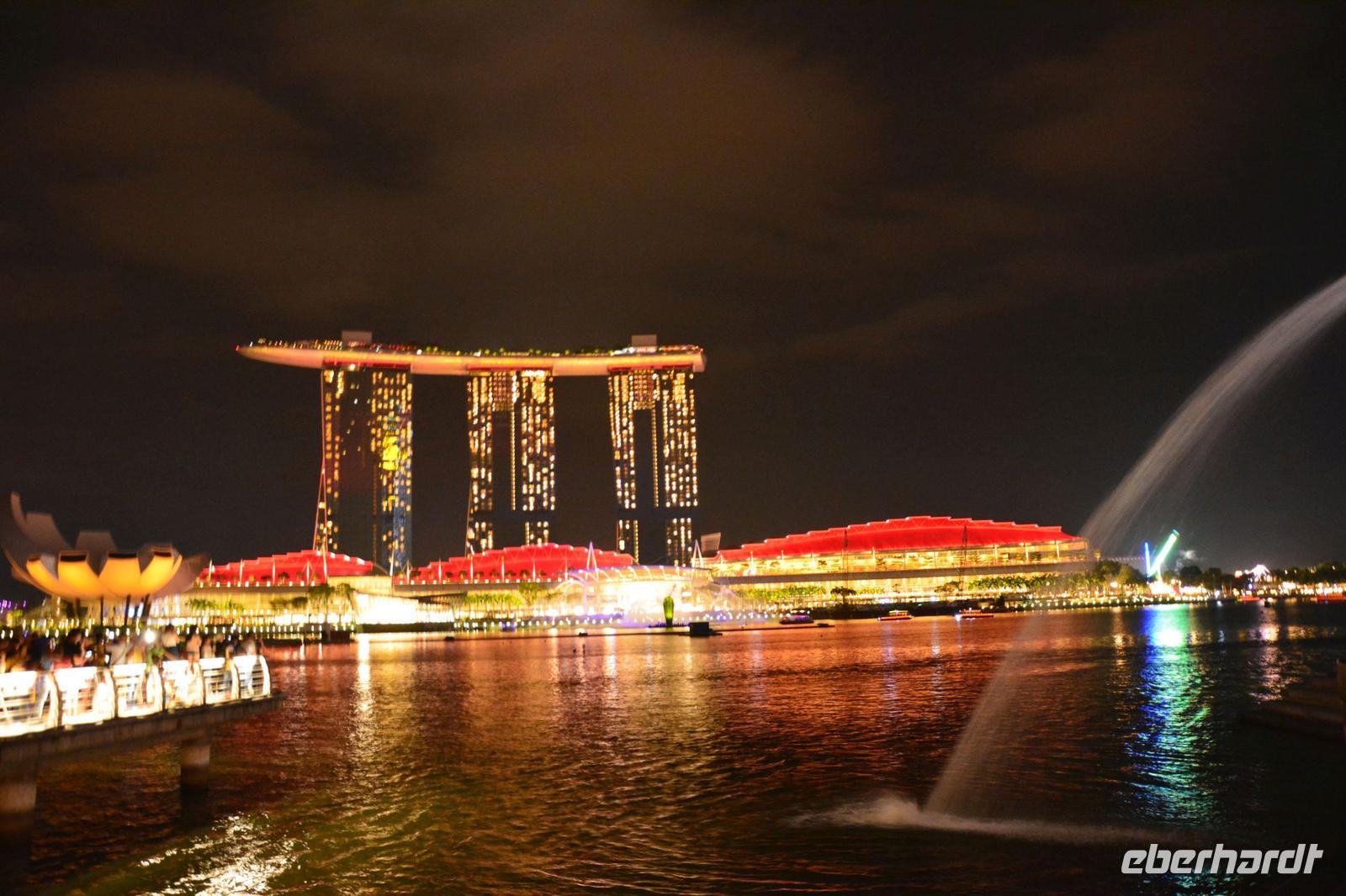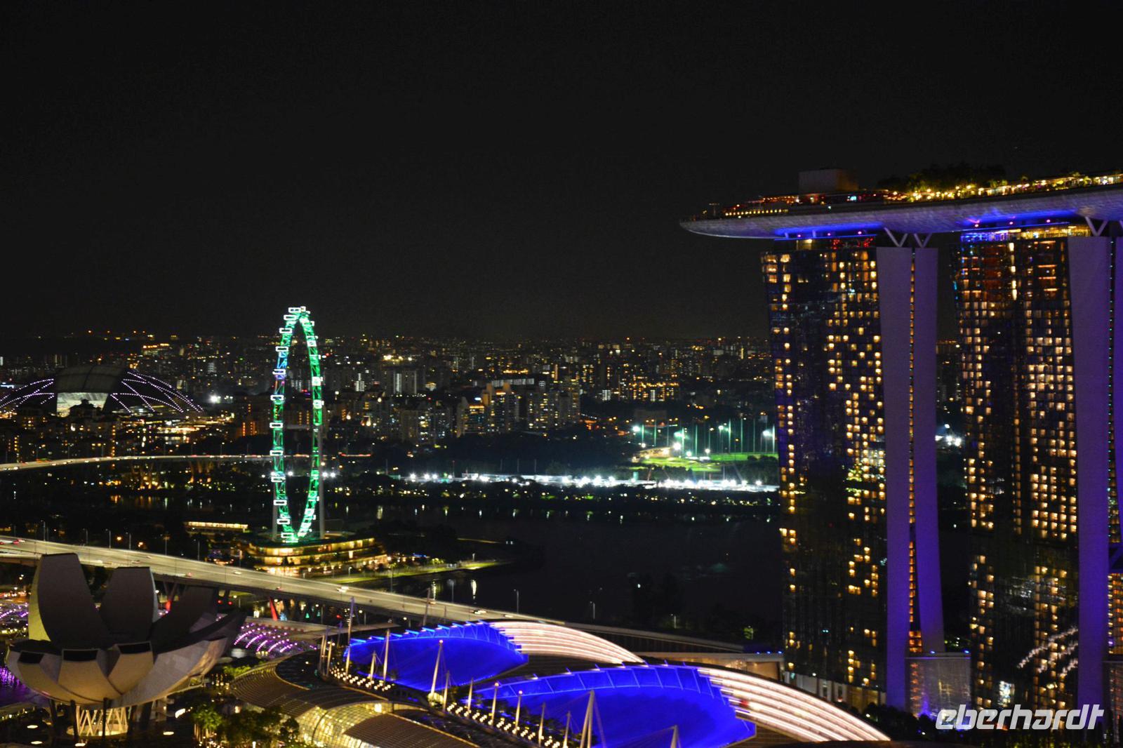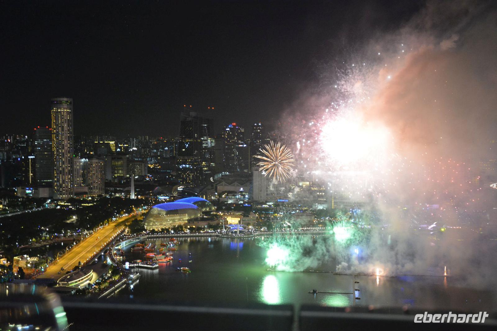 Nach einer berauschenden Silvesterfeier kehrten wir am frühen Morgen des ersten Tages des nächsten Jahres wieder in unser Hotel. Entspannt ließen wir gemeinsam den zeitigen Morgen in der Hotellobby noch ausklingen. Dann war erst einmal Schlafenszeut angesagt. Am Vormittag trafen wir uns dann wieder und setzten unsere Stadterkundung in Singapur fort. Bei der Fahrt mit dem Singapore Flyer konnten wir die fantastische Aussicht auf die Stadt und auf das Meer mit seinen ganzen vor Singapur ankernden Schiffen geniessen. Mit dem Bus ging es dann noch rüber zu dem Marina Bay Sands Hotel. Wir stiegen aus und fuhren mit dem Fahrstuhl hoch auf den Skypark. Von da aus hatte man auch nochmal einen gigantischen Ausblick auf Singapurs Skyline. Danach spazierten wir rüber zu den Garden by the Bay. Der zweite Teil des Botanischen Gartens ist ein 101 Hektar großes Gelände und beherbergen die zwei Glashäuser Flower Dome und Cloud Dome. Doch vorher gingen wir in den Bay Satay. Ein für Teile Asiens typisches Hawker Center, wo verschiedene Essensstände typisches lokales Essen anbieten. Danach gingen wir die beiden Gewächshäuser des Botanischen Gartens besuchen. In beiden Gärten wachsen tausende Pflanzen verschiedener Arten. Im Flower Dome konnte man zudem noch die Weihnachtsausstellung der Disneyfiguren sehen. Im Cloud Dome konnte man den großen Indoor Wasserfall erklimmen. Danach gibg es wieder zurück zum Hotel. Leider zog auch heute wieder ein Gewitter auf und bescherte uns am Abend Regen. Aber einem Spaziergang durch Chinatown für letze Souvenirkäufe oder ein Abendessen in der Clark Quay tat es keinen Abbruch. So ging unser letzter Tag in Singapur zu Ende.