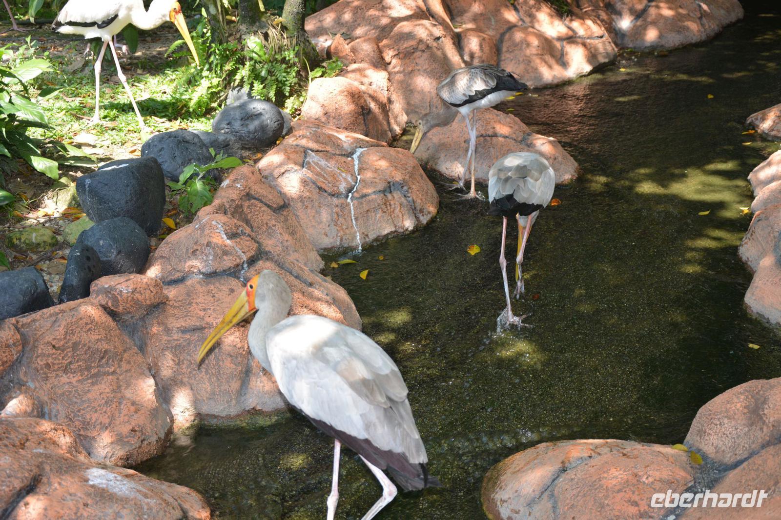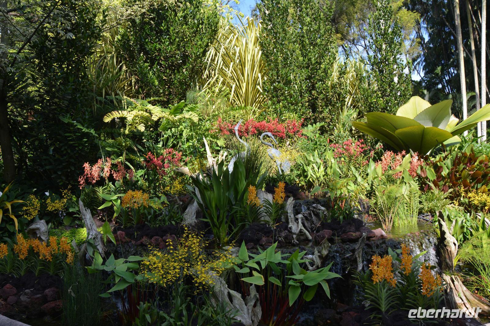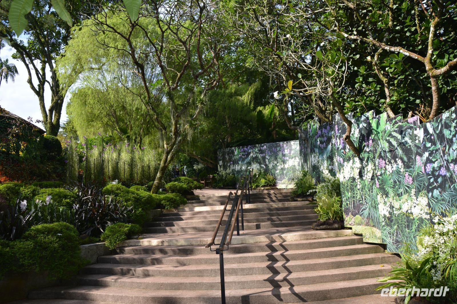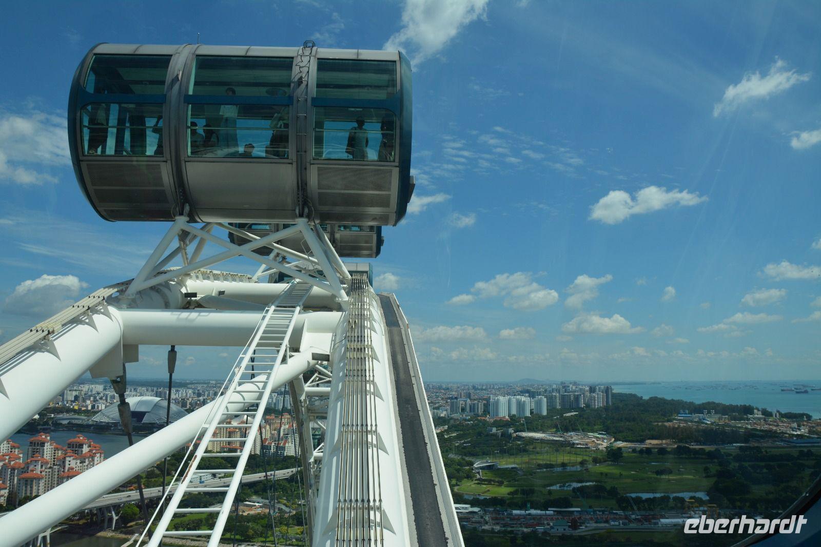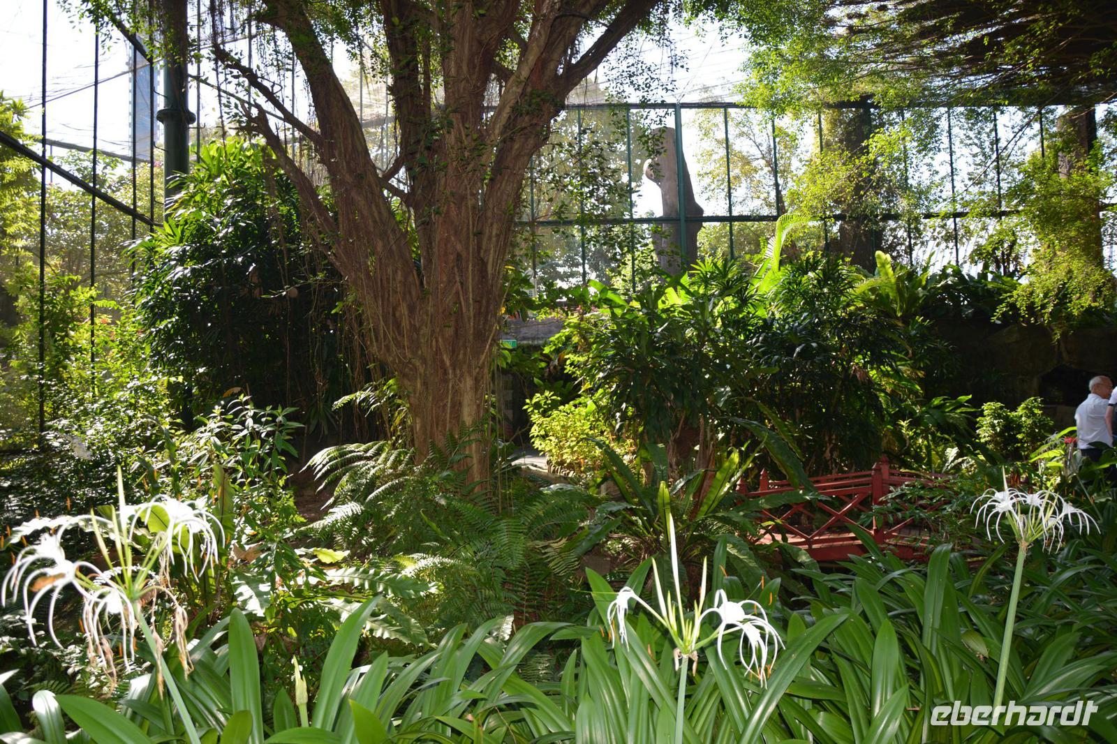 Nach einer berauschenden Silvesterfeier kehrten wir am frühen Morgen des ersten Tages des nächsten Jahres wieder in unser Hotel. Entspannt ließen wir gemeinsam den zeitigen Morgen in der Hotellobby noch ausklingen. Dann war erst einmal Schlafenszeut angesagt. Am Vormittag trafen wir uns dann wieder und setzten unsere Stadterkundung in Singapur fort. Bei der Fahrt mit dem Singapore Flyer konnten wir die fantastische Aussicht auf die Stadt und auf das Meer mit seinen ganzen vor Singapur ankernden Schiffen geniessen. Mit dem Bus ging es dann noch rüber zu dem Marina Bay Sands Hotel. Wir stiegen aus und fuhren mit dem Fahrstuhl hoch auf den Skypark. Von da aus hatte man auch nochmal einen gigantischen Ausblick auf Singapurs Skyline. Danach spazierten wir rüber zu den Garden by the Bay. Der zweite Teil des Botanischen Gartens ist ein 101 Hektar großes Gelände und beherbergen die zwei Glashäuser Flower Dome und Cloud Dome. Doch vorher gingen wir in den Bay Satay. Ein für Teile Asiens typisches Hawker Center, wo verschiedene Essensstände typisches lokales Essen anbieten. Danach gingen wir die beiden Gewächshäuser des Botanischen Gartens besuchen. In beiden Gärten wachsen tausende Pflanzen verschiedener Arten. Im Flower Dome konnte man zudem noch die Weihnachtsausstellung der Disneyfiguren sehen. Im Cloud Dome konnte man den großen Indoor Wasserfall erklimmen. Danach gibg es wieder zurück zum Hotel. Leider zog auch heute wieder ein Gewitter auf und bescherte uns am Abend Regen. Aber einem Spaziergang durch Chinatown für letze Souvenirkäufe oder ein Abendessen in der Clark Quay tat es keinen Abbruch. So ging unser letzter Tag in Singapur zu Ende.