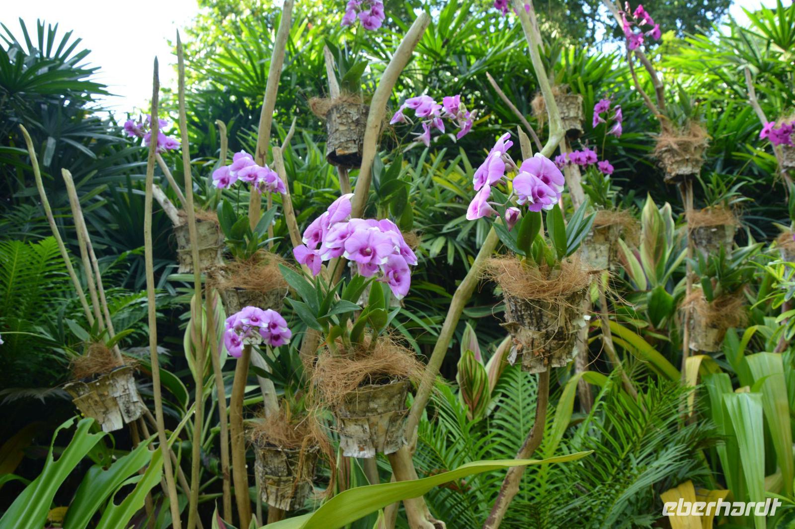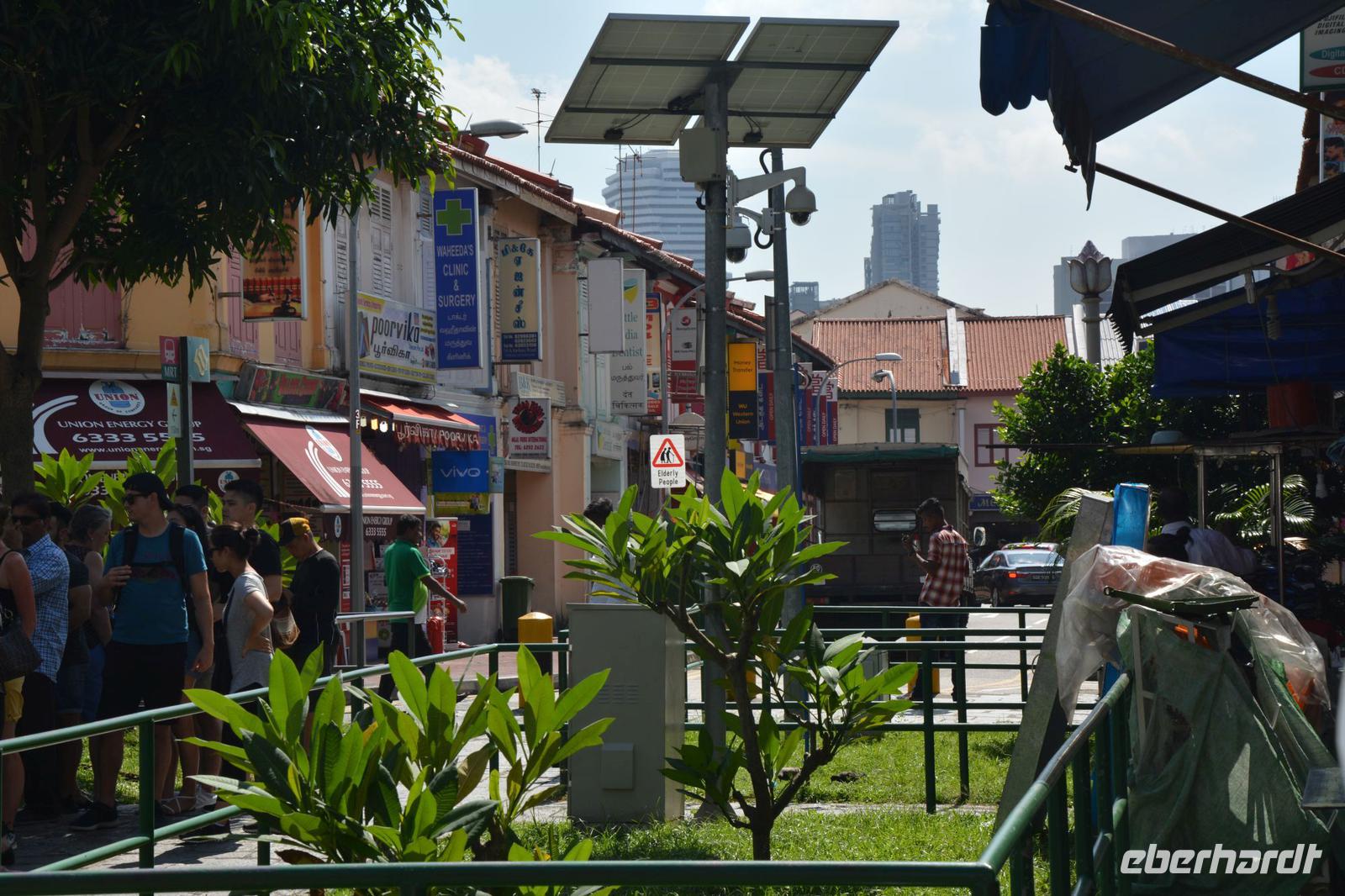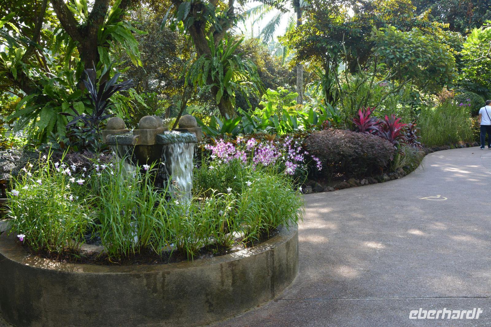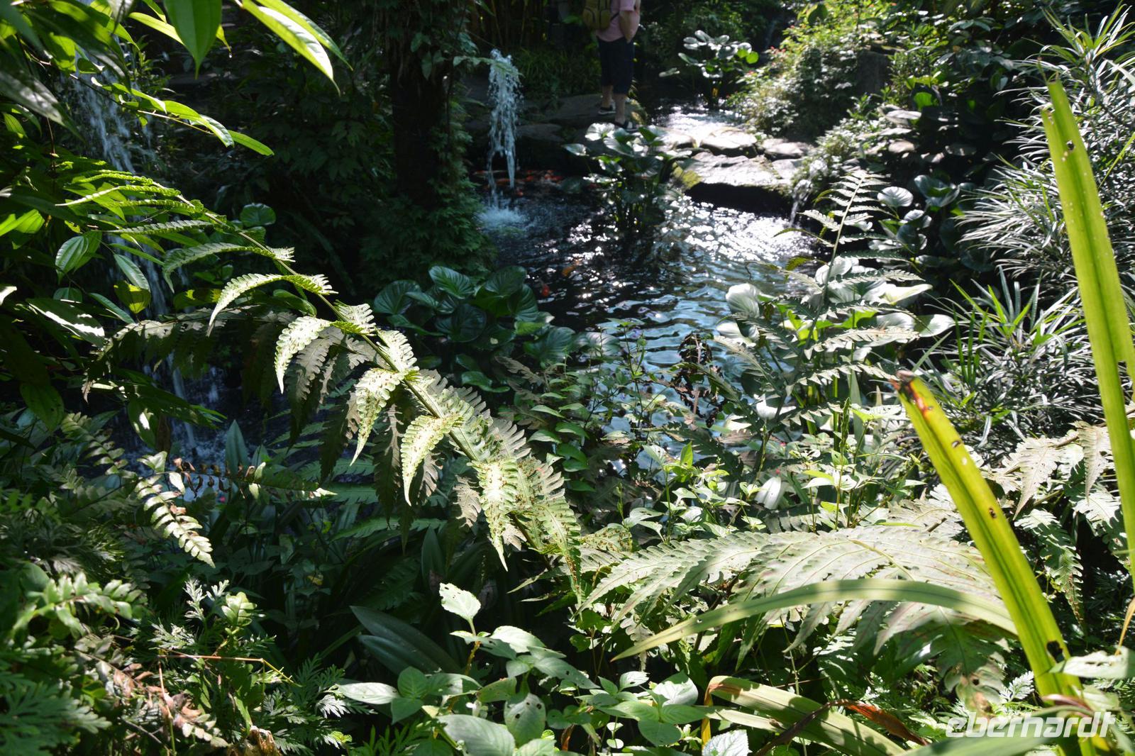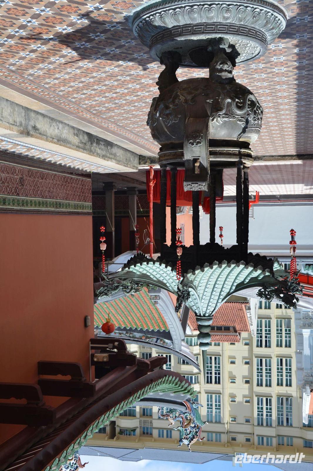 Nach dem Frühstück machten wir uns heute auf Singapur zu erkunden. Von Tan lernten wir über die recht kleine Größe des Stadtstaates. Doch in den Tagen sollten wir sehen, was Singapur so alles zu bieten hat! Unser erstes Ziel des Tages war der Botanische Garten. Im Orchideengarten spazierten wir auf den gepflegten Wegen der wunderschönen Anlage und konnten allerhand Pflanzen und Orchideen in verschiedenen Farben und Formen bewundern. Wir waren sogar im richtigen Moment da, sodass wir einen recht großen Leguan sagen, wie er gemächlich aus dem Gebüsch über den Weg lief und kurze Zeit später auch in so einem wieder verschwand. Nach dem ersten Teil des Botanischen Gartens lernten wir die Stadt kennen. Als erstes führte uns die Fahrt in den Stadtteil Little India. Auf einer der ältesten Straßen, der Serangoon Road steigen wir aus. Dann spazierten wir durch das indische Viertel, vorbei an Händlern, die Gemüse und Obst anboten. Hier lernten wir von uns nich fremden Arten und die verschiedenen Gerüche der angebotenen Waren, Gewürze und Blumengewinden stiegen uns in die Nase. Mit dem Bus ging es anschließend weiter vorbei am bekannten Raffles Hotel, welches aber momentan renoviert wird. Hier wurde in der trotzdem geöffneten Long Bar des Hotels der bekannte Cocktail Singapur Sling erfunden. In der Nähe des Raffles Hotel liegt Singapurs bekannte Orchard Road. Hier lernen wir, dass aufgrund des Platzproblems In Singpaur, viele Geschäfte und ganze Einkaufszentren unterirdisch liegen. Um die Mittagszeit stiegen wir wieder aus dem Bus aus und spazierten zu Singapurs bekanntester Stadtansicht, der Marina Bay. Die Bucht mit dem bekannten Luxushotel Marina Bay Sands, der Statue des Merlion und dem eindrucksvollen Blick auf die Wolkenkratzer des Banken- und Geschäftsviertels sollte uns in den nächsten Tagen zu verschiedenen Tageszeiten und Aussichtspunkten immer wieder beeindrucken. Zum Abschluss stand dann noch Chinatown auf dem Programm. Hier besuchten wir den chinesischer Tempel Thian Hock Keng, erkundeten einen kleinen Teil des Viertels beim Spaziergang zum hinduistischen Tempel Sri Mariamman und weiter zum buddhistischen Tempel.Nach etwas Zeit für individuelle Freizeitgestaltung trafen wir uns abends in unserem Hotel und spazierten entlang des Singapur Flusses zur Marina Bay. Im Dunkeln erstrahlt die Stadt und wir sahen uns eine Lichtershow an, die besonders den Merlion in allerhand Farben und Lichtmustern beleuchten ließ.