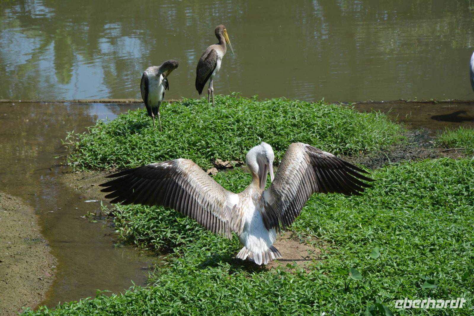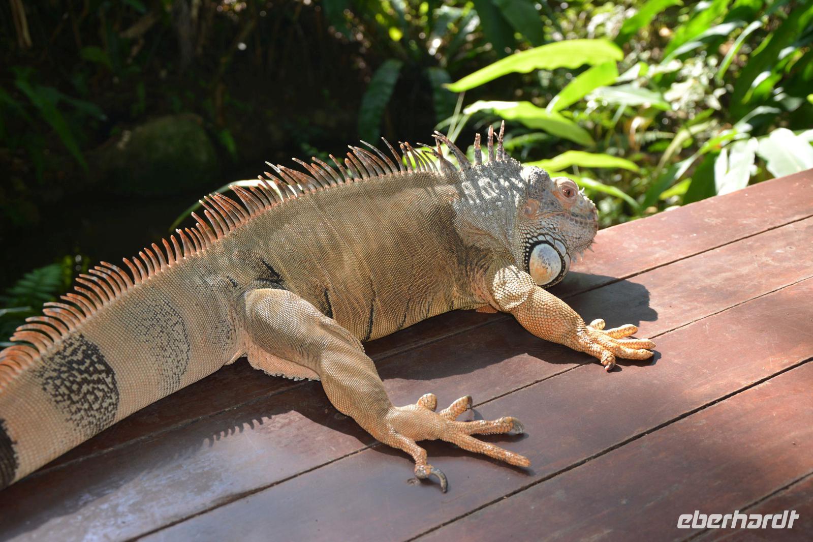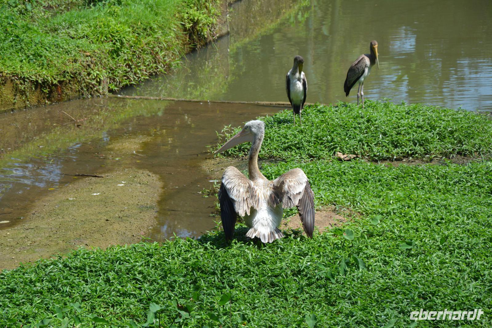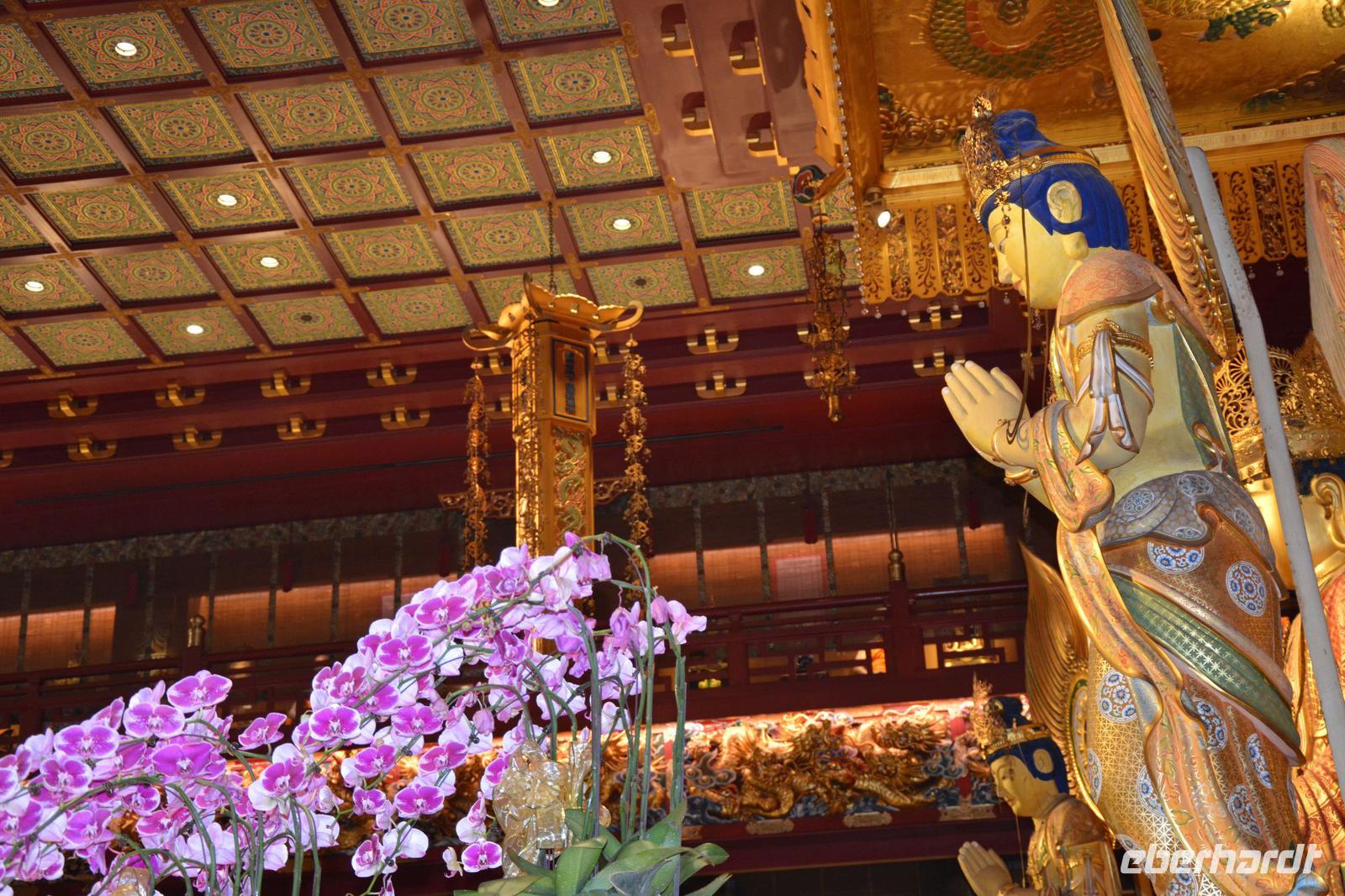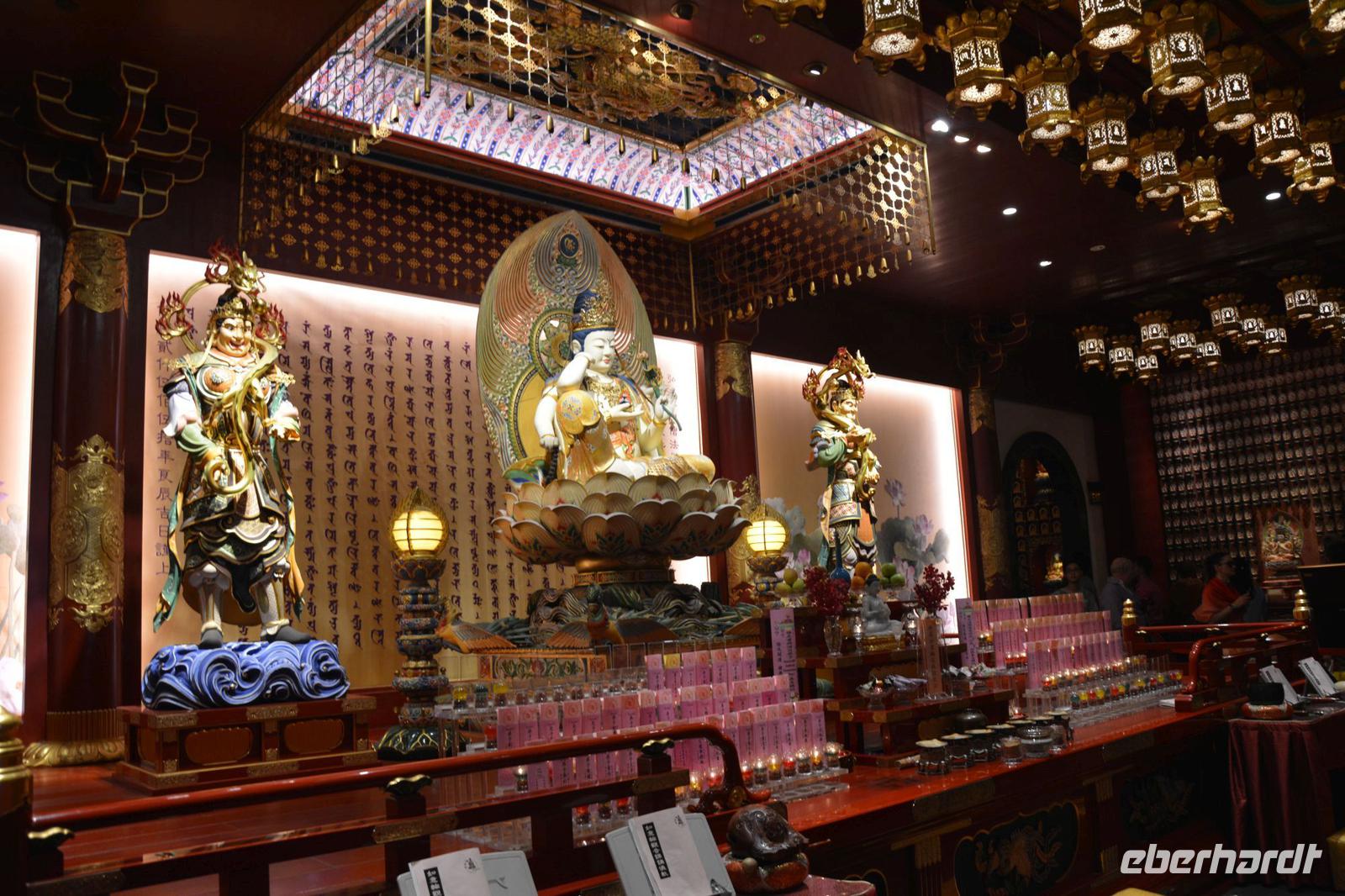 Nach dem Frühstück machten wir uns heute auf Singapur zu erkunden. Von Tan lernten wir über die recht kleine Größe des Stadtstaates. Doch in den Tagen sollten wir sehen, was Singapur so alles zu bieten hat! Unser erstes Ziel des Tages war der Botanische Garten. Im Orchideengarten spazierten wir auf den gepflegten Wegen der wunderschönen Anlage und konnten allerhand Pflanzen und Orchideen in verschiedenen Farben und Formen bewundern. Wir waren sogar im richtigen Moment da, sodass wir einen recht großen Leguan sagen, wie er gemächlich aus dem Gebüsch über den Weg lief und kurze Zeit später auch in so einem wieder verschwand. Nach dem ersten Teil des Botanischen Gartens lernten wir die Stadt kennen. Als erstes führte uns die Fahrt in den Stadtteil Little India. Auf einer der ältesten Straßen, der Serangoon Road steigen wir aus. Dann spazierten wir durch das indische Viertel, vorbei an Händlern, die Gemüse und Obst anboten. Hier lernten wir von uns nich fremden Arten und die verschiedenen Gerüche der angebotenen Waren, Gewürze und Blumengewinden stiegen uns in die Nase. Mit dem Bus ging es anschließend weiter vorbei am bekannten Raffles Hotel, welches aber momentan renoviert wird. Hier wurde in der trotzdem geöffneten Long Bar des Hotels der bekannte Cocktail Singapur Sling erfunden. In der Nähe des Raffles Hotel liegt Singapurs bekannte Orchard Road. Hier lernen wir, dass aufgrund des Platzproblems In Singpaur, viele Geschäfte und ganze Einkaufszentren unterirdisch liegen. Um die Mittagszeit stiegen wir wieder aus dem Bus aus und spazierten zu Singapurs bekanntester Stadtansicht, der Marina Bay. Die Bucht mit dem bekannten Luxushotel Marina Bay Sands, der Statue des Merlion und dem eindrucksvollen Blick auf die Wolkenkratzer des Banken- und Geschäftsviertels sollte uns in den nächsten Tagen zu verschiedenen Tageszeiten und Aussichtspunkten immer wieder beeindrucken. Zum Abschluss stand dann noch Chinatown auf dem Programm. Hier besuchten wir den chinesischer Tempel Thian Hock Keng, erkundeten einen kleinen Teil des Viertels beim Spaziergang zum hinduistischen Tempel Sri Mariamman und weiter zum buddhistischen Tempel.Nach etwas Zeit für individuelle Freizeitgestaltung trafen wir uns abends in unserem Hotel und spazierten entlang des Singapur Flusses zur Marina Bay. Im Dunkeln erstrahlt die Stadt und wir sahen uns eine Lichtershow an, die besonders den Merlion in allerhand Farben und Lichtmustern beleuchten ließ.