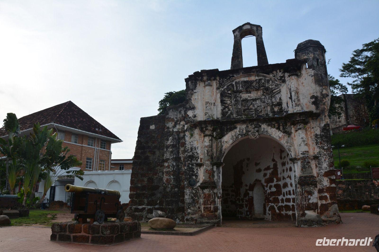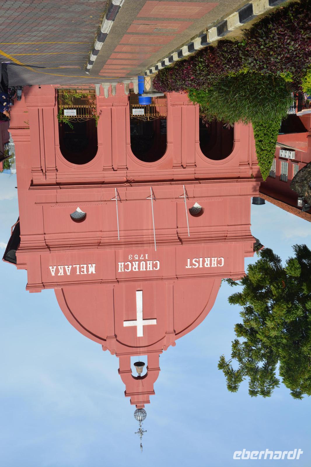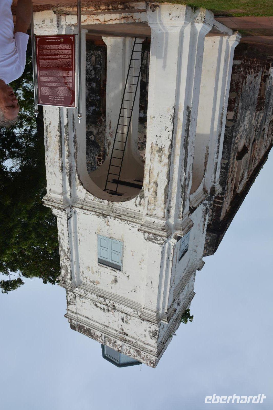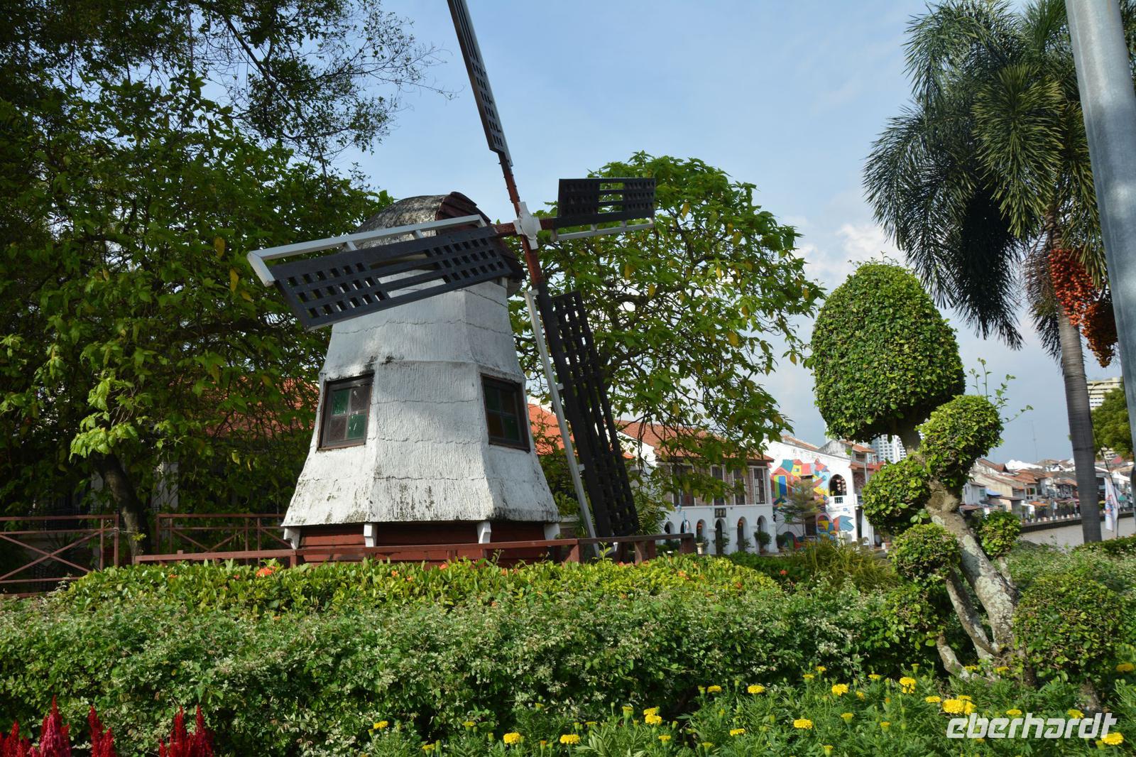 Am sechsten Tag unserer Silvesterreise machten wir uns nach dem Frühstück auf, Singapur zu verlassen und über die Grenze nach Malaysia zu fahren. Nach der offiziellen Ausreise von Singapur und Einreise nach Malaysia hieß es beim Überqueren der Brücke nach Johor Bahru herzlich Willkommen in Malaysia! Wir treffen hier auf unseren neuen Reiseleiter und neuen Busfahrer. Von ihm hörten wir erste Einführungen zu Malaysia und fuhren zunächst durch kargere grüne Landschaft. Nun hieß es gemütlich mit dem Bus gen Norden fahren, um unser nächstes Ziel die Stadt Malakka zu erreichen. Das sanfte Schaukeln des Busses und die Hitze der letzten Tage verleiteten zu einem kleinen Nickerchen. Zwischendurch mal eine Toilettenpause und die Möglichkeit Obst oder Snacks zu kaufen, ging es weiter entlang grüner Palmenplantagen und üppiger Wälder. Nach der Pause war es noch circa eine Stunde bis Malakka. Unser Reiseleiter spricht schon ein wenig über die Stadt und die Veränderungen in Malaysia in den letzten Jahrzehnten. Mit der Zeit sehen wir erste Dörfer und Ansiedlungen, eine Moschee und Reisfelder, ehe wir allmählich Stadtgebiet erreichen. Nach Ankunft in der Stadt hieß es erst einmal Essen, ehe wir uns auf Stadterkundung aufmachten. So kehrten wir in ein Restaurant ein, wo wir die für Malaysia typische Nyonya Küche verkosteten. Diese Küche stellt eine Vermischung von chinesischen Einflüssen der ersten Siedler in Malaysia und malaiischer Küche dar. So gab es Garnelen in Kokosmilch und Ananas, gebratenes Hähnchen, Reis, gedünstetes Gemüse, Hühnchencurry und noch einiges mehr. Gesättigt starteten wir danach unseren Rundgang durch Malakka. Unser Reiseleiter zeigte uns zunächst einen Schuhmacher, wo wir noch die winzigen Schuhe der Frauen zu sehen waren, deren Füße gebunden wurden und deshalb so kleine Schuhe tragen konnten. Danach noch schnell zur Wechselstube, um Malaysische Ringgit zu erhalten und weiter ging es zum Cheng Hoon Tempel. Dies ist ein chinesischer Tempel, übersetzt auch Grüner Wolkentempel, aus braunem Holz mit Goldverzierungen und chinesischen Papierlampen im Hof. Als wir den Tempel besuchten, war gerade eine Gebetszeremonie im Gange. Wir lernten über die Glückbringende Farbe Rot, die Symbolik der goldenen Elemente und lauschten den Erklärungen unseres Reiseleiters, während uns der Geruch der Räucherstäbchen begleitete. Bei der weiteren Erkundung des Tempels hörten wir auch von dem chinesischen Aberglaube in Bezug auf Farben und Zahlen. Weiter ging es über die Straße der Harmonie zur Kampung Kling Moschee. Nach kurzer Besichtigung schallte schon der Ruf des Muezzin durch die Gegend. Wenige Schritte später, waren wir auch schon an einem weiteren Ort der nächsten Religion. Vor dem Hindu Tempel Sri Poyyatha Vinayaga Moorthy Tempel, der momentan geschlossen war, weil gerade keine Gebetszeit ist, lernten wir über die religiöse Praxis der Hindus durch das Schmeißen der Kokosnuss im Behältnis vor dem Tempel. Wir setzten unseren Spaziergang über die bekannte Jonker Street fort zum Roten Platz. Hier beeindruckte uns nicht nur die rote Kirche, sondern auch die bunt geschmückten Rikschas, welche mit lauter Musik durch die Straßen fuhren. Zu Fuß ging es dann noch einen kleinen Hügel hoch zu den Ruinen der St. Pauls Kirche. Die ursprünglich von den Portugiesen im 16. Jahrhundert gebaute Kirche, steht nun als Denkmal auf einem die Stadt überblickenden Hügel. Hinab ging es dann an der ehemaligen portugiesischen Festung A Famosa vorbei zu unserem Bus, der uns schließlich in unser wunderschönes Hotel brachte. Direkt am Malakka Fluss gelegen, ruhten wir uns in unserem Hotel aus oder unternahmen von hier einen kleinen Spaziergang durch die Gassen dieser kleinen, aber charmanten Stadt.