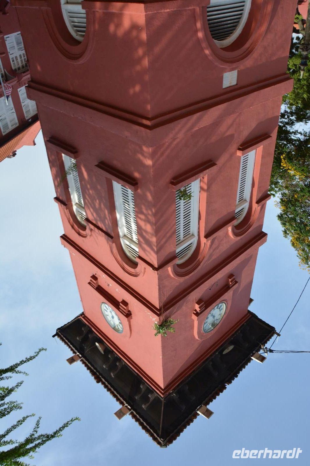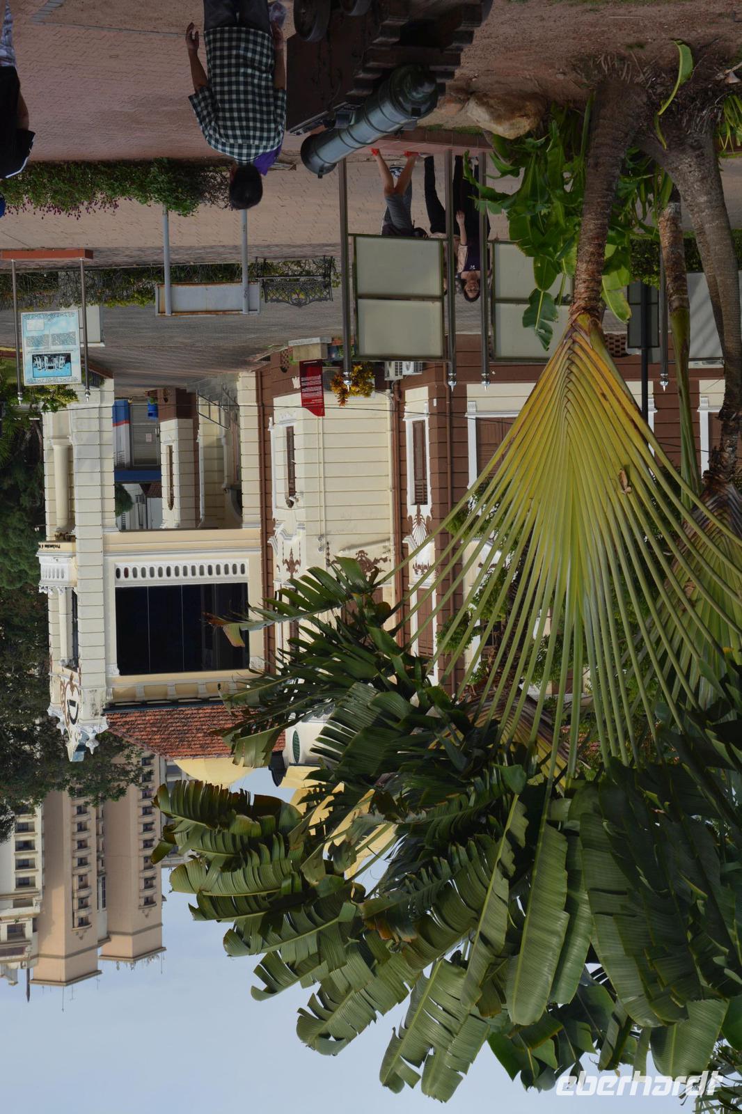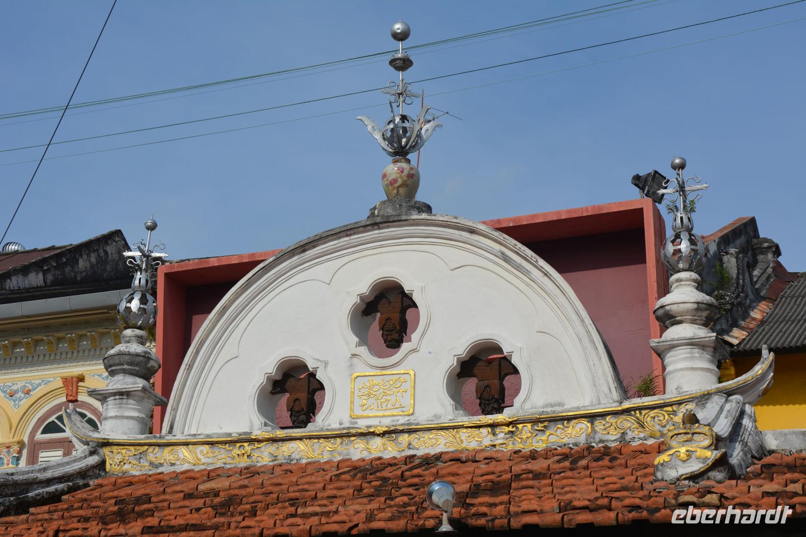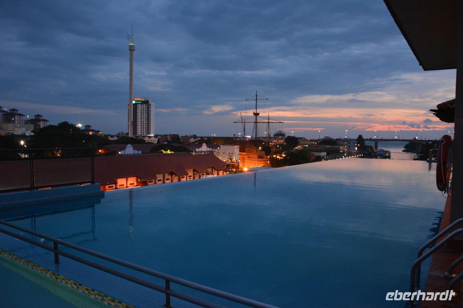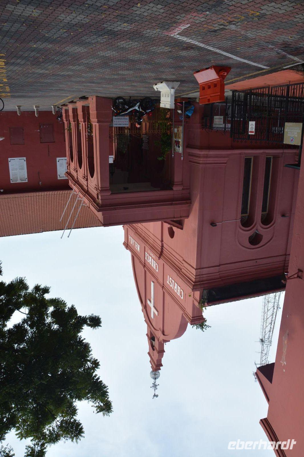 Am sechsten Tag unserer Silvesterreise machten wir uns nach dem Frühstück auf, Singapur zu verlassen und über die Grenze nach Malaysia zu fahren. Nach der offiziellen Ausreise von Singapur und Einreise nach Malaysia hieß es beim Überqueren der Brücke nach Johor Bahru herzlich Willkommen in Malaysia! Wir treffen hier auf unseren neuen Reiseleiter und neuen Busfahrer. Von ihm hörten wir erste Einführungen zu Malaysia und fuhren zunächst durch kargere grüne Landschaft. Nun hieß es gemütlich mit dem Bus gen Norden fahren, um unser nächstes Ziel die Stadt Malakka zu erreichen. Das sanfte Schaukeln des Busses und die Hitze der letzten Tage verleiteten zu einem kleinen Nickerchen. Zwischendurch mal eine Toilettenpause und die Möglichkeit Obst oder Snacks zu kaufen, ging es weiter entlang grüner Palmenplantagen und üppiger Wälder. Nach der Pause war es noch circa eine Stunde bis Malakka. Unser Reiseleiter spricht schon ein wenig über die Stadt und die Veränderungen in Malaysia in den letzten Jahrzehnten. Mit der Zeit sehen wir erste Dörfer und Ansiedlungen, eine Moschee und Reisfelder, ehe wir allmählich Stadtgebiet erreichen. Nach Ankunft in der Stadt hieß es erst einmal Essen, ehe wir uns auf Stadterkundung aufmachten. So kehrten wir in ein Restaurant ein, wo wir die für Malaysia typische Nyonya Küche verkosteten. Diese Küche stellt eine Vermischung von chinesischen Einflüssen der ersten Siedler in Malaysia und malaiischer Küche dar. So gab es Garnelen in Kokosmilch und Ananas, gebratenes Hähnchen, Reis, gedünstetes Gemüse, Hühnchencurry und noch einiges mehr. Gesättigt starteten wir danach unseren Rundgang durch Malakka. Unser Reiseleiter zeigte uns zunächst einen Schuhmacher, wo wir noch die winzigen Schuhe der Frauen zu sehen waren, deren Füße gebunden wurden und deshalb so kleine Schuhe tragen konnten. Danach noch schnell zur Wechselstube, um Malaysische Ringgit zu erhalten und weiter ging es zum Cheng Hoon Tempel. Dies ist ein chinesischer Tempel, übersetzt auch Grüner Wolkentempel, aus braunem Holz mit Goldverzierungen und chinesischen Papierlampen im Hof. Als wir den Tempel besuchten, war gerade eine Gebetszeremonie im Gange. Wir lernten über die Glückbringende Farbe Rot, die Symbolik der goldenen Elemente und lauschten den Erklärungen unseres Reiseleiters, während uns der Geruch der Räucherstäbchen begleitete. Bei der weiteren Erkundung des Tempels hörten wir auch von dem chinesischen Aberglaube in Bezug auf Farben und Zahlen. Weiter ging es über die Straße der Harmonie zur Kampung Kling Moschee. Nach kurzer Besichtigung schallte schon der Ruf des Muezzin durch die Gegend. Wenige Schritte später, waren wir auch schon an einem weiteren Ort der nächsten Religion. Vor dem Hindu Tempel Sri Poyyatha Vinayaga Moorthy Tempel, der momentan geschlossen war, weil gerade keine Gebetszeit ist, lernten wir über die religiöse Praxis der Hindus durch das Schmeißen der Kokosnuss im Behältnis vor dem Tempel. Wir setzten unseren Spaziergang über die bekannte Jonker Street fort zum Roten Platz. Hier beeindruckte uns nicht nur die rote Kirche, sondern auch die bunt geschmückten Rikschas, welche mit lauter Musik durch die Straßen fuhren. Zu Fuß ging es dann noch einen kleinen Hügel hoch zu den Ruinen der St. Pauls Kirche. Die ursprünglich von den Portugiesen im 16. Jahrhundert gebaute Kirche, steht nun als Denkmal auf einem die Stadt überblickenden Hügel. Hinab ging es dann an der ehemaligen portugiesischen Festung A Famosa vorbei zu unserem Bus, der uns schließlich in unser wunderschönes Hotel brachte. Direkt am Malakka Fluss gelegen, ruhten wir uns in unserem Hotel aus oder unternahmen von hier einen kleinen Spaziergang durch die Gassen dieser kleinen, aber charmanten Stadt.