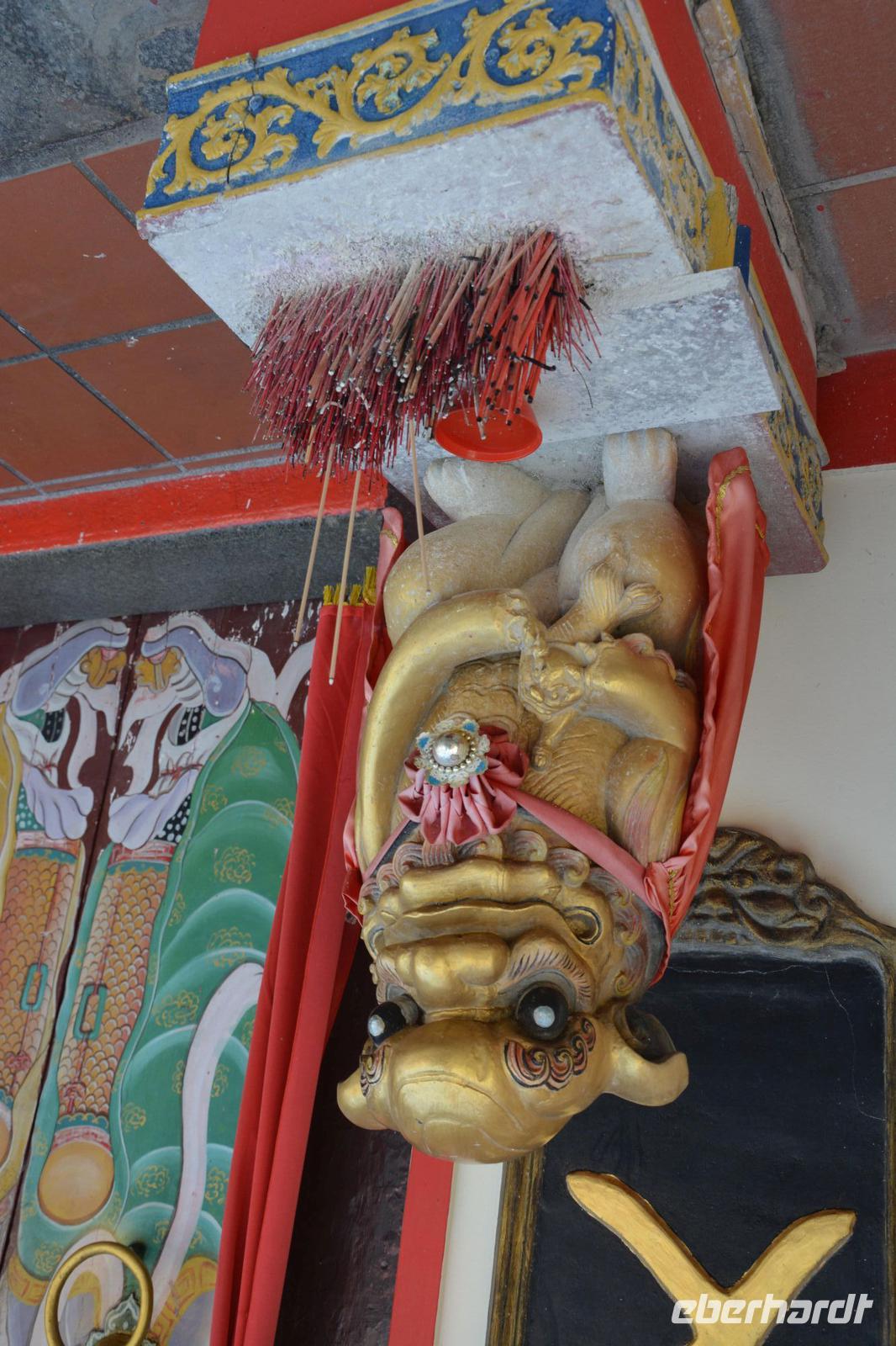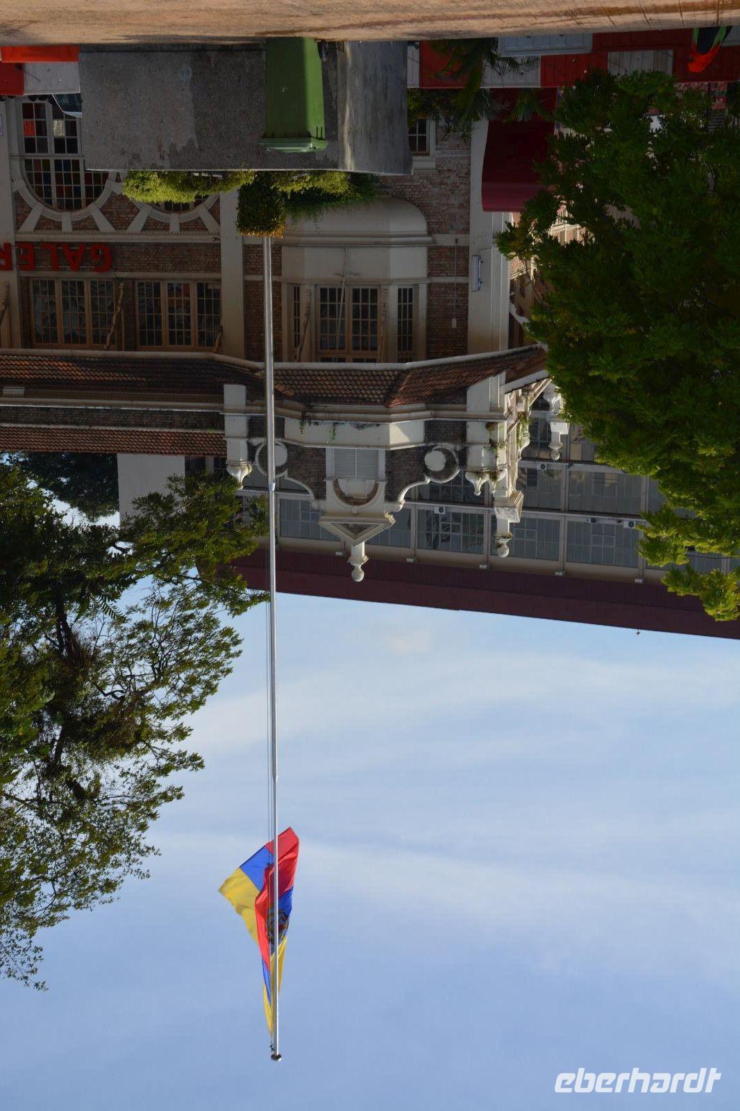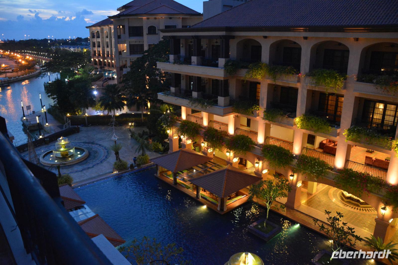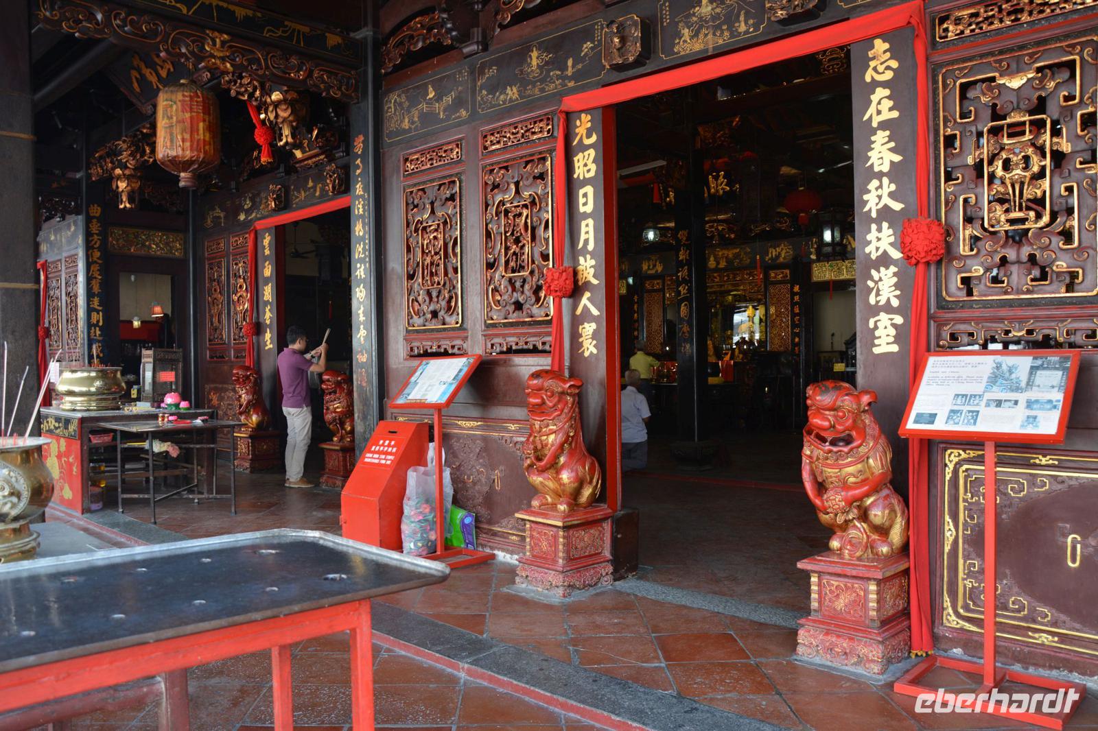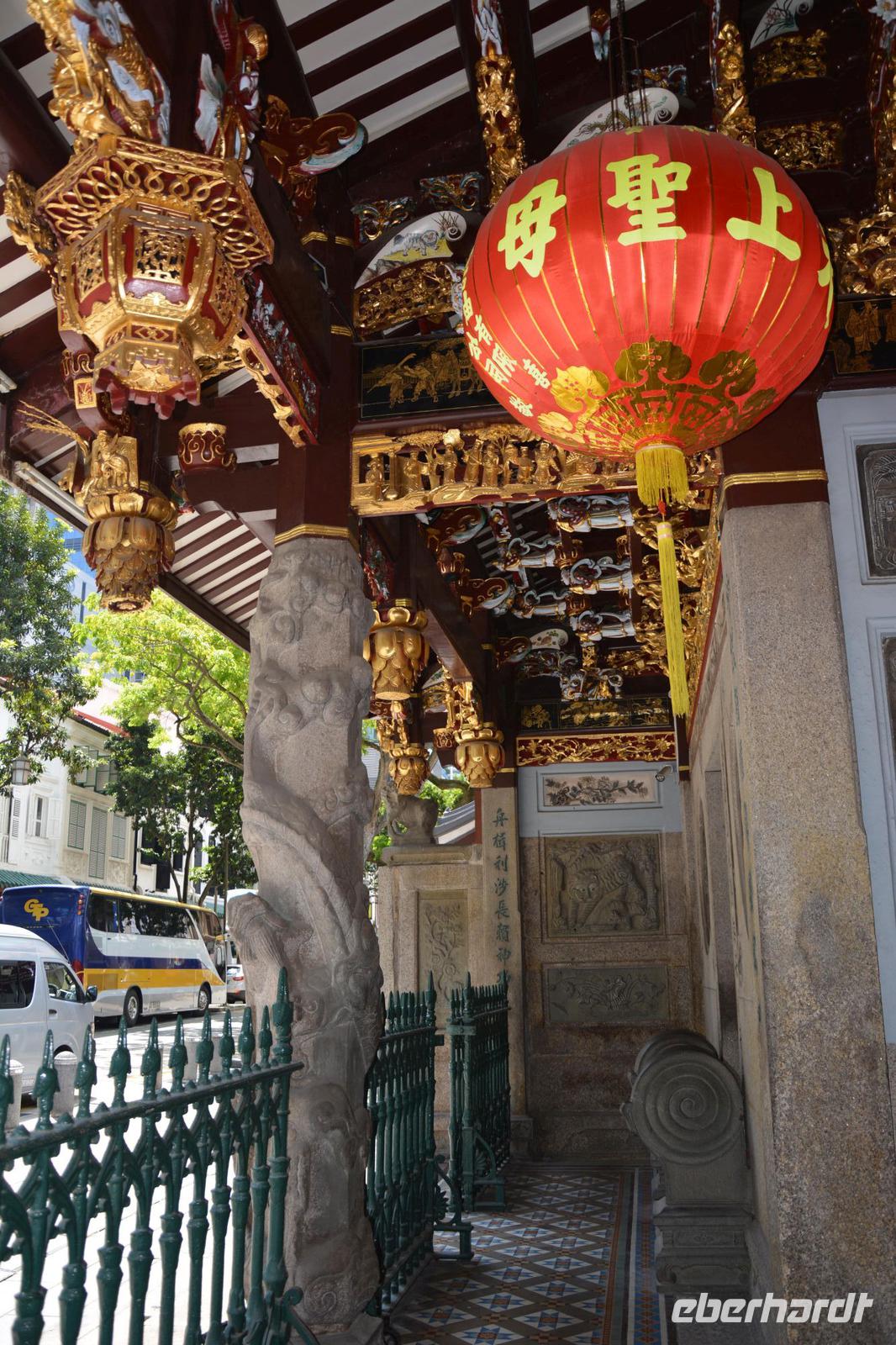 Am sechsten Tag unserer Silvesterreise machten wir uns nach dem Frühstück auf, Singapur zu verlassen und über die Grenze nach Malaysia zu fahren. Nach der offiziellen Ausreise von Singapur und Einreise nach Malaysia hieß es beim Überqueren der Brücke nach Johor Bahru herzlich Willkommen in Malaysia! Wir treffen hier auf unseren neuen Reiseleiter und neuen Busfahrer. Von ihm hörten wir erste Einführungen zu Malaysia und fuhren zunächst durch kargere grüne Landschaft. Nun hieß es gemütlich mit dem Bus gen Norden fahren, um unser nächstes Ziel die Stadt Malakka zu erreichen. Das sanfte Schaukeln des Busses und die Hitze der letzten Tage verleiteten zu einem kleinen Nickerchen. Zwischendurch mal eine Toilettenpause und die Möglichkeit Obst oder Snacks zu kaufen, ging es weiter entlang grüner Palmenplantagen und üppiger Wälder. Nach der Pause war es noch circa eine Stunde bis Malakka. Unser Reiseleiter spricht schon ein wenig über die Stadt und die Veränderungen in Malaysia in den letzten Jahrzehnten. Mit der Zeit sehen wir erste Dörfer und Ansiedlungen, eine Moschee und Reisfelder, ehe wir allmählich Stadtgebiet erreichen. Nach Ankunft in der Stadt hieß es erst einmal Essen, ehe wir uns auf Stadterkundung aufmachten. So kehrten wir in ein Restaurant ein, wo wir die für Malaysia typische Nyonya Küche verkosteten. Diese Küche stellt eine Vermischung von chinesischen Einflüssen der ersten Siedler in Malaysia und malaiischer Küche dar. So gab es Garnelen in Kokosmilch und Ananas, gebratenes Hähnchen, Reis, gedünstetes Gemüse, Hühnchencurry und noch einiges mehr. Gesättigt starteten wir danach unseren Rundgang durch Malakka. Unser Reiseleiter zeigte uns zunächst einen Schuhmacher, wo wir noch die winzigen Schuhe der Frauen zu sehen waren, deren Füße gebunden wurden und deshalb so kleine Schuhe tragen konnten. Danach noch schnell zur Wechselstube, um Malaysische Ringgit zu erhalten und weiter ging es zum Cheng Hoon Tempel. Dies ist ein chinesischer Tempel, übersetzt auch Grüner Wolkentempel, aus braunem Holz mit Goldverzierungen und chinesischen Papierlampen im Hof. Als wir den Tempel besuchten, war gerade eine Gebetszeremonie im Gange. Wir lernten über die Glückbringende Farbe Rot, die Symbolik der goldenen Elemente und lauschten den Erklärungen unseres Reiseleiters, während uns der Geruch der Räucherstäbchen begleitete. Bei der weiteren Erkundung des Tempels hörten wir auch von dem chinesischen Aberglaube in Bezug auf Farben und Zahlen. Weiter ging es über die Straße der Harmonie zur Kampung Kling Moschee. Nach kurzer Besichtigung schallte schon der Ruf des Muezzin durch die Gegend. Wenige Schritte später, waren wir auch schon an einem weiteren Ort der nächsten Religion. Vor dem Hindu Tempel Sri Poyyatha Vinayaga Moorthy Tempel, der momentan geschlossen war, weil gerade keine Gebetszeit ist, lernten wir über die religiöse Praxis der Hindus durch das Schmeißen der Kokosnuss im Behältnis vor dem Tempel. Wir setzten unseren Spaziergang über die bekannte Jonker Street fort zum Roten Platz. Hier beeindruckte uns nicht nur die rote Kirche, sondern auch die bunt geschmückten Rikschas, welche mit lauter Musik durch die Straßen fuhren. Zu Fuß ging es dann noch einen kleinen Hügel hoch zu den Ruinen der St. Pauls Kirche. Die ursprünglich von den Portugiesen im 16. Jahrhundert gebaute Kirche, steht nun als Denkmal auf einem die Stadt überblickenden Hügel. Hinab ging es dann an der ehemaligen portugiesischen Festung A Famosa vorbei zu unserem Bus, der uns schließlich in unser wunderschönes Hotel brachte. Direkt am Malakka Fluss gelegen, ruhten wir uns in unserem Hotel aus oder unternahmen von hier einen kleinen Spaziergang durch die Gassen dieser kleinen, aber charmanten Stadt.