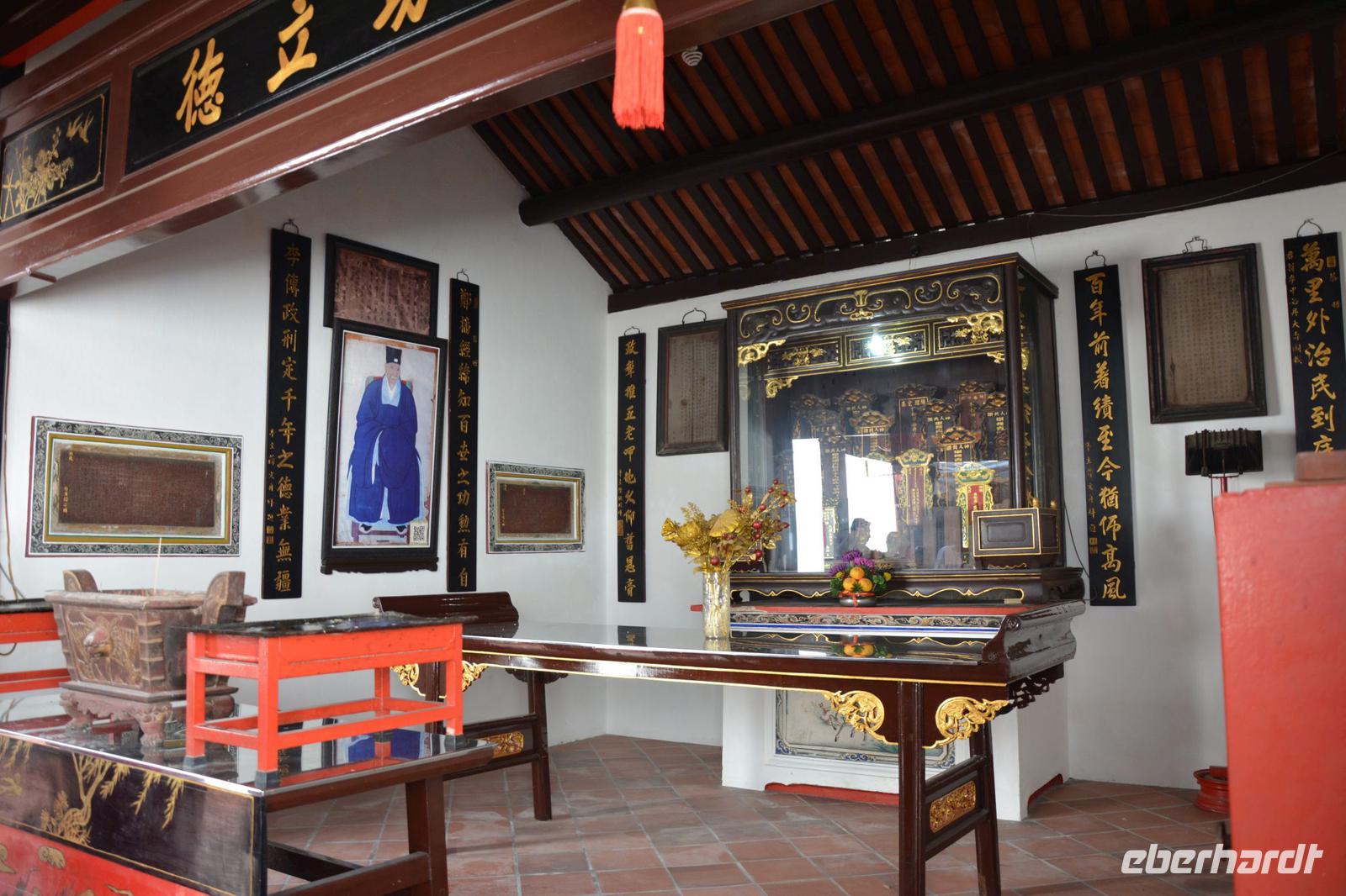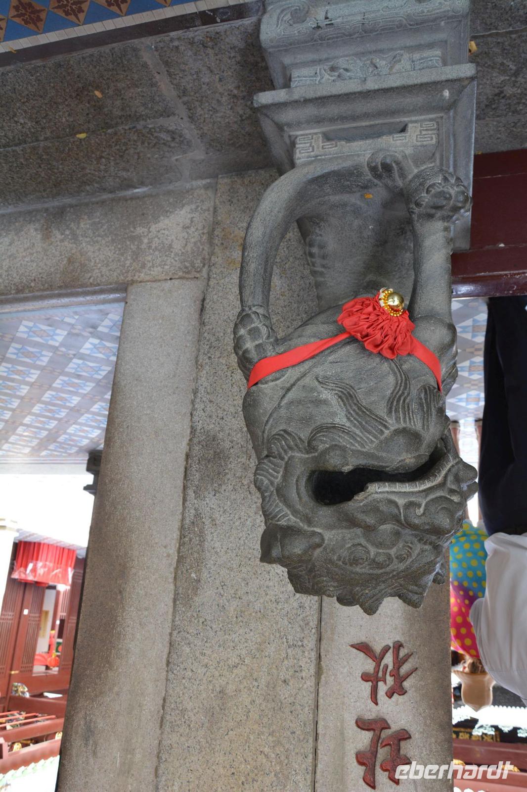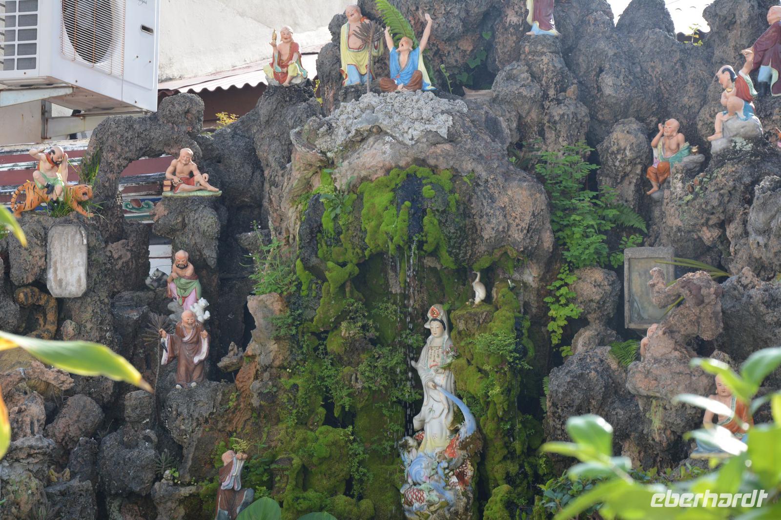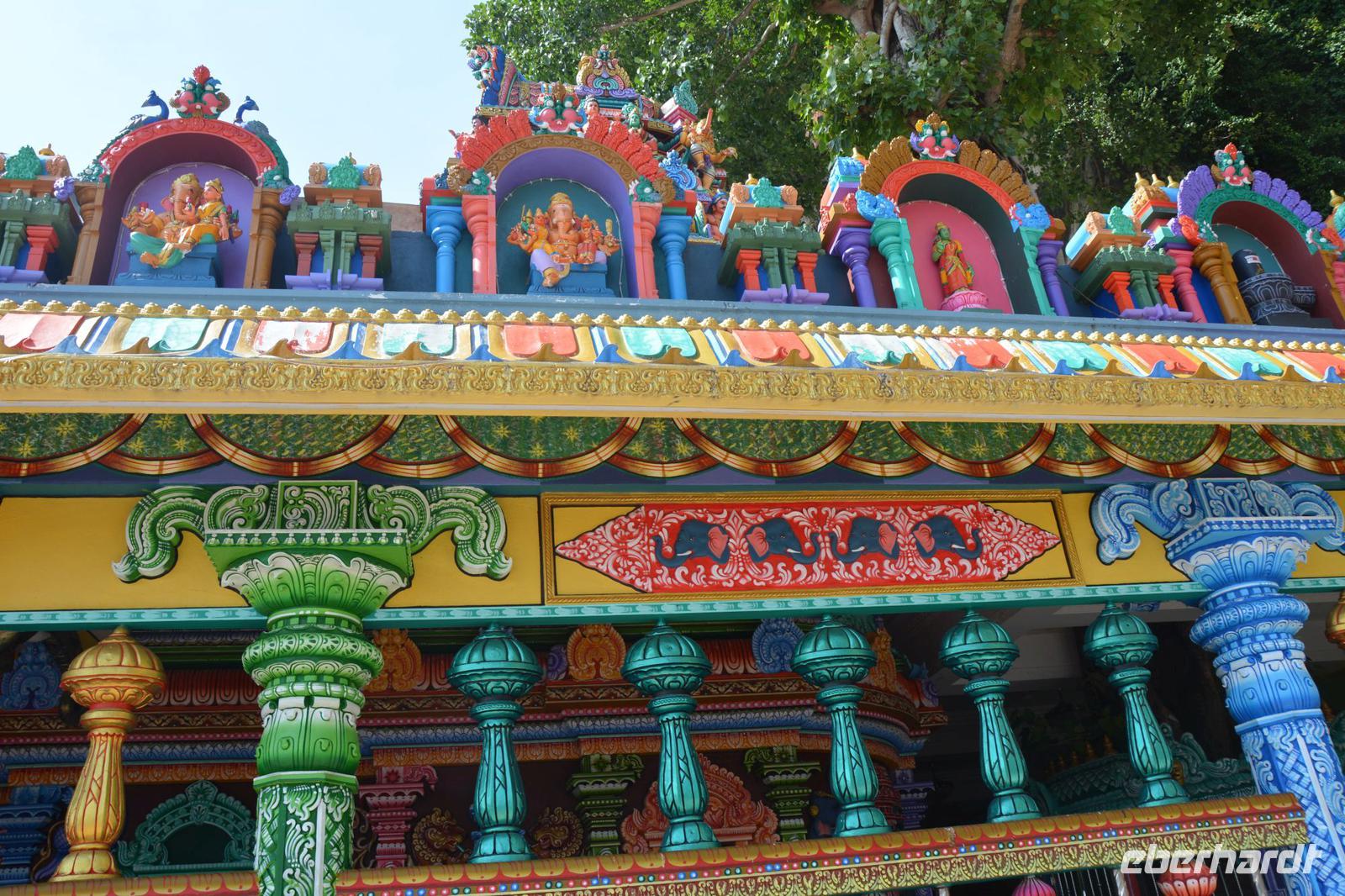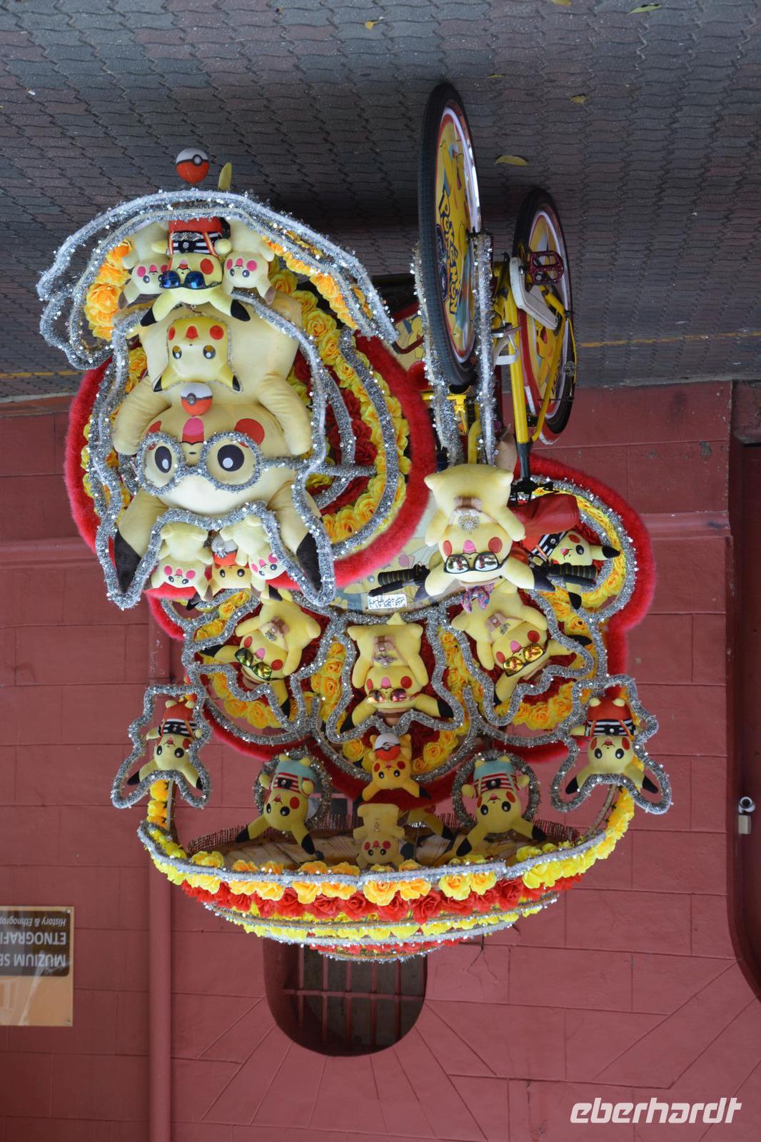 Am sechsten Tag unserer Silvesterreise machten wir uns nach dem Frühstück auf, Singapur zu verlassen und über die Grenze nach Malaysia zu fahren. Nach der offiziellen Ausreise von Singapur und Einreise nach Malaysia hieß es beim Überqueren der Brücke nach Johor Bahru herzlich Willkommen in Malaysia! Wir treffen hier auf unseren neuen Reiseleiter und neuen Busfahrer. Von ihm hörten wir erste Einführungen zu Malaysia und fuhren zunächst durch kargere grüne Landschaft. Nun hieß es gemütlich mit dem Bus gen Norden fahren, um unser nächstes Ziel die Stadt Malakka zu erreichen. Das sanfte Schaukeln des Busses und die Hitze der letzten Tage verleiteten zu einem kleinen Nickerchen. Zwischendurch mal eine Toilettenpause und die Möglichkeit Obst oder Snacks zu kaufen, ging es weiter entlang grüner Palmenplantagen und üppiger Wälder. Nach der Pause war es noch circa eine Stunde bis Malakka. Unser Reiseleiter spricht schon ein wenig über die Stadt und die Veränderungen in Malaysia in den letzten Jahrzehnten. Mit der Zeit sehen wir erste Dörfer und Ansiedlungen, eine Moschee und Reisfelder, ehe wir allmählich Stadtgebiet erreichen. Nach Ankunft in der Stadt hieß es erst einmal Essen, ehe wir uns auf Stadterkundung aufmachten. So kehrten wir in ein Restaurant ein, wo wir die für Malaysia typische Nyonya Küche verkosteten. Diese Küche stellt eine Vermischung von chinesischen Einflüssen der ersten Siedler in Malaysia und malaiischer Küche dar. So gab es Garnelen in Kokosmilch und Ananas, gebratenes Hähnchen, Reis, gedünstetes Gemüse, Hühnchencurry und noch einiges mehr. Gesättigt starteten wir danach unseren Rundgang durch Malakka. Unser Reiseleiter zeigte uns zunächst einen Schuhmacher, wo wir noch die winzigen Schuhe der Frauen zu sehen waren, deren Füße gebunden wurden und deshalb so kleine Schuhe tragen konnten. Danach noch schnell zur Wechselstube, um Malaysische Ringgit zu erhalten und weiter ging es zum Cheng Hoon Tempel. Dies ist ein chinesischer Tempel, übersetzt auch Grüner Wolkentempel, aus braunem Holz mit Goldverzierungen und chinesischen Papierlampen im Hof. Als wir den Tempel besuchten, war gerade eine Gebetszeremonie im Gange. Wir lernten über die Glückbringende Farbe Rot, die Symbolik der goldenen Elemente und lauschten den Erklärungen unseres Reiseleiters, während uns der Geruch der Räucherstäbchen begleitete. Bei der weiteren Erkundung des Tempels hörten wir auch von dem chinesischen Aberglaube in Bezug auf Farben und Zahlen. Weiter ging es über die Straße der Harmonie zur Kampung Kling Moschee. Nach kurzer Besichtigung schallte schon der Ruf des Muezzin durch die Gegend. Wenige Schritte später, waren wir auch schon an einem weiteren Ort der nächsten Religion. Vor dem Hindu Tempel Sri Poyyatha Vinayaga Moorthy Tempel, der momentan geschlossen war, weil gerade keine Gebetszeit ist, lernten wir über die religiöse Praxis der Hindus durch das Schmeißen der Kokosnuss im Behältnis vor dem Tempel. Wir setzten unseren Spaziergang über die bekannte Jonker Street fort zum Roten Platz. Hier beeindruckte uns nicht nur die rote Kirche, sondern auch die bunt geschmückten Rikschas, welche mit lauter Musik durch die Straßen fuhren. Zu Fuß ging es dann noch einen kleinen Hügel hoch zu den Ruinen der St. Pauls Kirche. Die ursprünglich von den Portugiesen im 16. Jahrhundert gebaute Kirche, steht nun als Denkmal auf einem die Stadt überblickenden Hügel. Hinab ging es dann an der ehemaligen portugiesischen Festung A Famosa vorbei zu unserem Bus, der uns schließlich in unser wunderschönes Hotel brachte. Direkt am Malakka Fluss gelegen, ruhten wir uns in unserem Hotel aus oder unternahmen von hier einen kleinen Spaziergang durch die Gassen dieser kleinen, aber charmanten Stadt.