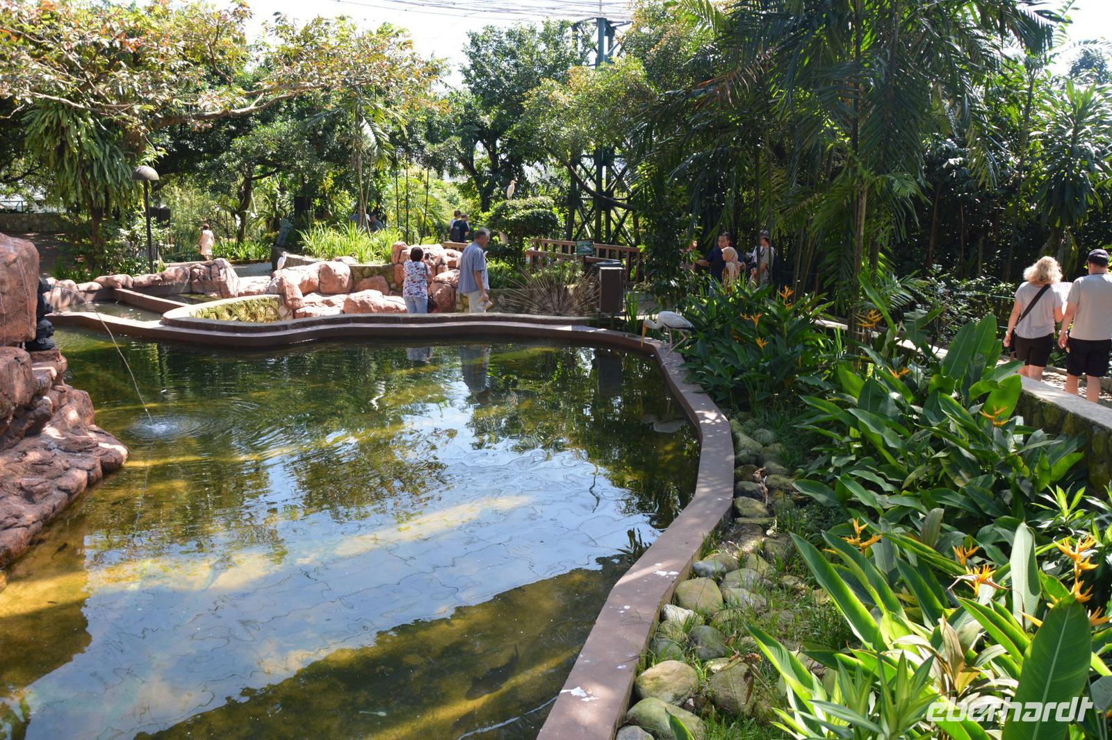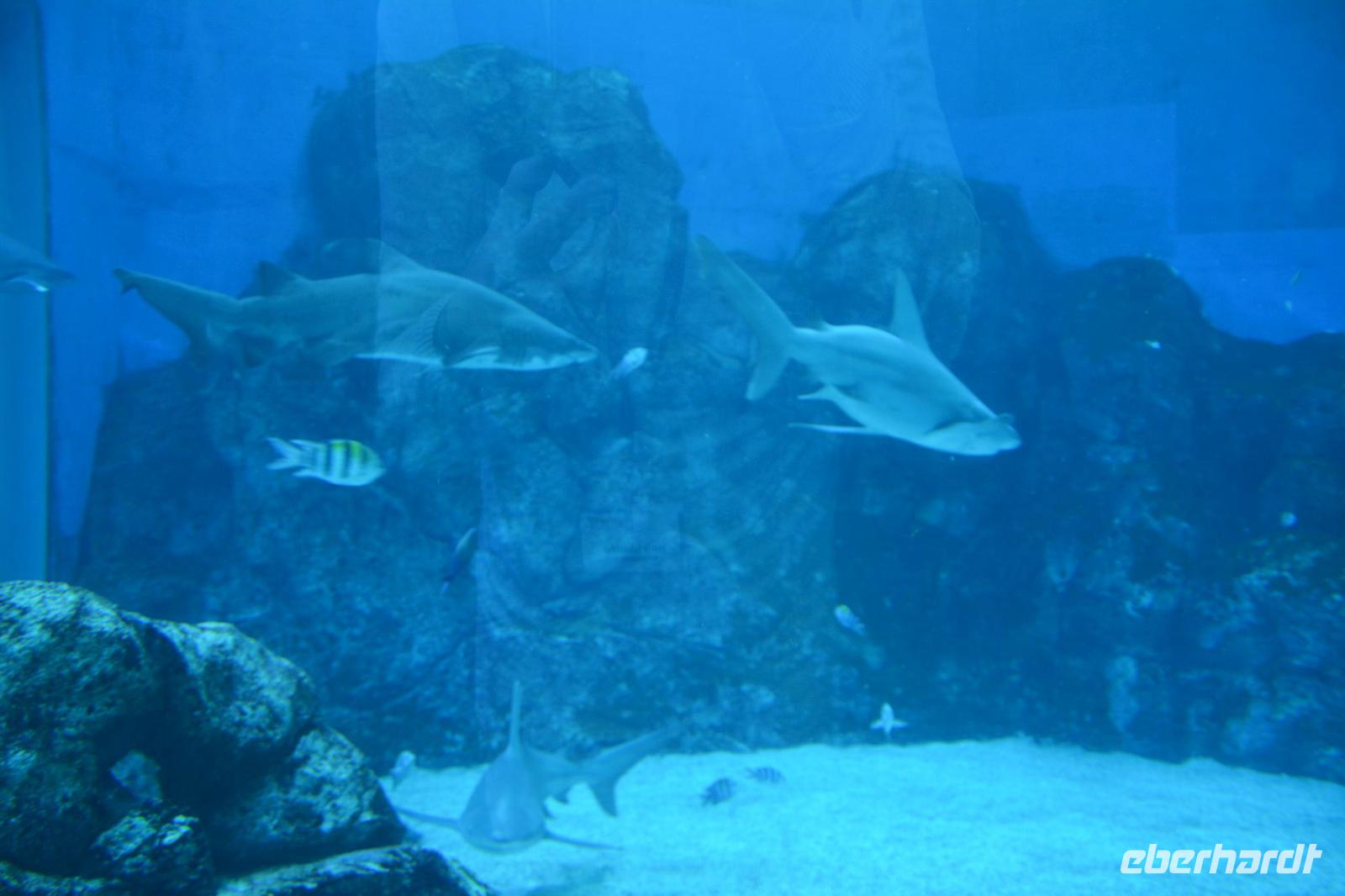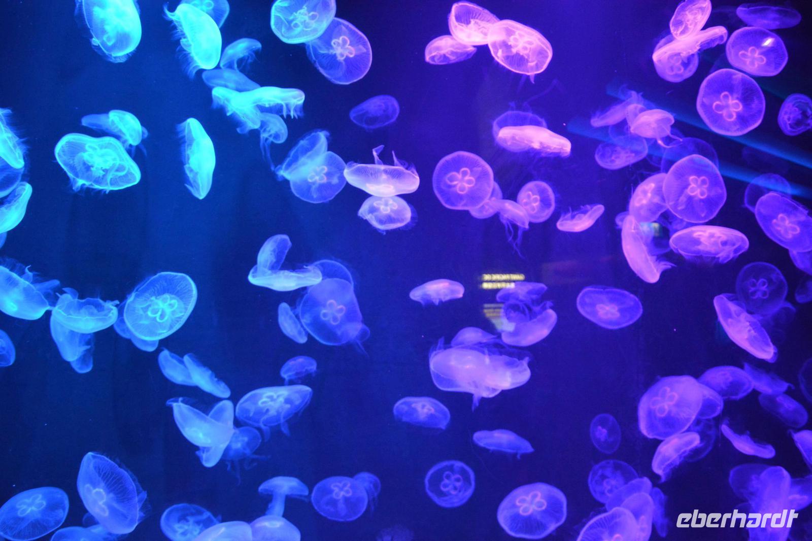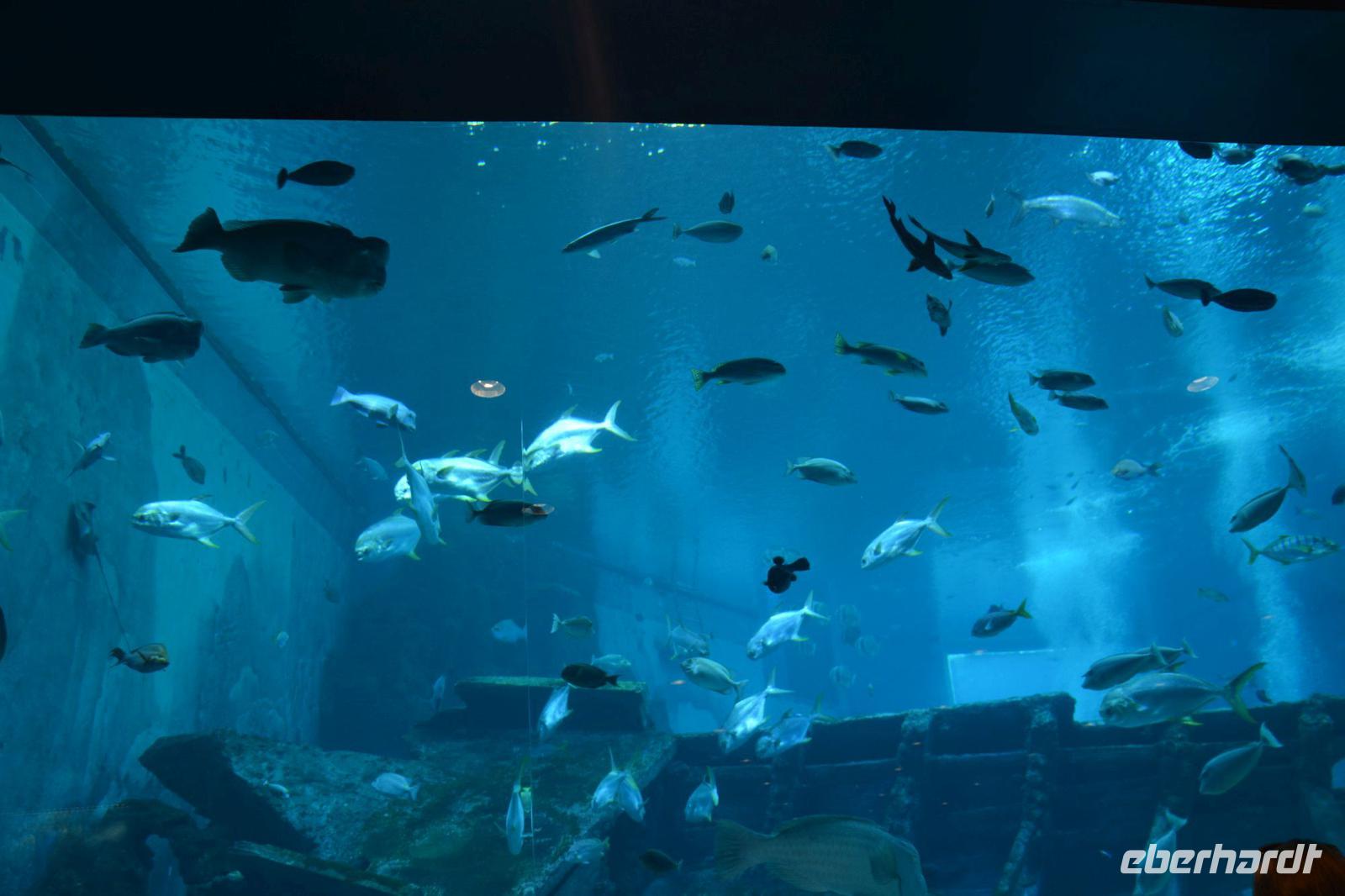 Doch bevor wir zu unserer Silvesterfeier am Abend aufbrechen sollten, unternahmen wir heute einen Ausflug auf die Vergnügungsinsel Sentosa. Die fünf Quadratkilometer große aufgeschüttete Insel im Süden Singapurs bietet zahlreiche Unterhaltungsmöglichkeiten für Touristen, aber auch einen Ort für Erholung und Abenteuer für die Singapurianer. Mit dem Bus fuhren wir am Morgen zum Mount Faber. Dort stiegen wir aus und nach ein paar Fotos, reihten wir uns in die Schlange bei den Seilbahnen. Mit der Seilbahn ging es dann in circa zehn Minuten auf die Insel nach Sentosa. Als erster Programmpunkt stand der Schmetterlingspark auf dem Plan. In einem Gehege standen wir umgeben von zum Teil großen Schmetterlingen in vielen Farben. In der grünen Anlage in Gehege nebenan lifen uns blaue Kronentauben über den Weg. Und eine Schildkröte, Papageien und einen Leguan gab es auch zu sehen. In der Insektenausstellung wurden uns die verschiedensten Arten von Krabbeltieren in unterschiedlichen Größen und Formen gezeigt. Danach ging es weiter über die Insel zum Merlion Platz. Hier steht ein begehbarer Merlion, in welchem bei einer Filmshow zunächst die Geschichte des Merlion erzählt wird und dann die Aussichtsplattform auf dem Kopf der Statue besichtigt werden kann. Mit einer goldenen Münze als Andenken an Sentosa und einem Foto mit den Eckzähnen der Löwenstatue im Gepäck, ging es mit der Bahn weiter in Richtung Aquarium. Im größten Aquarium Südostasiens sahen wir viele Fische, kleinere Haie, zahlreiche bunte Korallen, Sehpferdchen, Quallen und weitere Tiere. Als wir um die Mittagszeit beschlossen zum Strand zu gehen, machte uns leider das Wetter einen Strich durch die Rechnung. Es goss in Strömen. Doch das ist leider ganz normal in den Tropen, so stellten wir uns unter oder suchten in einem Restaurant Zuflucht, ehe wir zum Siloso Strand gingen. Nach weiteren Regengüssen machten wir uns wenig später wieder auf den Rückweg zu unserem Hotel. Nach etwas Freizeit in Vorbereitung auf die Silvesterfeier, trafen wir uns am Abend alle schick gemacht in der Hotellobby. Mit viel Vorfreude und in ausgelassener Stimmung ging es mit dem Bus zum Marina Bay Financial Center, in welchem sich das Restaurant und Bar LeVel 33 befindet. Noch schnell ein Gruppenfoto, dann in den Aufzug in den dreiundreißigsten Stock. Wir sind begeistert von dem Ambiente der Location, der tollen Dekoration auf unserem Tisch direkt an den Glasfenstern und natürlich überwältigt von der gigantischen Aussicht auf die erleuchtete Marina Bay von Singapur. Nach den ersten Fotos von Aussicht, Tisch und Bar, wurde uns auch schon ein leckeres Abendessen gereicht. Mit einem Begrüßungsgetränk stießen wir auf einen wunderbaren Abend an! Ein Gang nach dem anderen, dazu Bier und Wein kostenfrei dazu, verging der Abend wie im Fluge. Die interessanten Essenskombinationen der liebevoll präsentierten Gänge mundete uns, es wurde ausgelassen geplaudert und gelacht. Bald war es ja auch schon Mitternacht. Auf der Terrasse genossen wir das Feuerwerk ab 23 Uhr, welches in der Marina Bay losging. Um Mitternacht wünschten wir uns ein Frohes Neues Jahr und ließen den Abend mit Tanz und Unterhaltungen ausklingen.