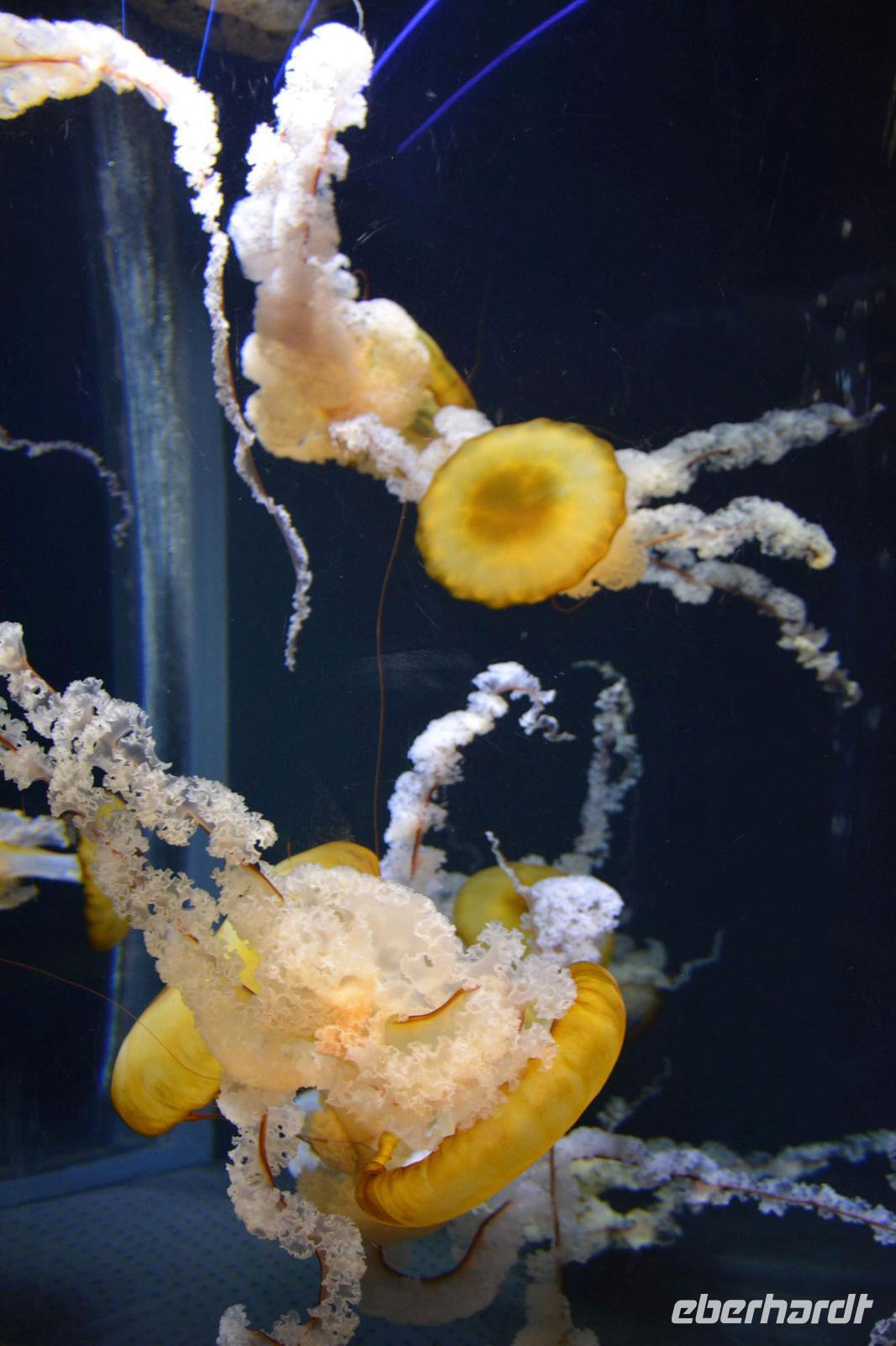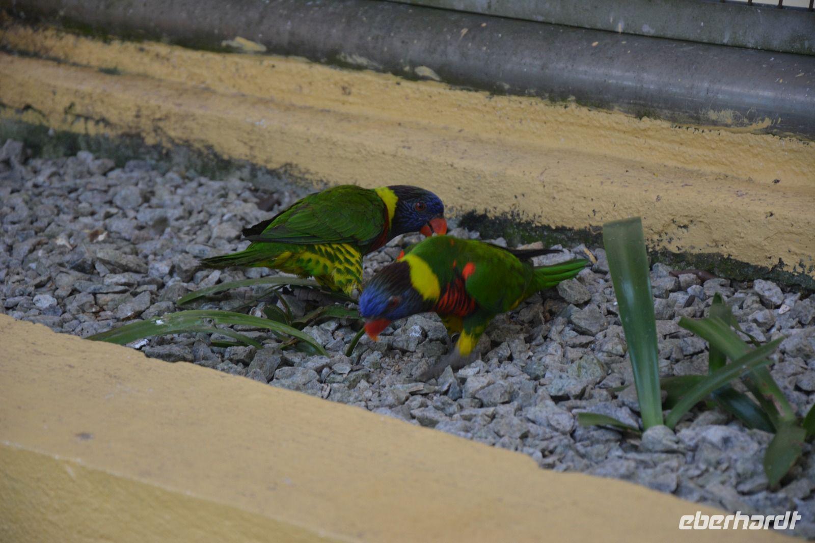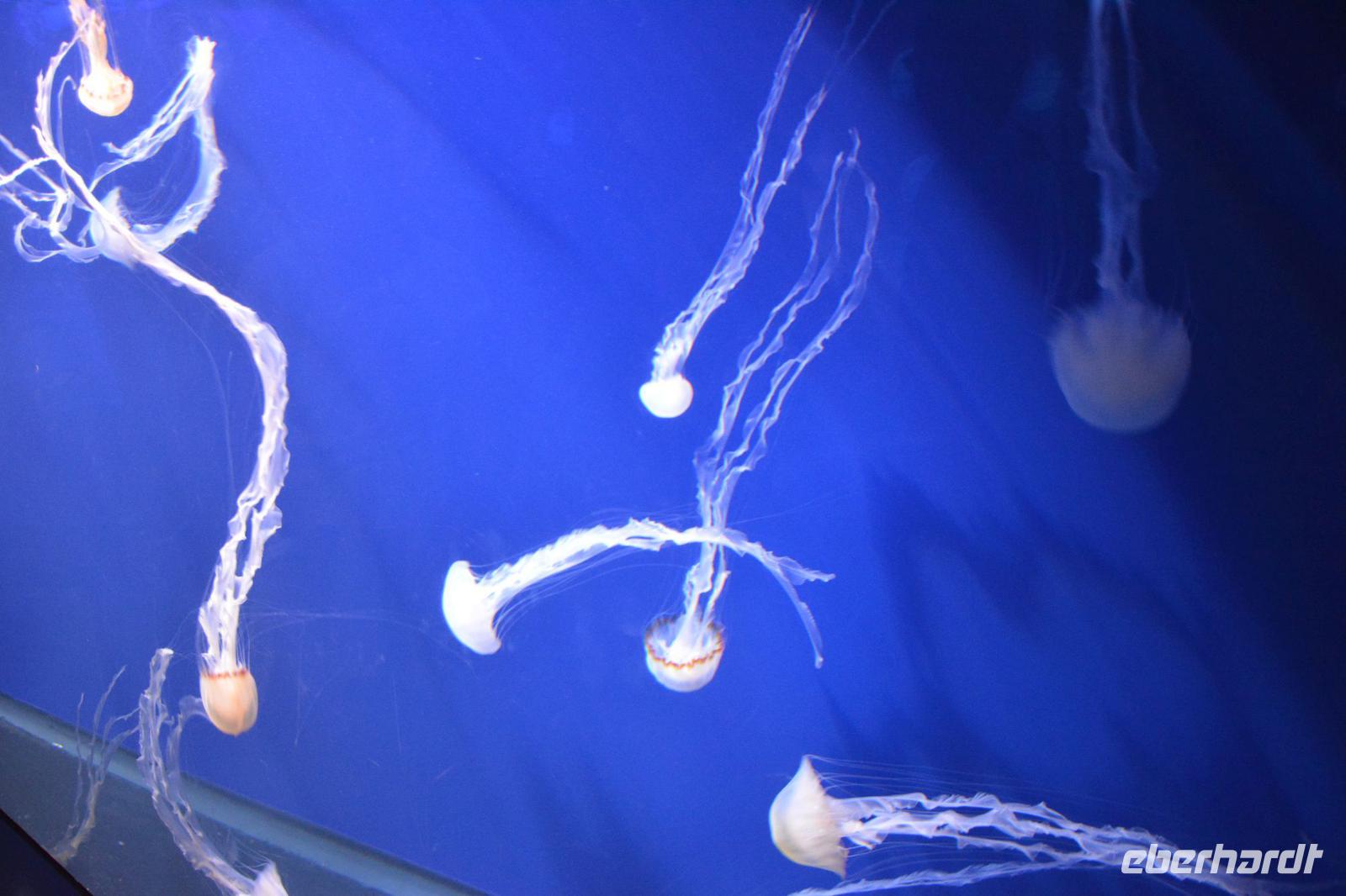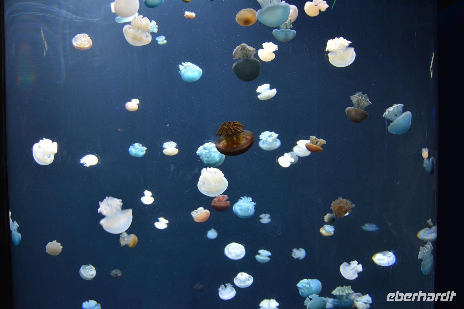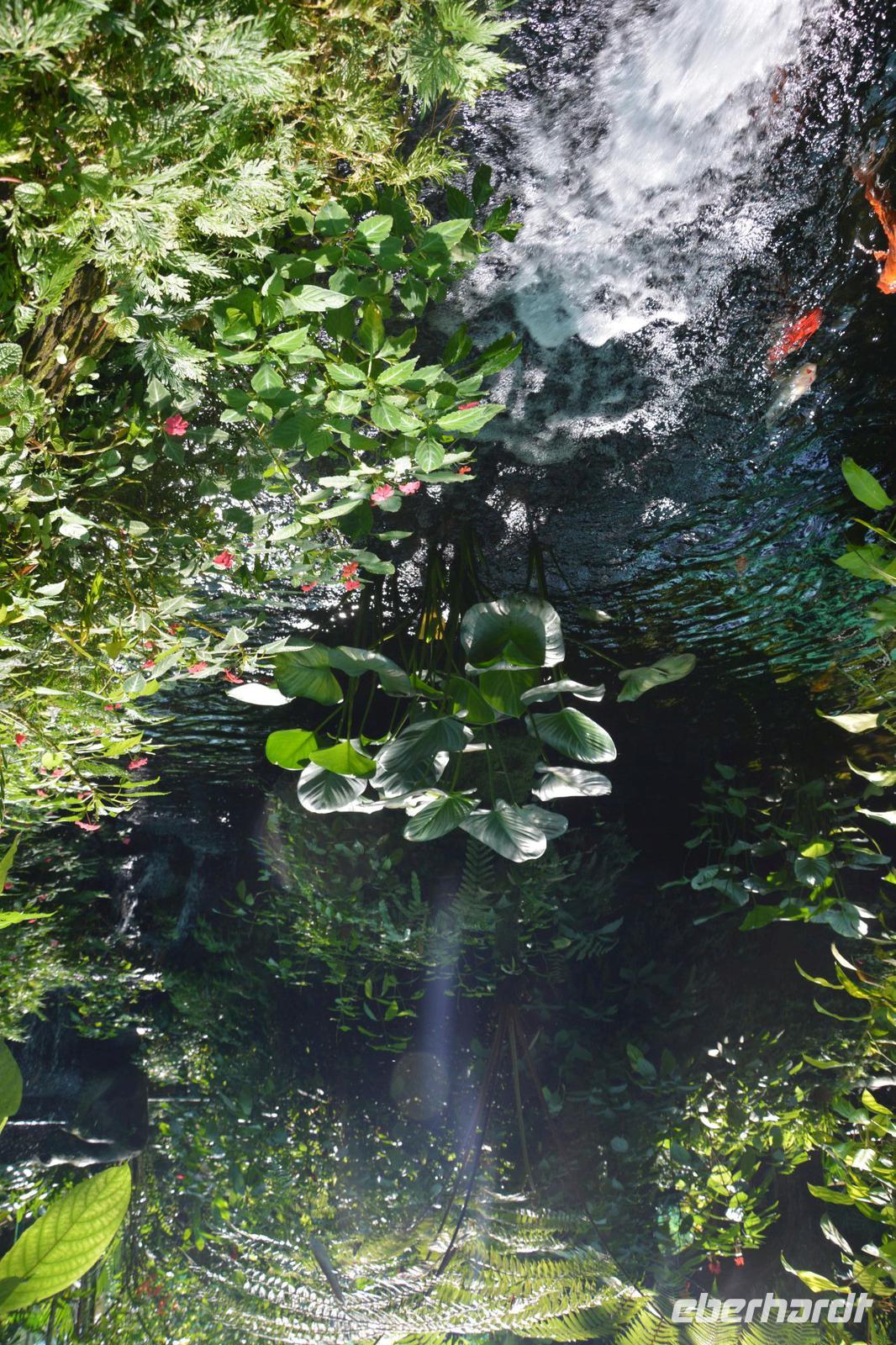 Doch bevor wir zu unserer Silvesterfeier am Abend aufbrechen sollten, unternahmen wir heute einen Ausflug auf die Vergnügungsinsel Sentosa. Die fünf Quadratkilometer große aufgeschüttete Insel im Süden Singapurs bietet zahlreiche Unterhaltungsmöglichkeiten für Touristen, aber auch einen Ort für Erholung und Abenteuer für die Singapurianer. Mit dem Bus fuhren wir am Morgen zum Mount Faber. Dort stiegen wir aus und nach ein paar Fotos, reihten wir uns in die Schlange bei den Seilbahnen. Mit der Seilbahn ging es dann in circa zehn Minuten auf die Insel nach Sentosa. Als erster Programmpunkt stand der Schmetterlingspark auf dem Plan. In einem Gehege standen wir umgeben von zum Teil großen Schmetterlingen in vielen Farben. In der grünen Anlage in Gehege nebenan lifen uns blaue Kronentauben über den Weg. Und eine Schildkröte, Papageien und einen Leguan gab es auch zu sehen. In der Insektenausstellung wurden uns die verschiedensten Arten von Krabbeltieren in unterschiedlichen Größen und Formen gezeigt. Danach ging es weiter über die Insel zum Merlion Platz. Hier steht ein begehbarer Merlion, in welchem bei einer Filmshow zunächst die Geschichte des Merlion erzählt wird und dann die Aussichtsplattform auf dem Kopf der Statue besichtigt werden kann. Mit einer goldenen Münze als Andenken an Sentosa und einem Foto mit den Eckzähnen der Löwenstatue im Gepäck, ging es mit der Bahn weiter in Richtung Aquarium. Im größten Aquarium Südostasiens sahen wir viele Fische, kleinere Haie, zahlreiche bunte Korallen, Sehpferdchen, Quallen und weitere Tiere. Als wir um die Mittagszeit beschlossen zum Strand zu gehen, machte uns leider das Wetter einen Strich durch die Rechnung. Es goss in Strömen. Doch das ist leider ganz normal in den Tropen, so stellten wir uns unter oder suchten in einem Restaurant Zuflucht, ehe wir zum Siloso Strand gingen. Nach weiteren Regengüssen machten wir uns wenig später wieder auf den Rückweg zu unserem Hotel. Nach etwas Freizeit in Vorbereitung auf die Silvesterfeier, trafen wir uns am Abend alle schick gemacht in der Hotellobby. Mit viel Vorfreude und in ausgelassener Stimmung ging es mit dem Bus zum Marina Bay Financial Center, in welchem sich das Restaurant und Bar LeVel 33 befindet. Noch schnell ein Gruppenfoto, dann in den Aufzug in den dreiundreißigsten Stock. Wir sind begeistert von dem Ambiente der Location, der tollen Dekoration auf unserem Tisch direkt an den Glasfenstern und natürlich überwältigt von der gigantischen Aussicht auf die erleuchtete Marina Bay von Singapur. Nach den ersten Fotos von Aussicht, Tisch und Bar, wurde uns auch schon ein leckeres Abendessen gereicht. Mit einem Begrüßungsgetränk stießen wir auf einen wunderbaren Abend an! Ein Gang nach dem anderen, dazu Bier und Wein kostenfrei dazu, verging der Abend wie im Fluge. Die interessanten Essenskombinationen der liebevoll präsentierten Gänge mundete uns, es wurde ausgelassen geplaudert und gelacht. Bald war es ja auch schon Mitternacht. Auf der Terrasse genossen wir das Feuerwerk ab 23 Uhr, welches in der Marina Bay losging. Um Mitternacht wünschten wir uns ein Frohes Neues Jahr und ließen den Abend mit Tanz und Unterhaltungen ausklingen.