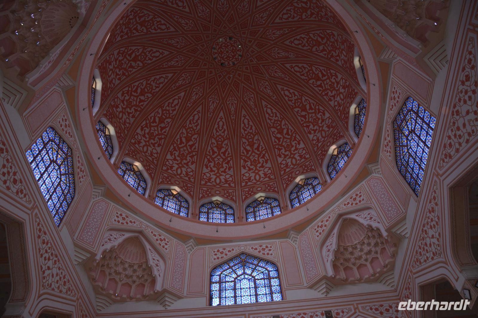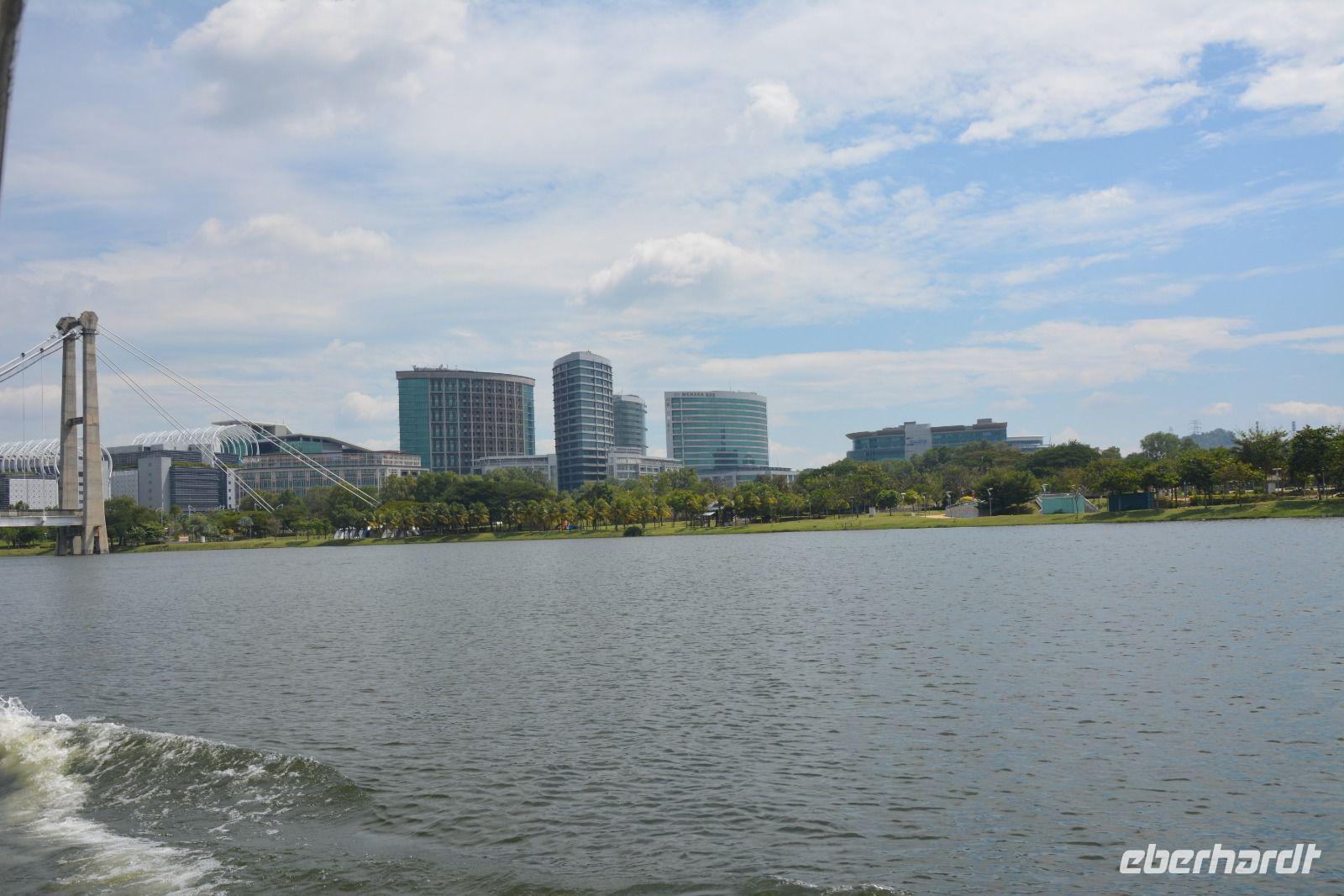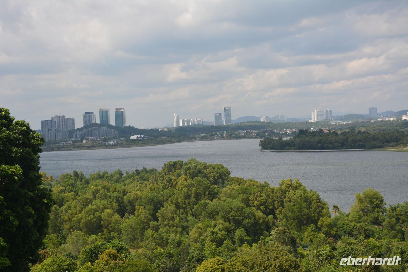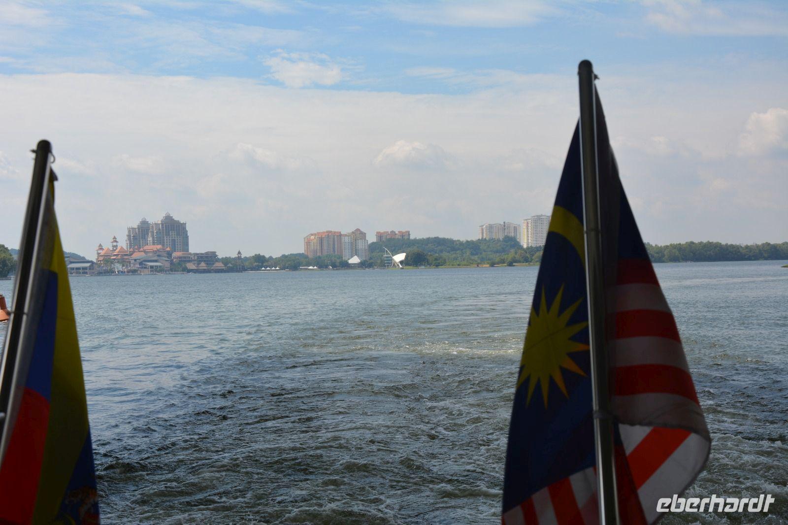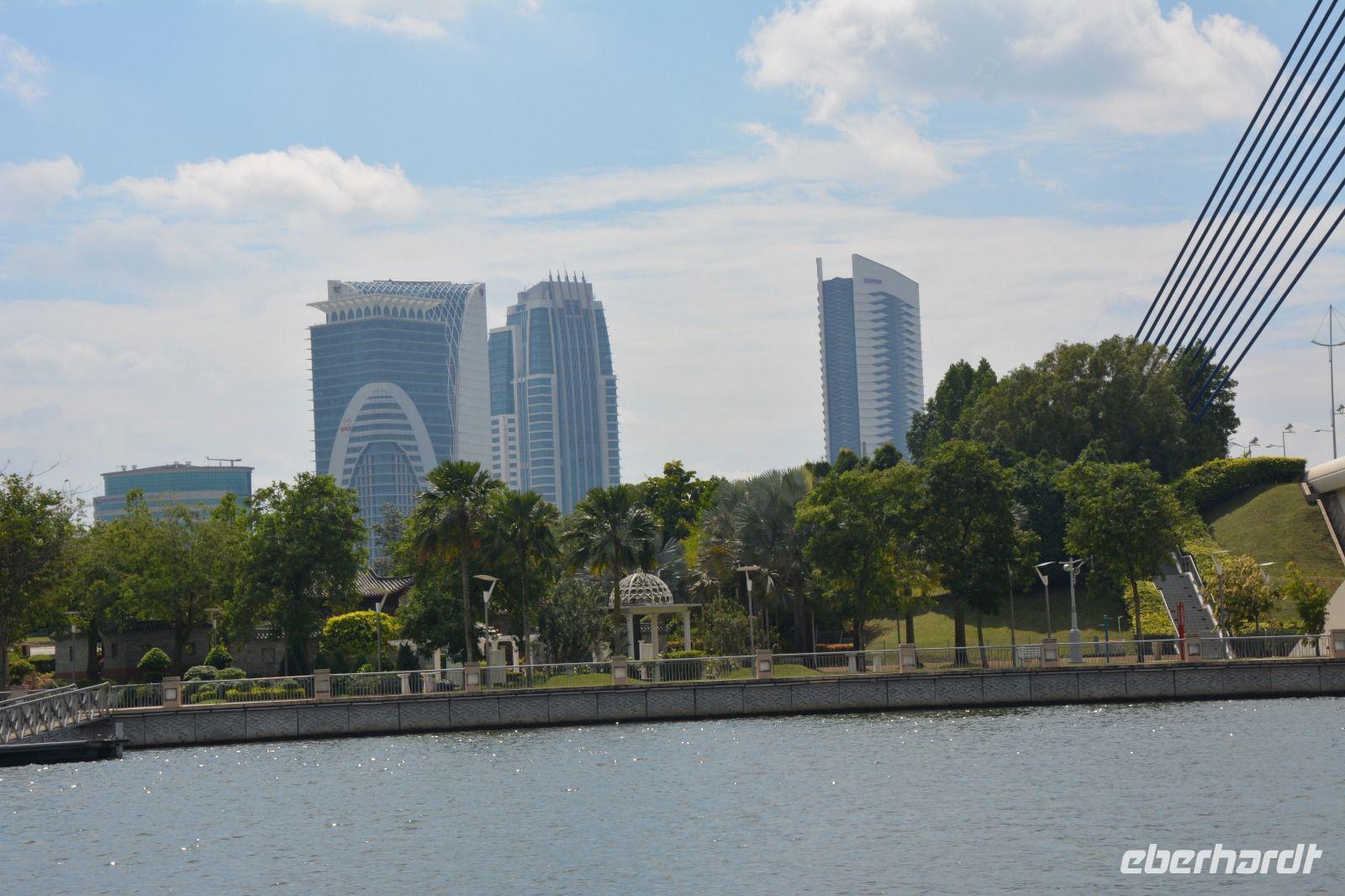 Nach einer Nacht in Malakka, hieß es auch schon wieder Weiterfahren. Mit dem Bus ging es auch heute weiter in die nördliche Richtung nach Putrajaya. Bei einer Pause an einer Raststelle konnten wir leckere Obstbecher mit beispielsweise Mango oder Rosenapfel kaufen. In Putrajaya, einer von der malaiischen Regierung im Jahr 1995 angelegten Planstadt fuhren wir durch die breiten grüngesäumten Straßen in das Stadtzentrum. Vorbei am mit Pflanzen geschriebenen Stadtschriftzug, ging es zur Putra Moschee. Die 1999 eingeweihte Moschee aus Rosa Granit steht am Ufer des künstlich angelegten Sees. Aufgrund der muslimischen Kleidervirschriften betraten wir eingehüllt in rote Roben, die auch die Haare bedeckten, besichtigten wir das Innere der Moschee. Danach spazierten wir am Seeufer zur Bootsanlegestelle und unternahmen danach eine Bootsfahrt auf dem See. Nach der halbstündigen Fahrt fuhren wir in den Botanischen Garten, wo wir ein äußerst schmackhaftes Mittagessen einnahmen. Nach dem Mittagessen ging es weiter nach Kuala Lumpur. Noch schnell zwei Fotostopps am Convention Center mit Blick auf die Stadt und auf der Seri Gemilang Brücke, ehe wir die Stadt verlassen. Am Nachmittag kommen wir in Malaysias Hauptstadt an. Nach etwas Freizeit trafen wir uns am Abend, um gemeinsam in das Stadtzentrum zu fahren. Mit der Monorail fuhren wir zwei Stationen und zu Fuß ging es dann noch ein Stück zum Traders Hotel. Hier ließen wir in der Skybar entspannt den Abend ausklingen und genossen mit einem Cocktail in der Hand den Ausblick auf die beleuchteten Petronas Towers der Stadt.