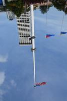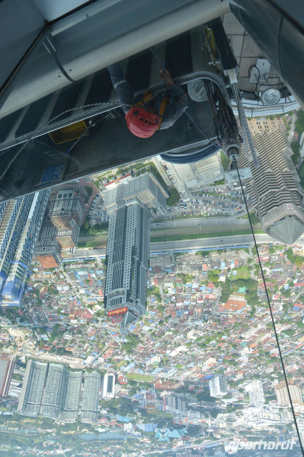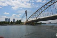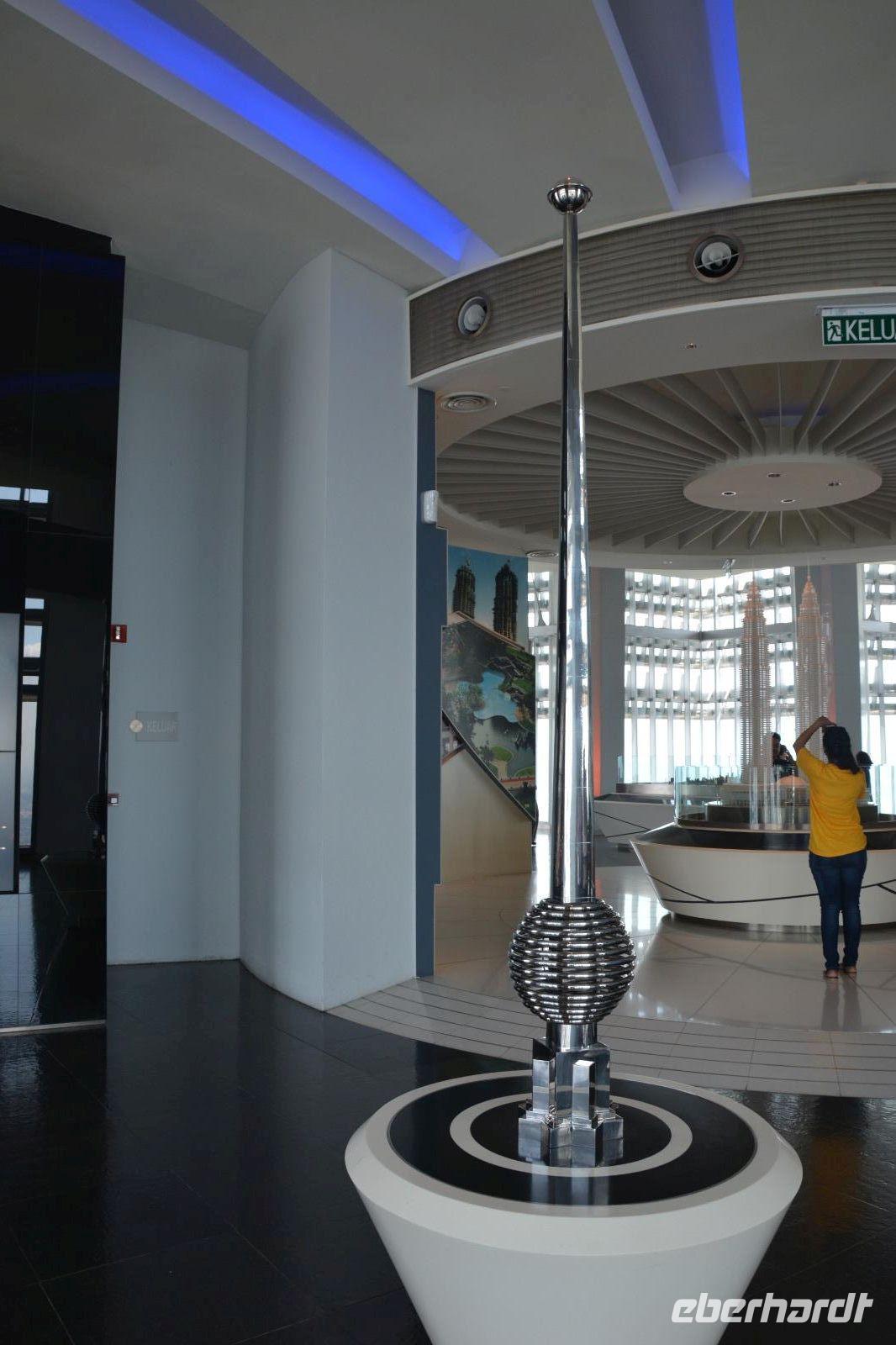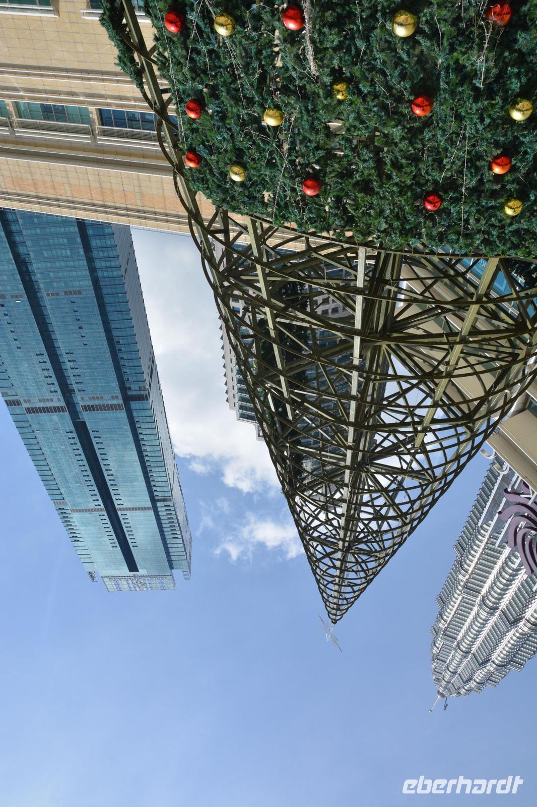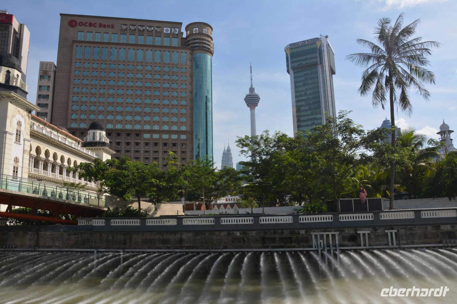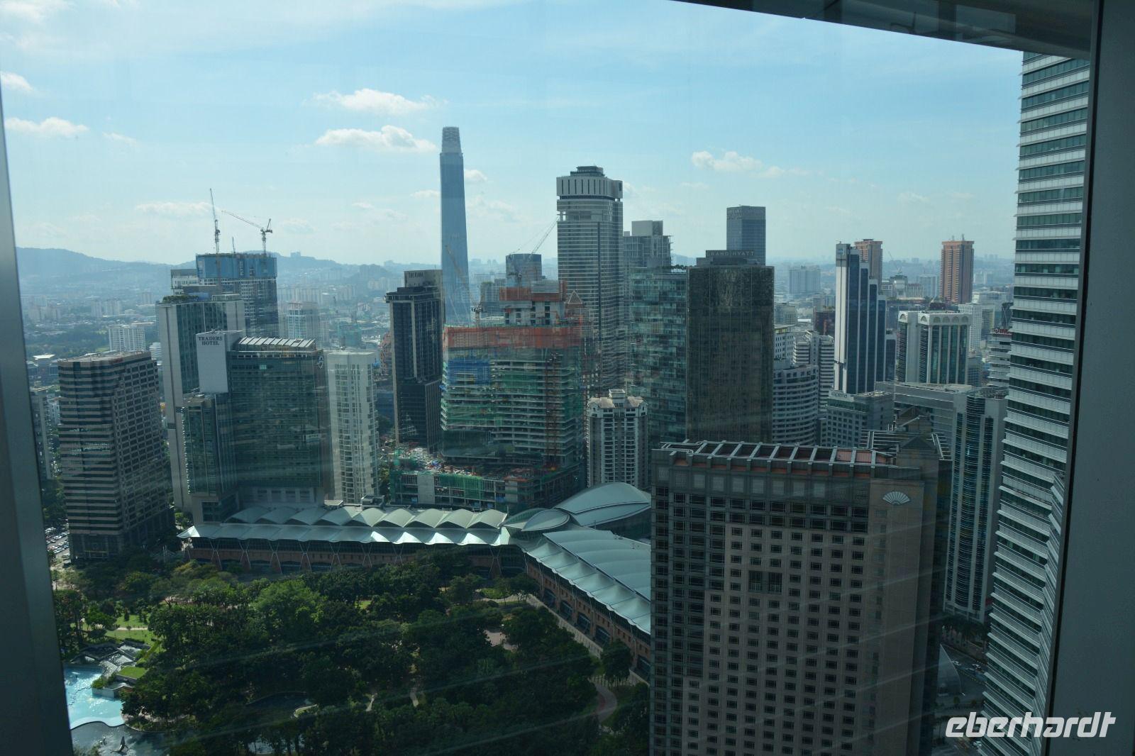 Wenig später stiegen wir am Unabhängigkeitsplatz aus. Hier befindet sich auch das und die im maurischen Stil erbaute älteste Moschee der Stadt, die Jamek Moschee. Danach spazierten wir weiter zur Flussmündung. Ein ganz besonderes Erlebnis war als nächstes vorgesehen: der Besuch der Petronas Towers. Mit dem Aufzug ging es zunächst in die 41.Etage hinauf. Hier liefen wir über die Skybridge, welche die beiden Türme der höchsten Zwillingstürme der Welt miteinander verbindet.