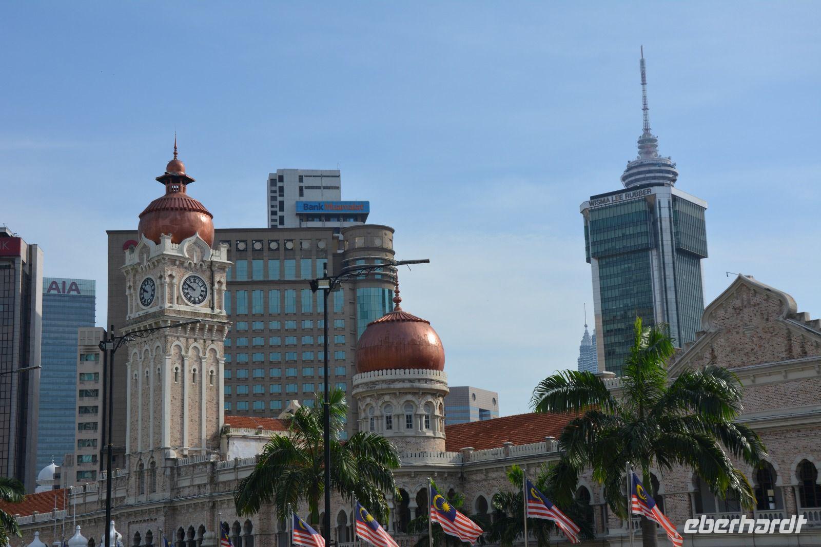 Der heutige Tag war ganz der Stadterkundung von Kuala Lumpur gewidmet. Nach dem leckeren Frühstück unternahmen wir eine Stadtrundfahrt. Erster Stopp war am Königspalast Katana Negara.