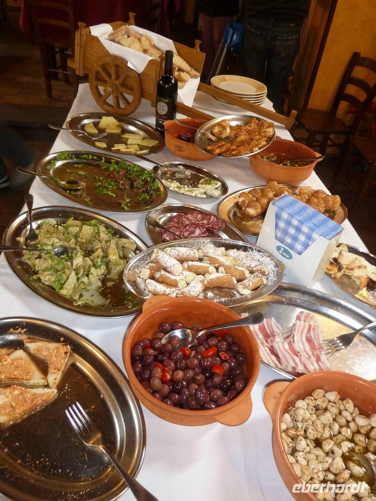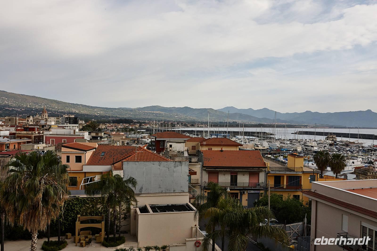 Heute ging die große Wanderreise nach Sizilien los. Mit 13 von 18 Reisegästen traf ich mich am Flughafen Berlin Tegel um von dort aus pünktlich um 15.20 Uhr mit Air Berlin in Richtung Süden zu starten. Der Flug verlief ohne Komplikationen und bereits 2:45 Stunden später landeten wir in Catania, wo wir zügig unsere Koffer bekamen und zum Bus laufen konnten. Wir warteten noch auf zwei Reisegäste, die mit einer anderen Maschine kurz nach uns landeten, auch bei den beiden gab es keine Probleme. Danach wurden wir von unserem Busfahrer zum Hotel „Yachting Palace" nach Marina di Riposto gefahren, wo bereits ein kleines Glas Begrüßungssekt und eine Kleinigkeit zu Essen auf uns wartete. Danach gab es auch gleich ein leckeres Abendessen, zu dem unsere letzten vier Reisegäste zustießen.