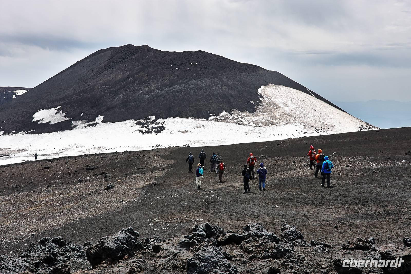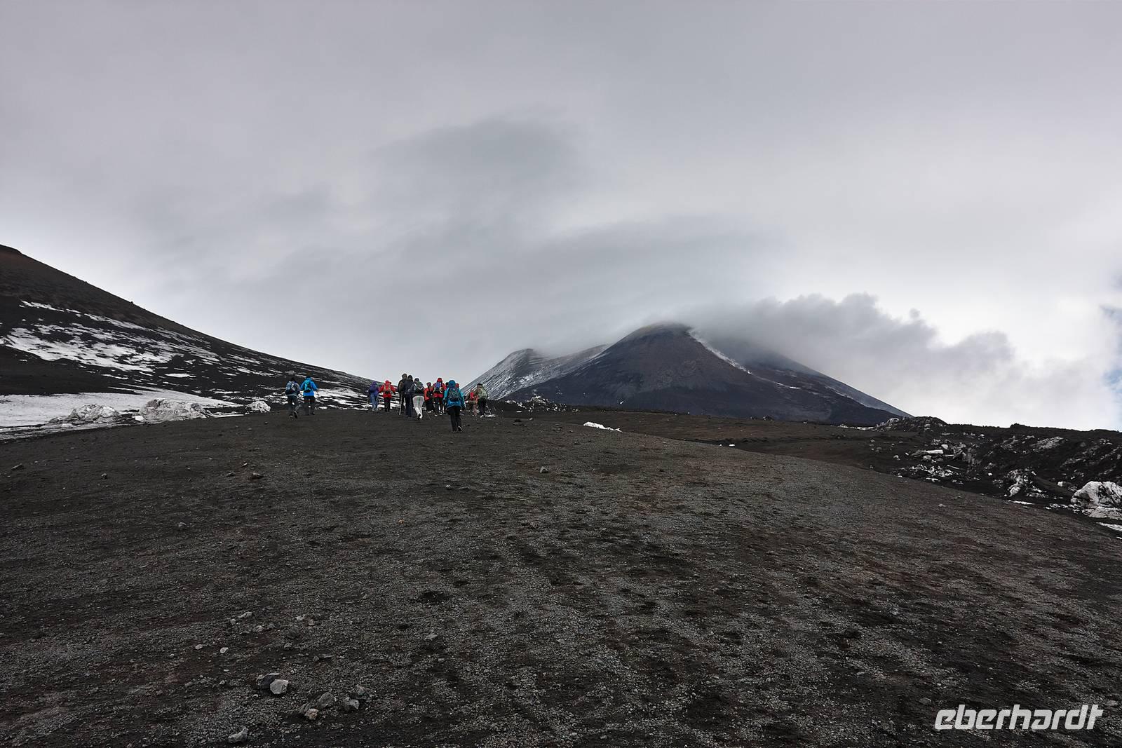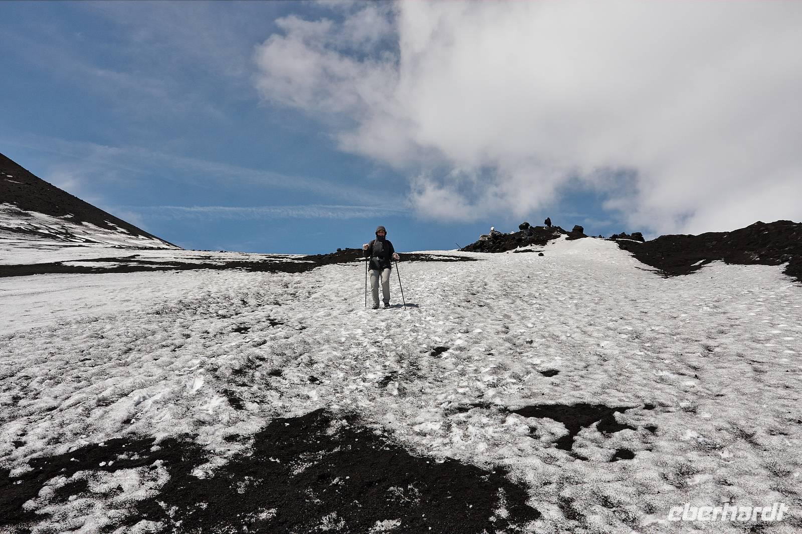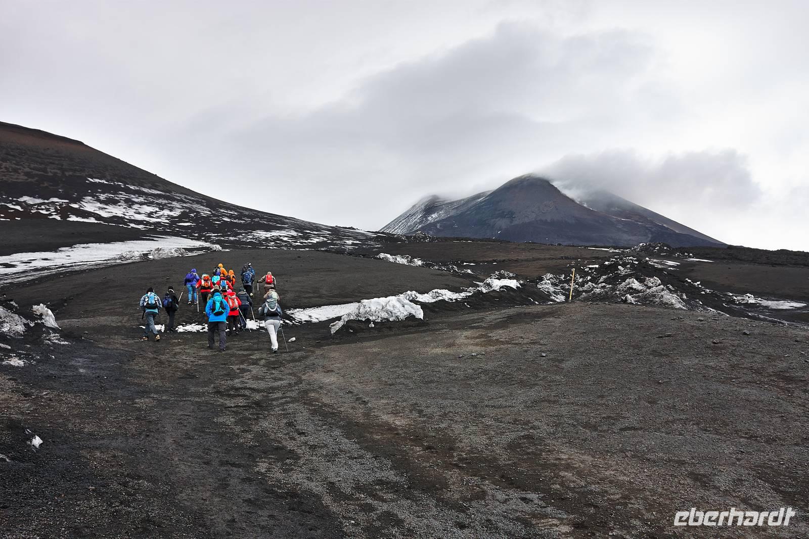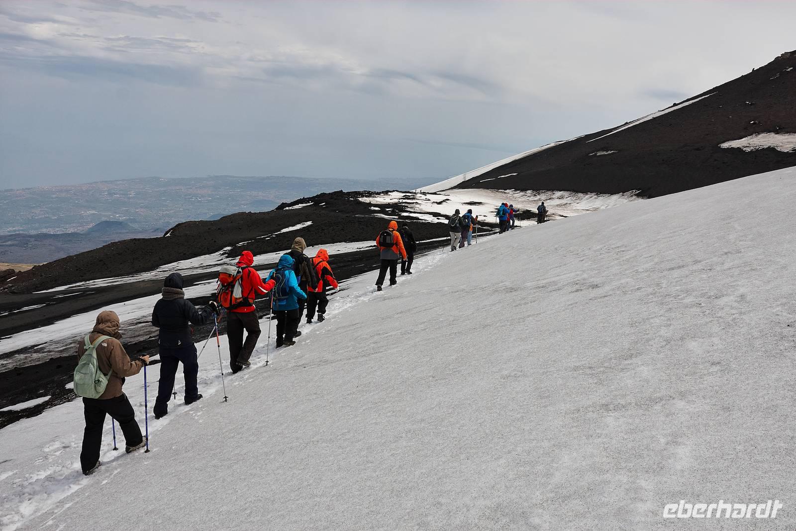 Ab 7.30 Uhr stand heute für uns das Frühstück in unserem separaten Frühstücksraum zur Verfügung. Die gesamte Wandergruppe und unser Wanderführer Jochen stärkten sich an dem leckeren Buffet und freuten sich auf einen spannenden Tag. 9.00 Uhr fuhren wir mit dem Bus zur Talstation des Ätna, wo es leider zu windig war, um mit der Drahtseilbahn nach oben zu fahren. Dafür standen Allradjeeps bereit, die uns auf ca. 2.500 m Höhe brachten. Danach ging es mit unserem Wanderführer Jochen und dem Vulkanologen Guiseppe zu Fuß weiter auf den Krater, der bei der Eruption 2002 entstanden ist und damit auf knapp 3.000 Höhenmeter. Von dort oben aus hatten wir eine wunderschöne Aussicht über die sizilianische Insel. Der Wind blies uns heftig um die Ohren, dafür schien aber die Sonne dazu. Unser Abstieg führte uns vorbei am Belvedere, wo wir einen schönen Ausblick über das Tal der Ochsen hatten. Weiter ging es vorbei am Cisternazza und dem M.te Escrivà über steile Abhänge und bester Aussicht zurück zur Talstation. Anschließend fuhren wir über die Serpentinenstraße zurück zum Hotel, wo wir noch etwas Freizeit genießen konnten. Danach gab es wieder ein leckeres Abendessen-Menü mit Fisch.