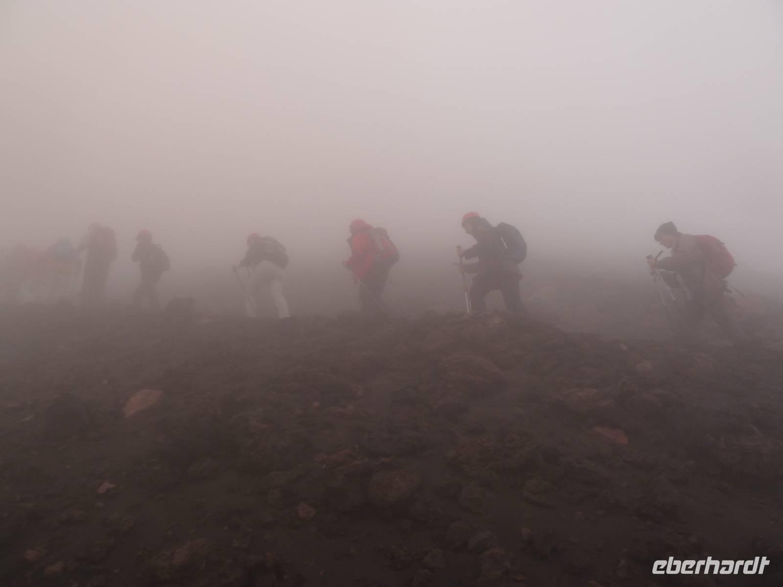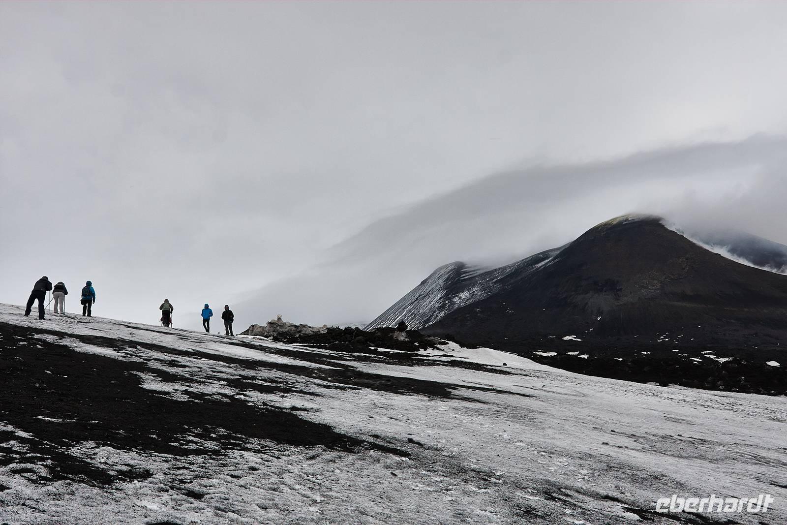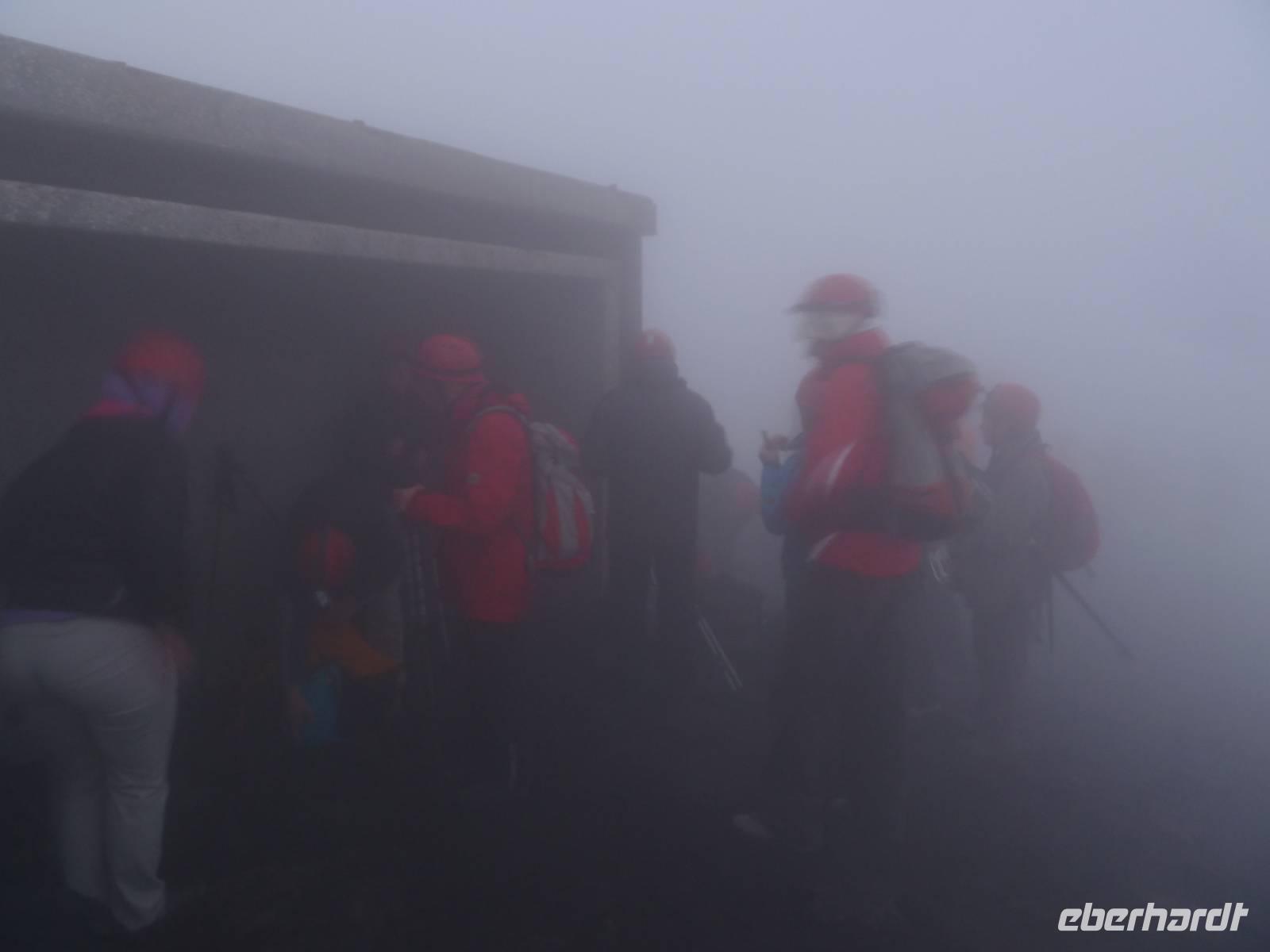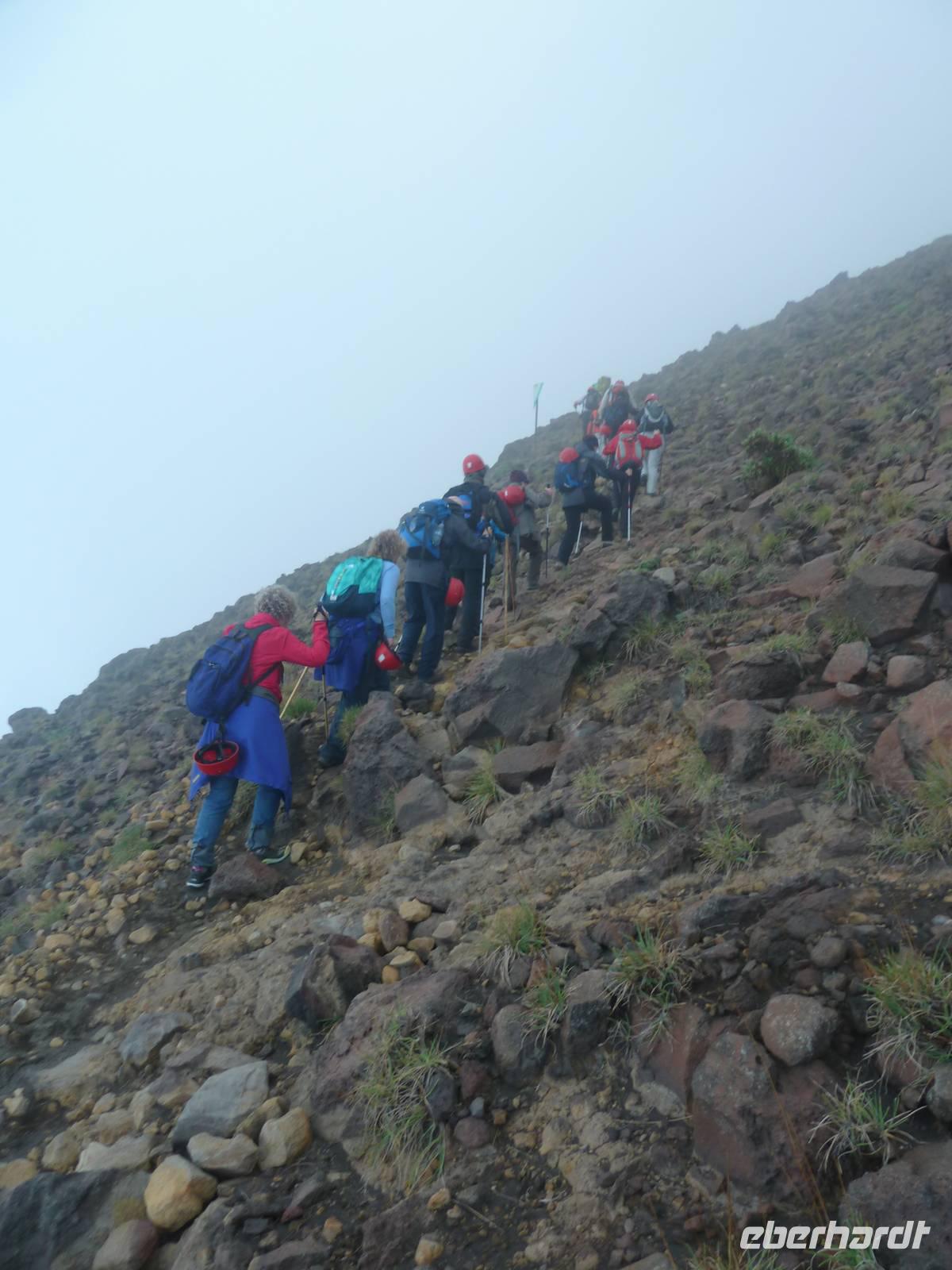 Nach der ersten spannenden Nachtwanderung über Stromboli konnten wir wieder ausschlafen und in aller Ruhe Frühstücken und die Insel genießen. Nach einem gemeinsamen Mittagessen im Hotel wurden die letzten Kräfte gestärkt. Einige wanderten die Strecke des gestrigen Abends ab, andere spazierten über die Insel oder genossen die Sonne und ein Bad im Meer. Gegen 17.00 Uhr ging unsere Wanderung auf 900 Höhenmeter mit unserem Bergführer Angelo los. Am Büro der Bergführer wurden wir mit Helmen ausgerüstet, um uns vor kleinen Steinbrocken zu schützen. Mit sehr viel Ruhe und schönem gleichmäßig langsamen Schritt brachte er uns sicher auf den Gipfelkrater des Strombolis. Zunächst war das Wetter gut und die Sicht einwandfrei. Aber je näher wir zur Wolkengrenze kamen, umso schlechter wurde die Sicht. Wir sehnten alle den Aufbruch der Wolkendecke entgegen und erhofften uns eine super Sicht in den Krater und auf spektakuläre Fotos von dem spukenden Vulkan. Doch leider wurden wir enttäuscht und obwohl wir direkt am Krater standen, hörten wir nur das Knallen der Explosionen uns sahen leider nichts. Die Wolkendecke wurde immer schlimmer und es war sicherer, den Abstieg ins Tal zu beginnen. Unser Wanderführer war großartig und brachte uns schnell und sicher aus der Wolkendecke durchs Lavafeld wieder ins Tal. Die Lichter von Stromboli-Stadt kamen immer näher und belohnten unsere Anstrengungen des Aufstieges. Aus jeder Sicht war es eine sehr spektakuläre und einzigartige Wanderung durch die Kraft der Wolken. Drei Wanderfreunde der Gruppe hatten leider nicht die Kraft, die 900 Höhenmeter zu überwinden und sind mit Jochen einen anderen Wanderweg auf 400 Höhenmeter, zur Pizzeria und anschließend zurück zum Hotel gewandert. Für diese drei war es ebenfalls sehr interessant, da Jochen sehr viel über die Insel und den Vulkan erzählte. Zum Ausklang des Tages trafen sich einige der Wandergruppe in der Hotelbar und ließ die Wanderung noch einmal Revue passieren.