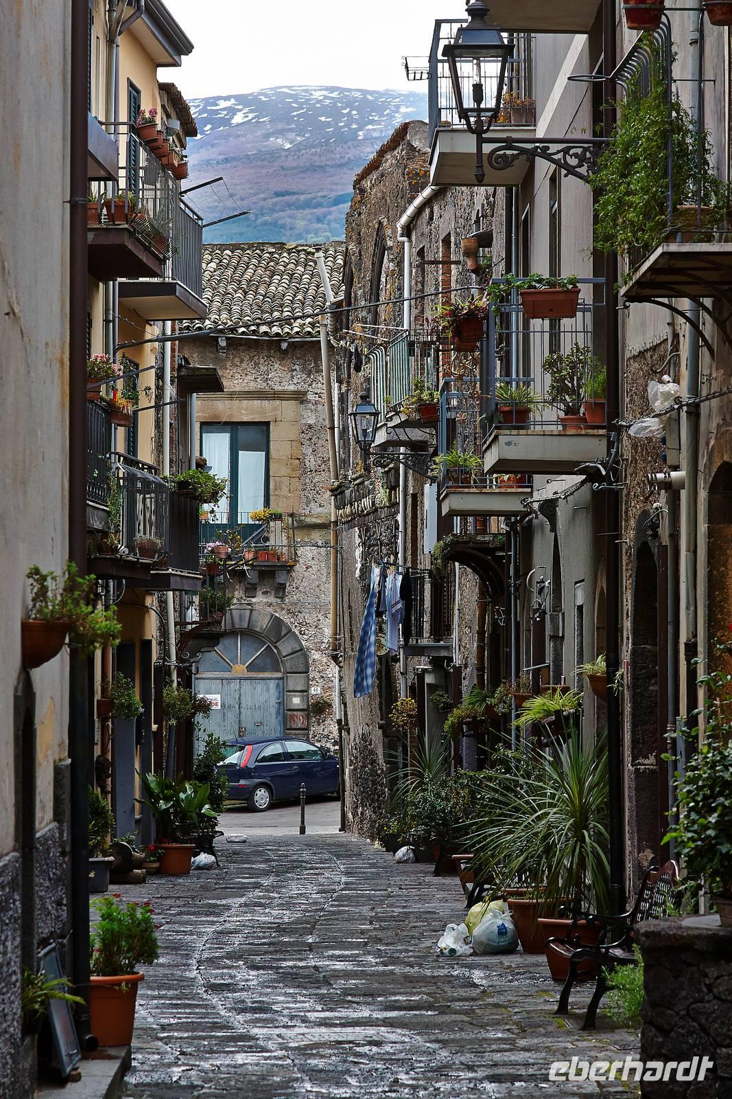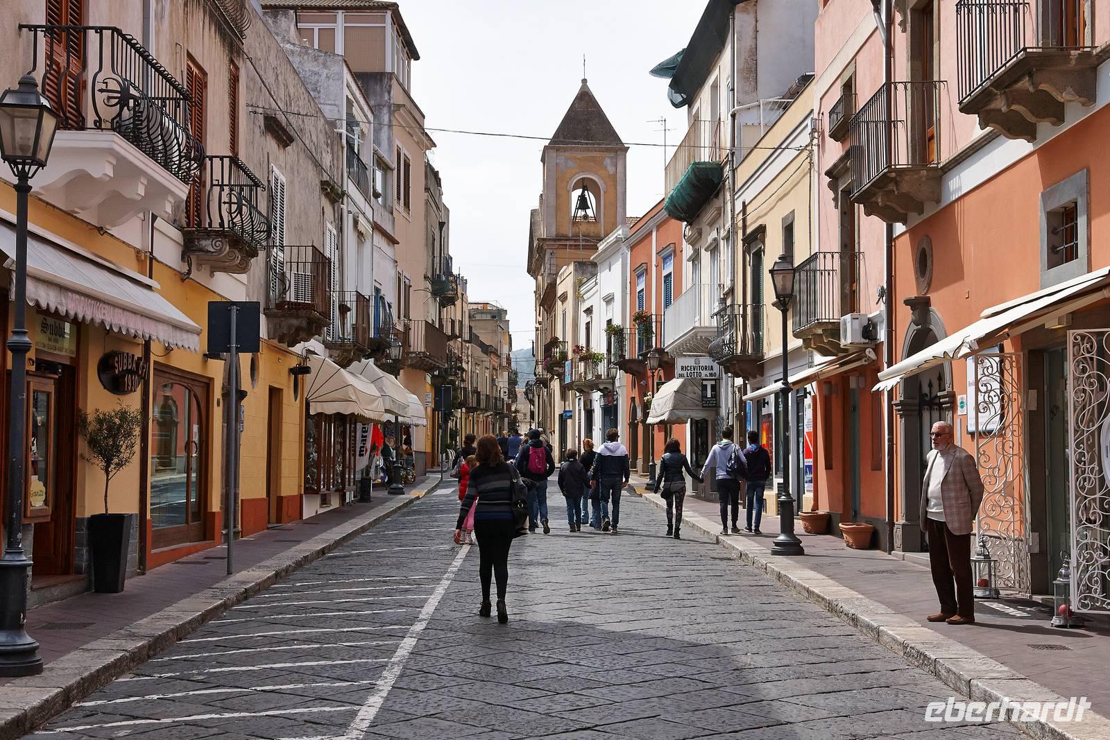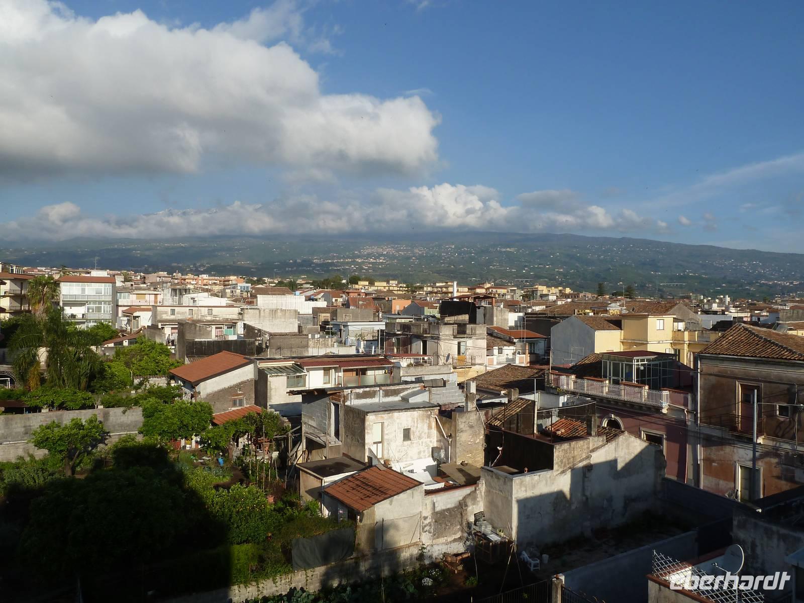 An unserem letzten Tag in Italien mussten wir wieder zeitiger Aufstehen, da wir noch viel sehen wollten. Da unser Flug erst am Abend zurück nach Deutschland ging, nutzten wir die Zeit, um die andere Seite des Ätna kennenzulernen. Wir fuhren mit der Schmalspurbahn auf ca. 800 Höhenmeter nach Randazzo und genossen während der Fahrt wieder die super Aussicht auf Küste und den sich hinter Wolken versteckenden Ätna. Jochen führte uns durch die kleine Stadt vorbei an wunderschönen Gassen und großen Kirchen aus dem Mittelalter zu einem kleinen Café, in dem wir lecker und preisgünstig uns stärken konnten. Während des Rundganges begleitete uns ein frei herumlaufender Hund, der sich freute, dass ihn jemand streichelte. Auf dem Weg zum Hotel, wo unsere Koffer auf uns warteten, hielten wir noch an einem Weingut. Der Besitzer führte uns kurz durch seinen kleinen Weinberg und tischte uns viele kleine leckere sizilianische Speisen auf. Nachdem wir im Hotel in Riposto unsere Koffer geholt hatten, führte uns unser Weg nach Catania zu einem letzten Halt bevor wir zum Flughafen gebracht wurden. Jochen zeigte uns noch die schönsten Seiten der Hauptstadt mit seinen vielen verschiedenen Kirchen. Da es leider sehr heftig anfing zu regnen, konnten wir uns nur noch in Läden flüchten. Die große Hauptkirche öffnete noch seine Pforten, sodass wir noch einen kurzen Blick erhaschen konnten. Im Bus verabschiedeten wir uns von unserem Wanderführer, der uns eine Woche lang über die Vulkane begleitete, uns die schönsten Ecken Siziliens und der Liparischen Inseln zeigte und uns viel Wissenswertes über die Natur und die Macht der Vulkane erzählte.