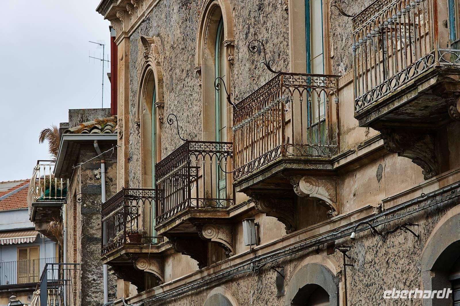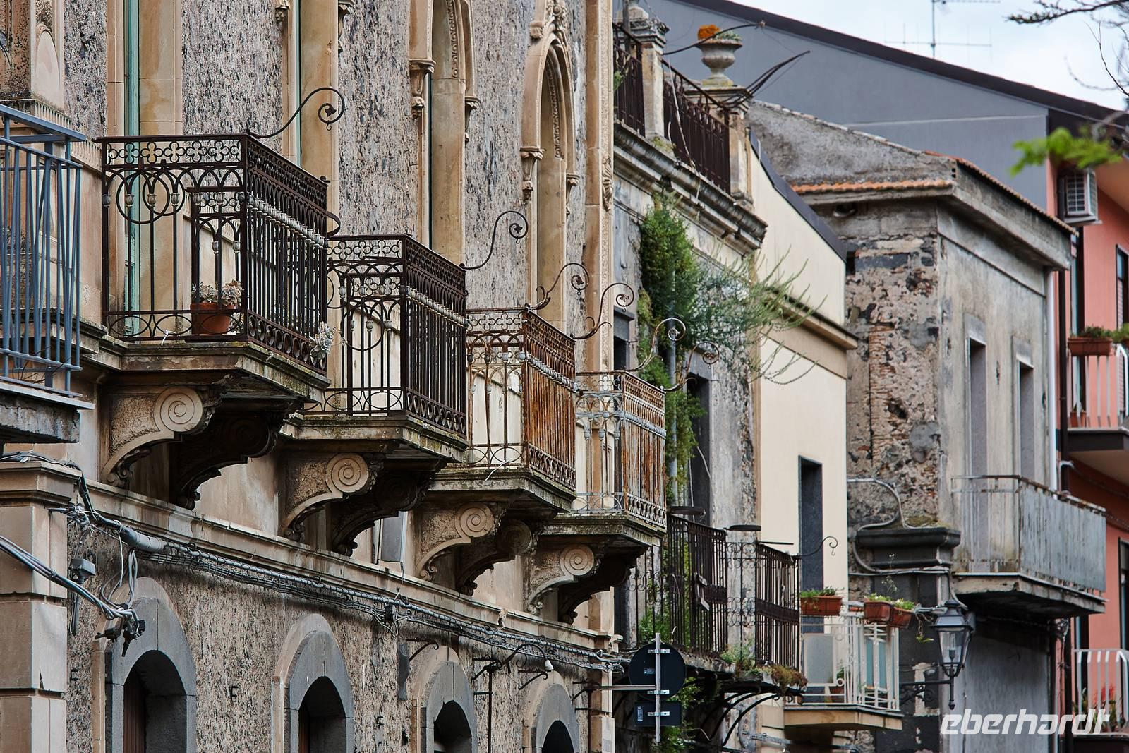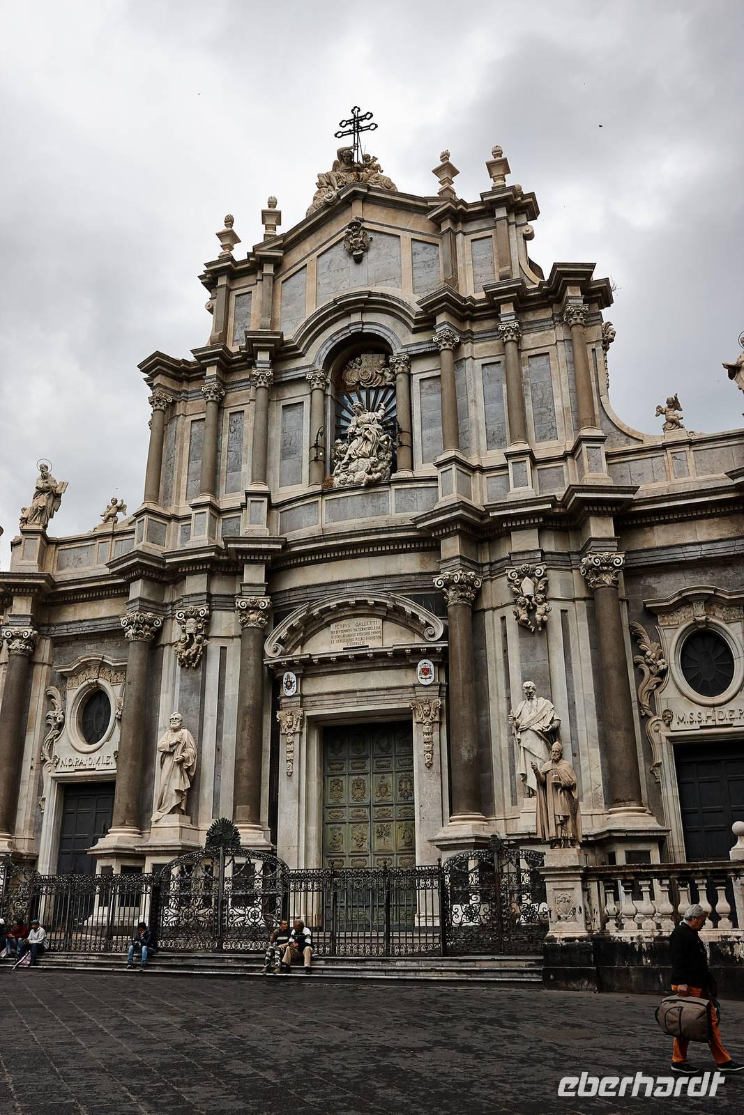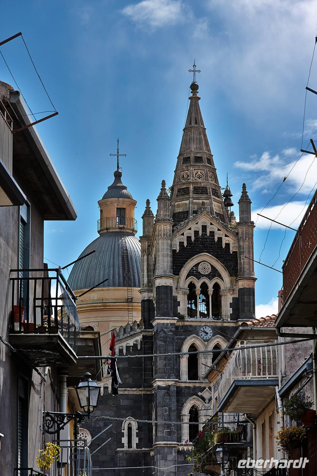 An unserem letzten Tag in Italien mussten wir wieder zeitiger Aufstehen, da wir noch viel sehen wollten. Da unser Flug erst am Abend zurück nach Deutschland ging, nutzten wir die Zeit, um die andere Seite des Ätna kennenzulernen. Wir fuhren mit der Schmalspurbahn auf ca. 800 Höhenmeter nach Randazzo und genossen während der Fahrt wieder die super Aussicht auf Küste und den sich hinter Wolken versteckenden Ätna. Jochen führte uns durch die kleine Stadt vorbei an wunderschönen Gassen und großen Kirchen aus dem Mittelalter zu einem kleinen Café, in dem wir lecker und preisgünstig uns stärken konnten. Während des Rundganges begleitete uns ein frei herumlaufender Hund, der sich freute, dass ihn jemand streichelte. Auf dem Weg zum Hotel, wo unsere Koffer auf uns warteten, hielten wir noch an einem Weingut. Der Besitzer führte uns kurz durch seinen kleinen Weinberg und tischte uns viele kleine leckere sizilianische Speisen auf. Nachdem wir im Hotel in Riposto unsere Koffer geholt hatten, führte uns unser Weg nach Catania zu einem letzten Halt bevor wir zum Flughafen gebracht wurden. Jochen zeigte uns noch die schönsten Seiten der Hauptstadt mit seinen vielen verschiedenen Kirchen. Da es leider sehr heftig anfing zu regnen, konnten wir uns nur noch in Läden flüchten. Die große Hauptkirche öffnete noch seine Pforten, sodass wir noch einen kurzen Blick erhaschen konnten. Im Bus verabschiedeten wir uns von unserem Wanderführer, der uns eine Woche lang über die Vulkane begleitete, uns die schönsten Ecken Siziliens und der Liparischen Inseln zeigte und uns viel Wissenswertes über die Natur und die Macht der Vulkane erzählte.