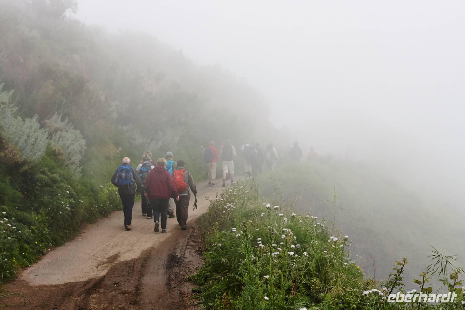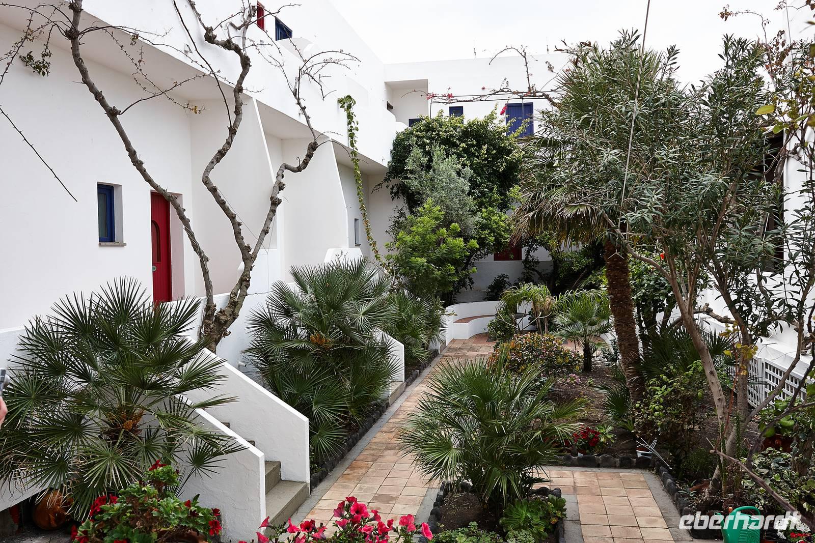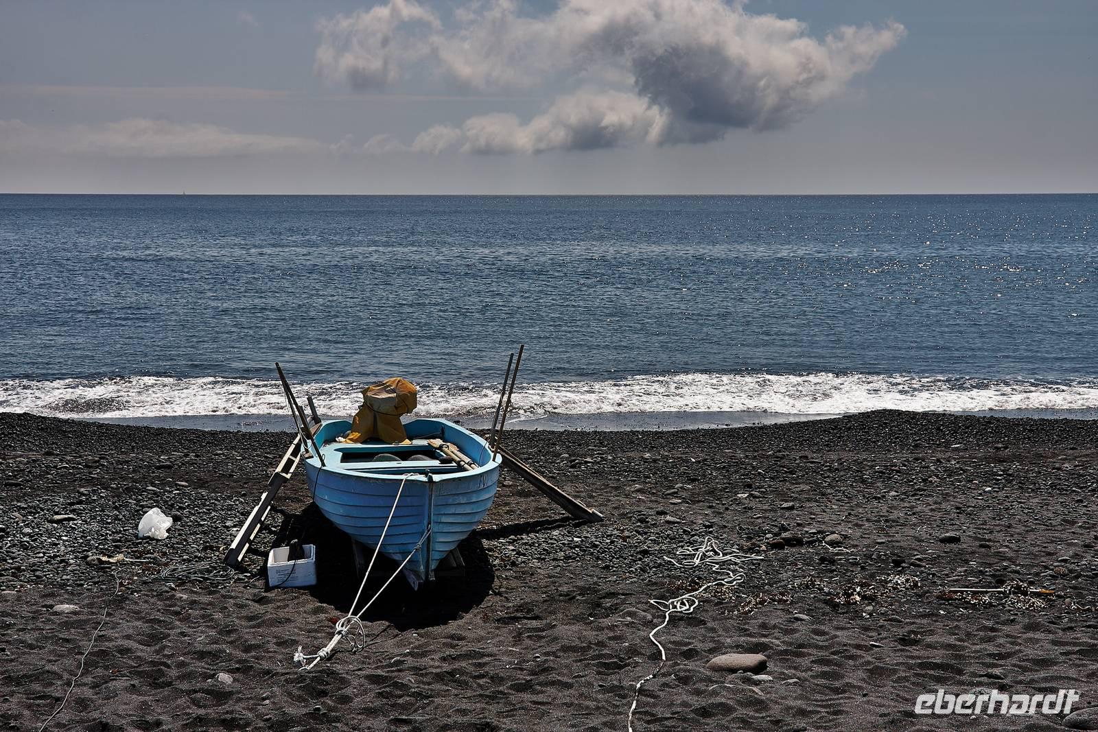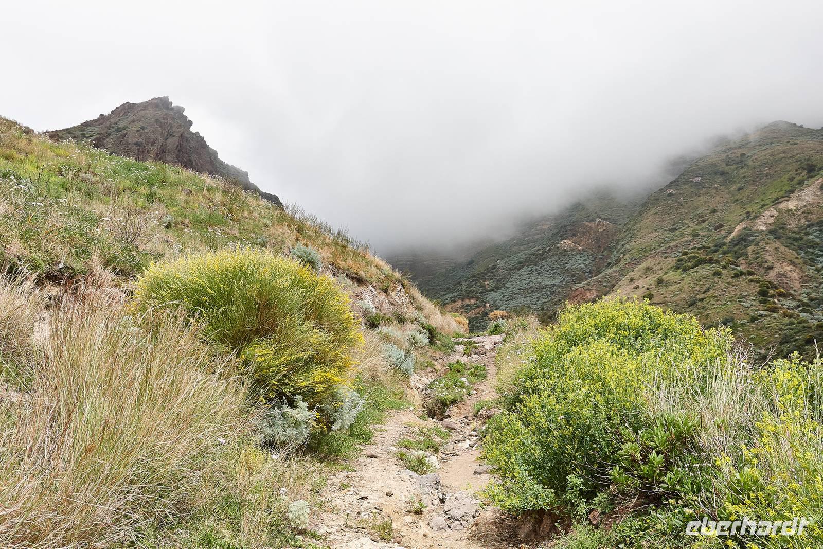Heute konnte die gesamte Wandergruppe ausschlafen, denn unser Boot nach Stromboli legte erst 12.00 Uhr ab. Da andere Gruppen die Überfahrt abgesagt hatten, hatten wir ein kleines Boot für uns allein. Ca. 13.30 Uhr kamen wir auf Stromboli an. Zur Begrüßung gab es für die Reisenden ein kleines Glas Malvasia, über das sich die Gruppe sehr freute. Unsere Koffer wurden mit einem Auto zum Hotel gebracht und wir liefen durch die kleine Stadt und Jochen zeigte uns die Insel und erzählte schon einiges dazu. Nachdem wir im Hotel angekommen waren, hatten wir erst einmal Freizeit, um ins Meer zu gehen oder um noch ein bisschen die kleine Stadt zu erkunden. Da wir heute nicht im Hotel aßen, sondern in einer Pizzeria beim alten Observatorium, wanderten wir gegen 17.00 Uhr los. Bereits 1 Stunde später erreichten wir die Pizzeria auf ca. 100 Höhenmeter. Bevor wir einkehrten, wollten wir auf 400 Höhenmeter, um zu schauen, ob wir den Vulkan in Aktion erleben können. Doch leider hingen die Wolken zu tief und zu dick, sodass wir zwar die Eruptionen hören, aber leider nichts sehen konnten. So stiegen wir wieder hinab und freuten uns auf das leckere Essen in der Pizzeria. Anschließend wanderten jeder für sich oder in kleinen Gruppen durch die dunkle Sternennacht zurück zum Hotel. Ohne Taschenlampen konnte man nichts sehen, aber wir waren alle gut vorbereitet und sind alle gut im Hotel angekommen. Die Wandergruppe genoss die Wanderung durch die Wolkendecke und durch die dunkle Romantik der Insel.